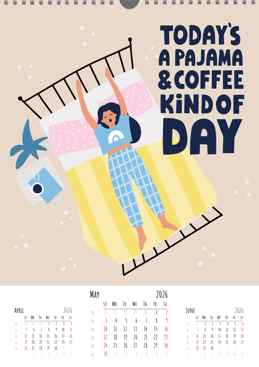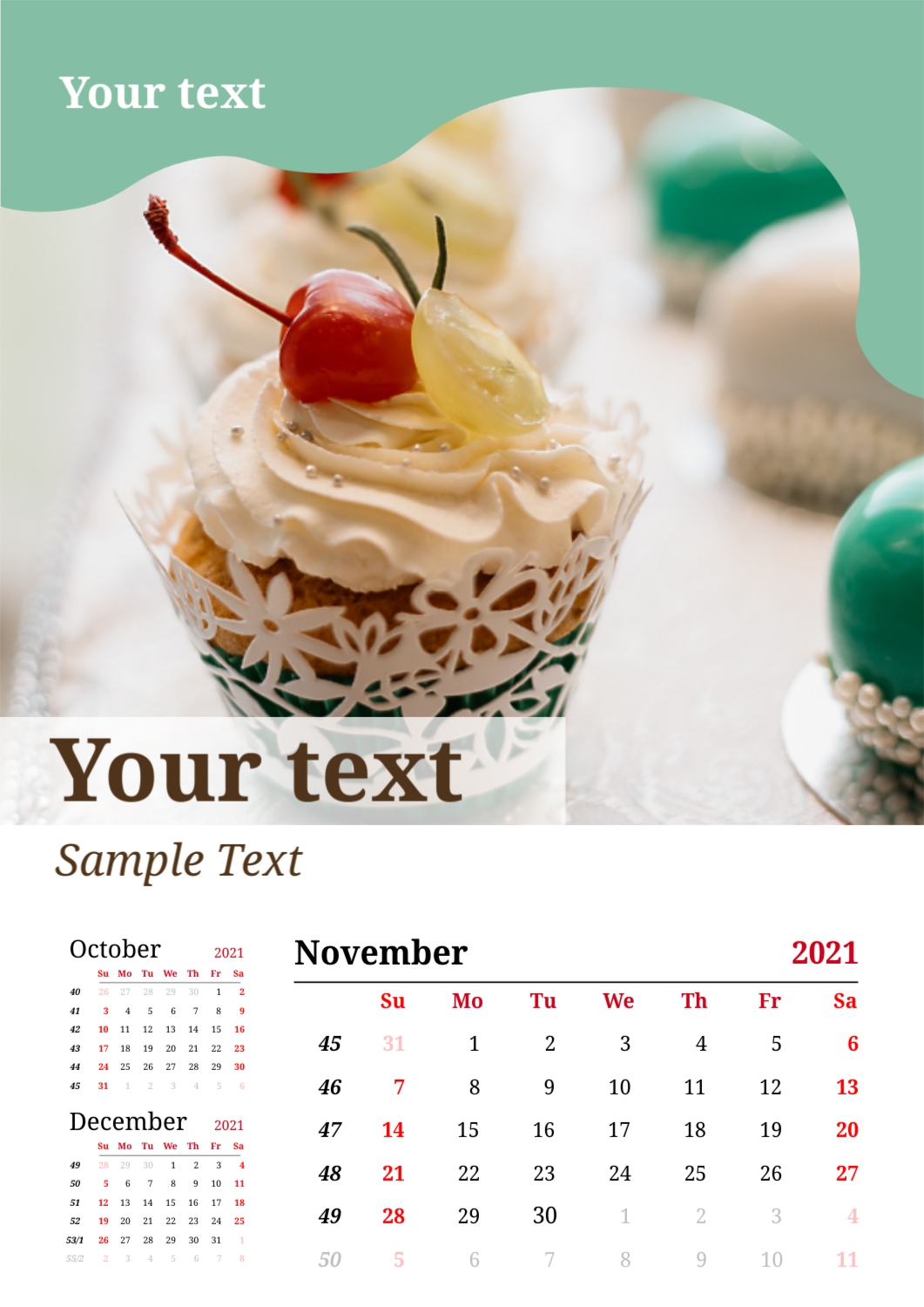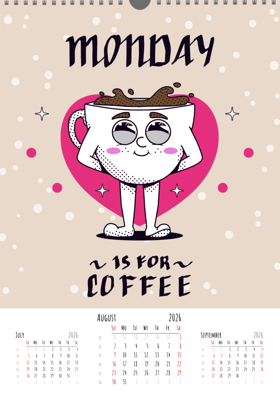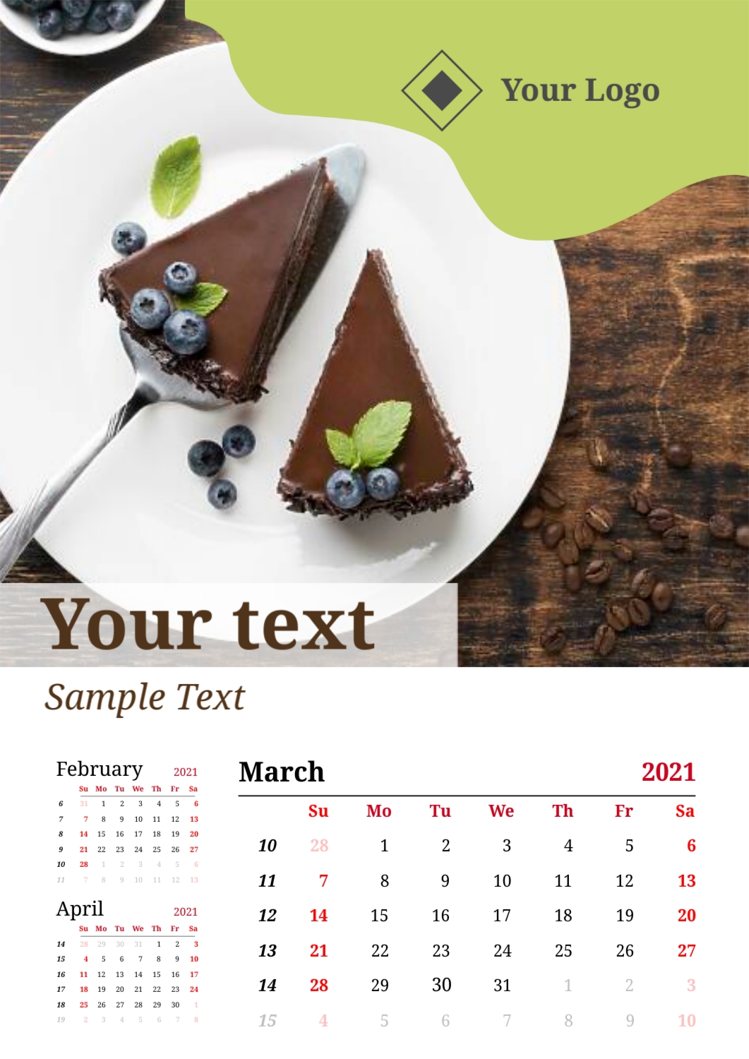 Free wall advertising calendar template to advertise your coffee shop or coffee shop. Create a layout with your own hands in the online calendar designer.