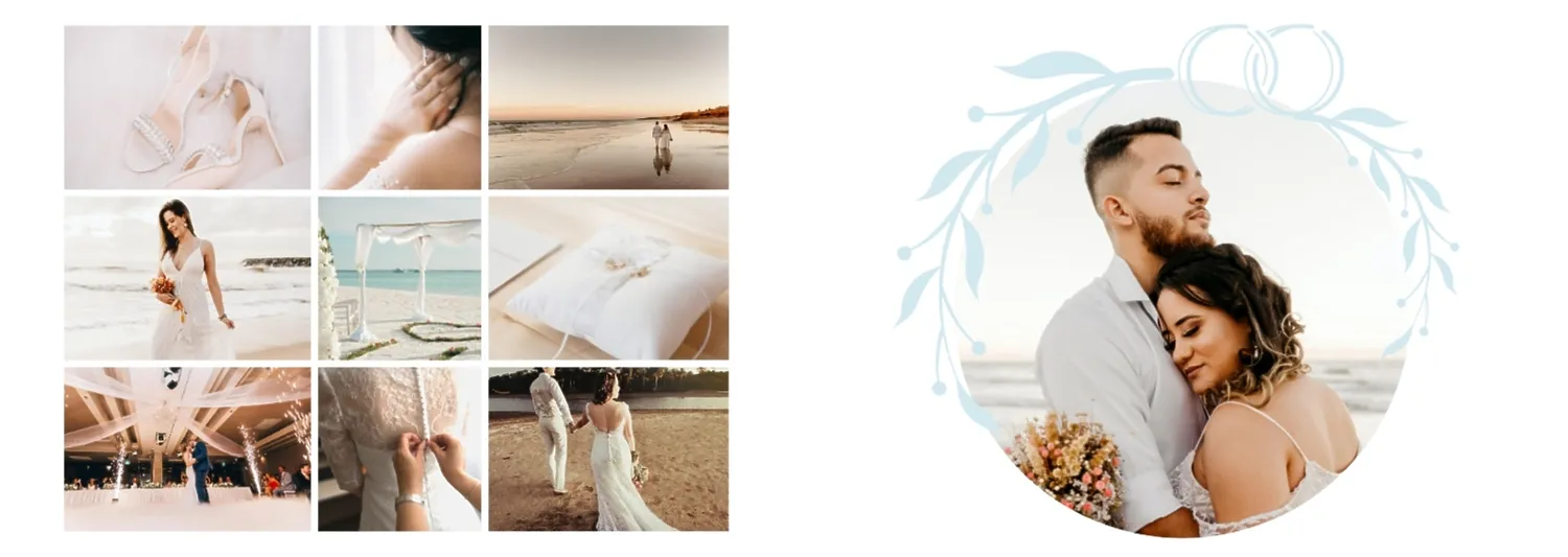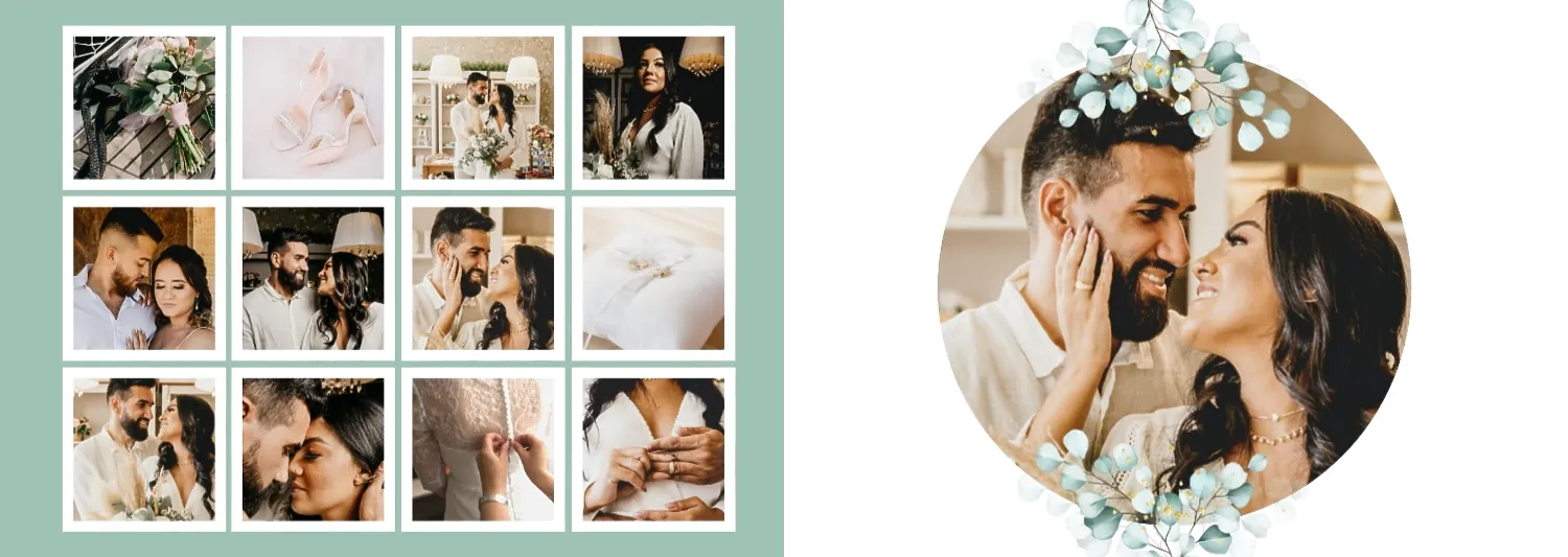 Free giant wedding photo book template. Create a layout with your own hands in the online photo book designer.