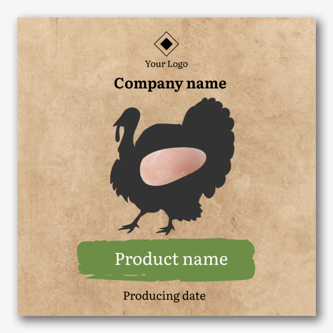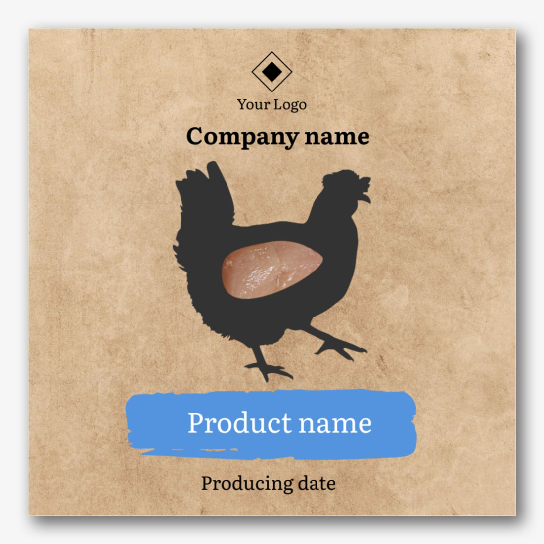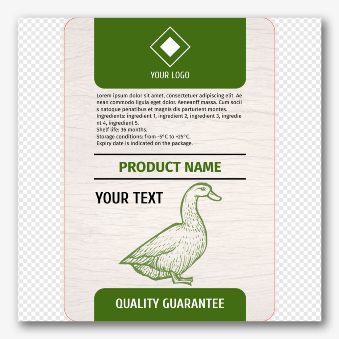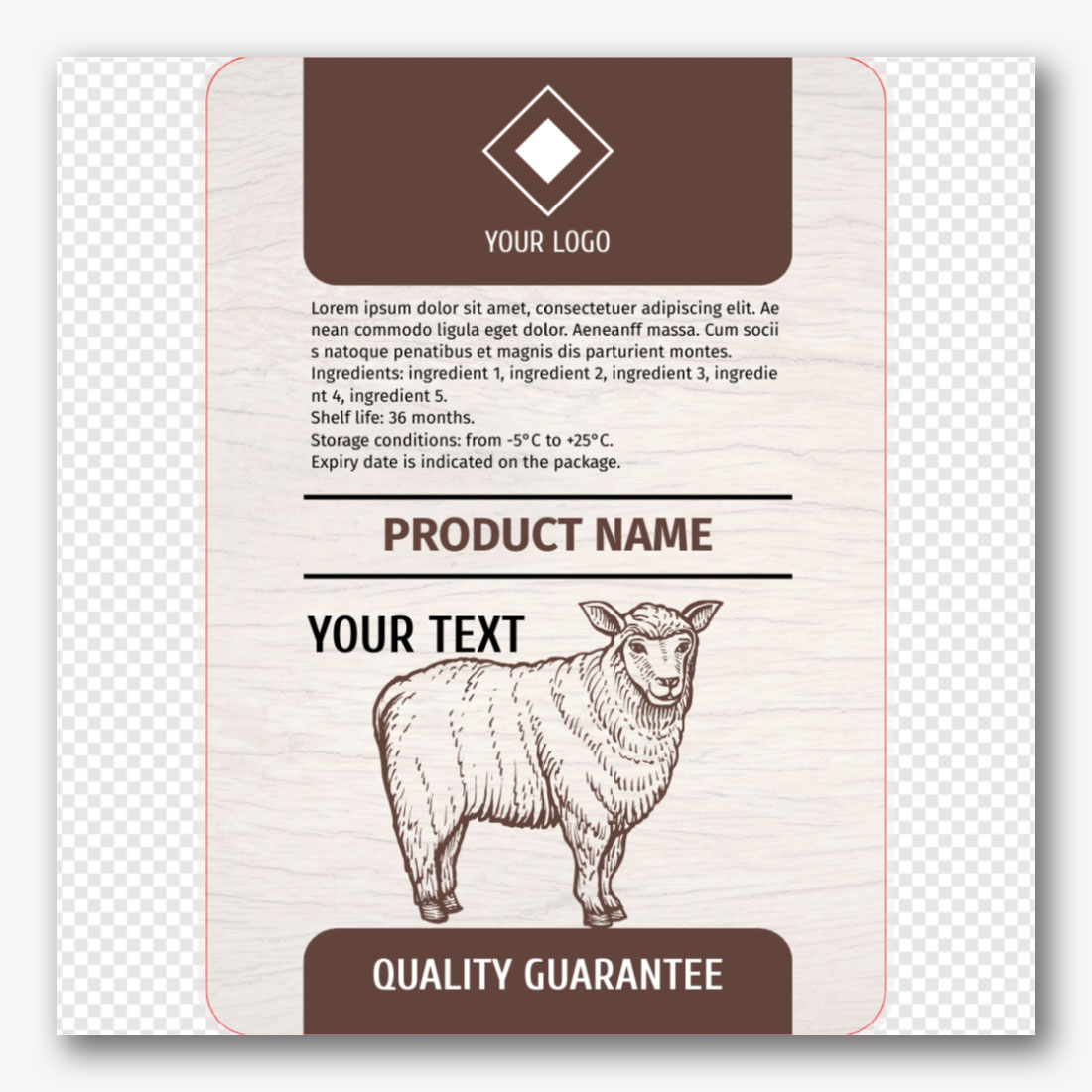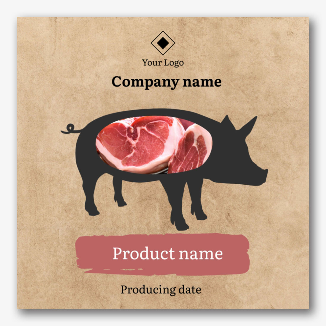 Free online advertising label template for manufacturers and manufacturers of canned meat. Create a layout with your own hands in the online label designer.