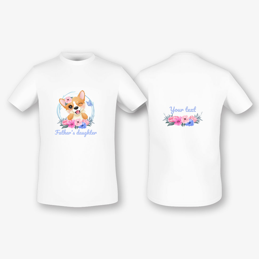 Free template of an original children's T-shirt with a pattern for a daughter. Create a layout with your own hands in the online designer of T-shirts and hoodies.