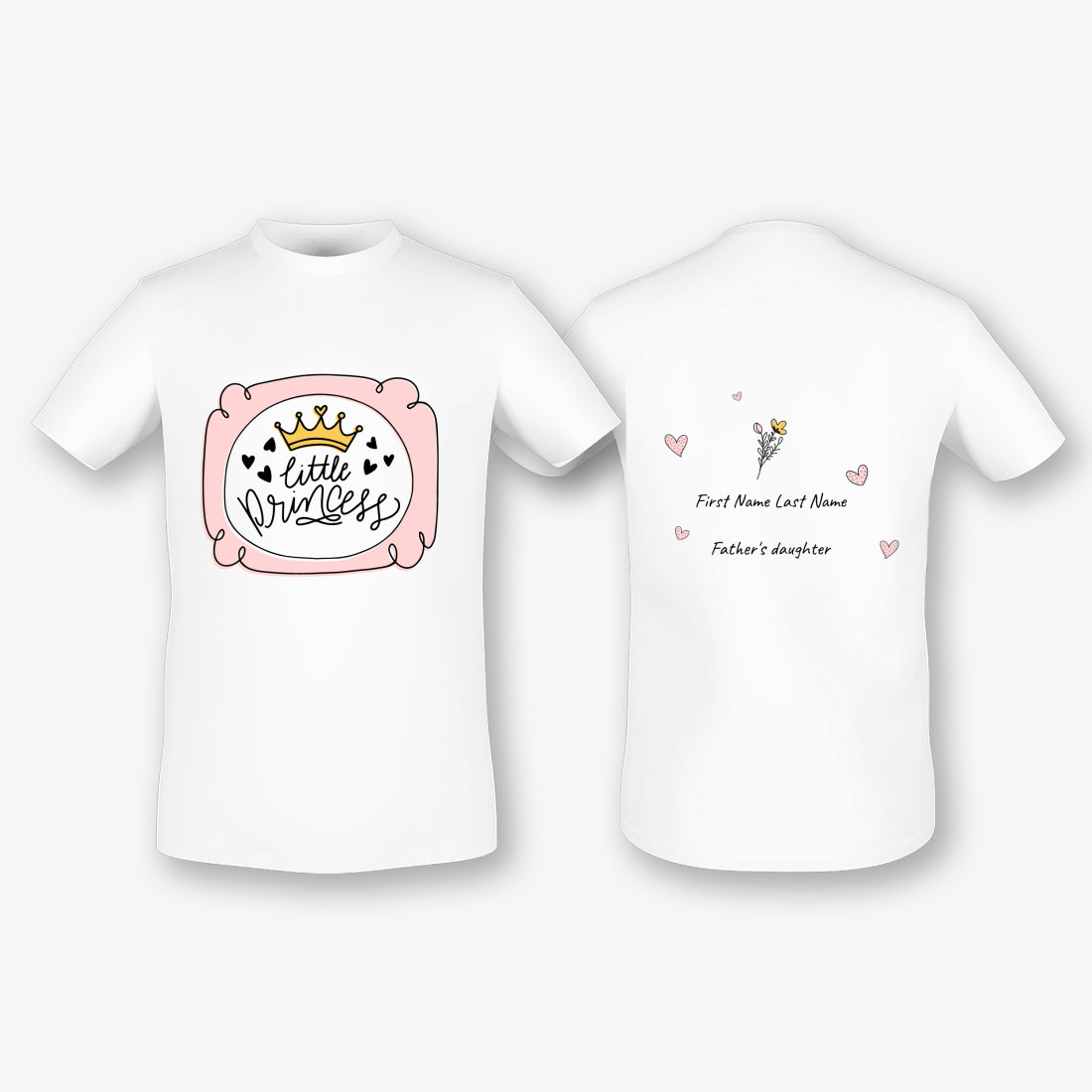 Free template of an original children's T-shirt with a chanterelle for a daughter. Create a layout with your own hands in the online designer of T-shirts and hoodies.