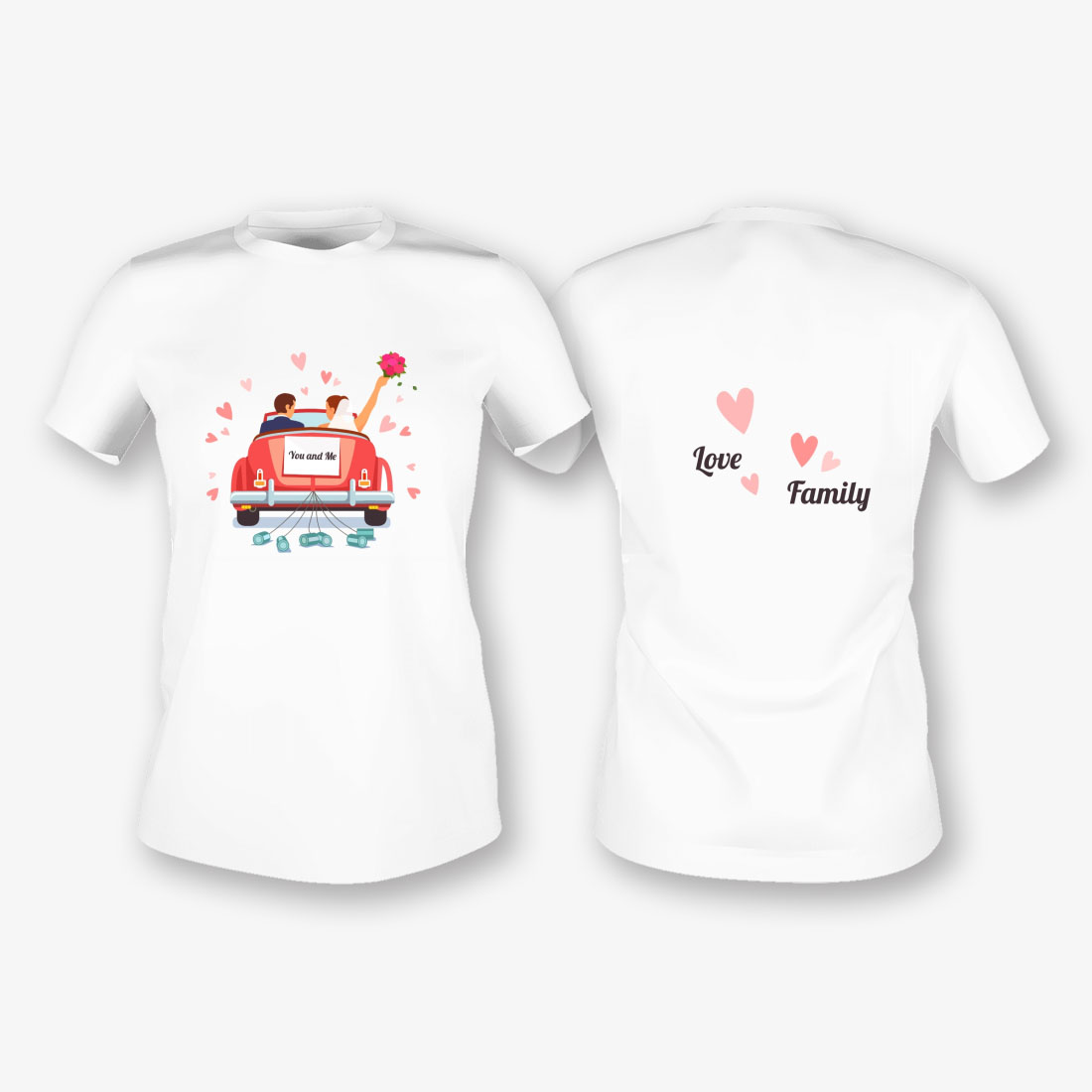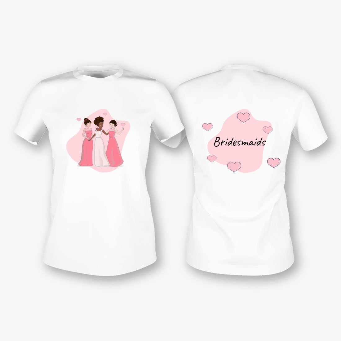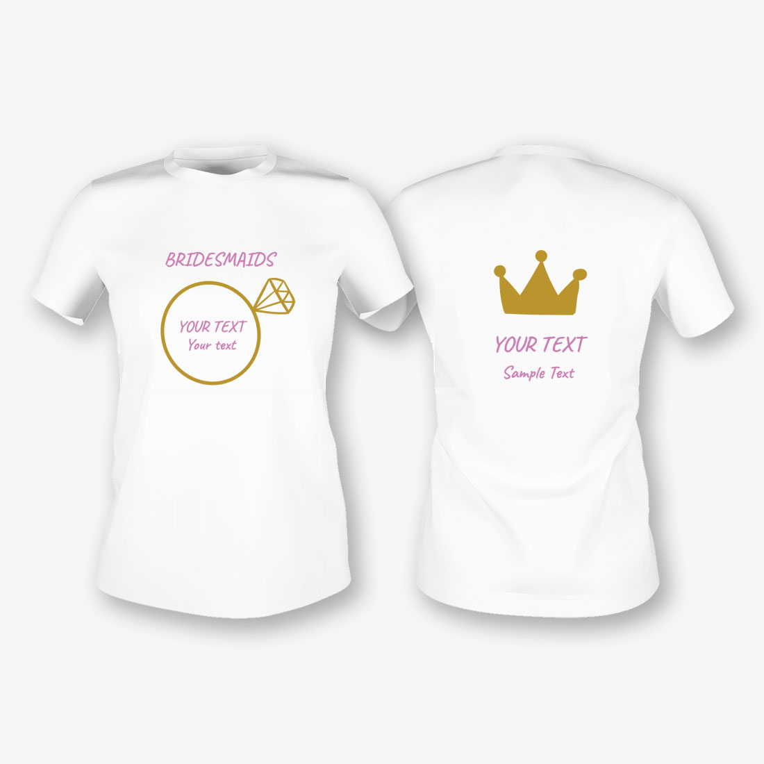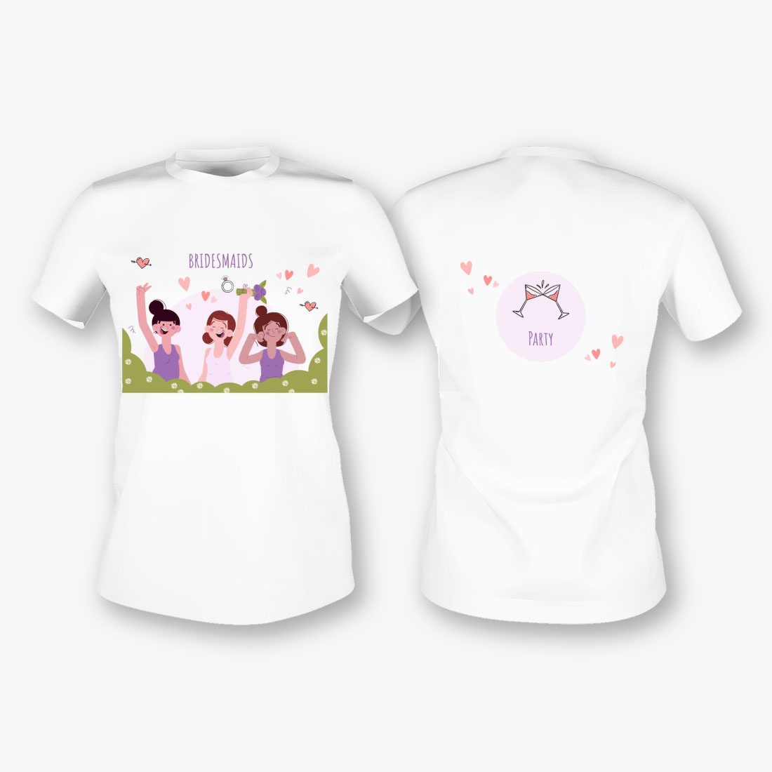 Free women's printed T-shirt template for bridesmaids. Create a layout with your own hands in the online designer of T-shirts and hoodies.