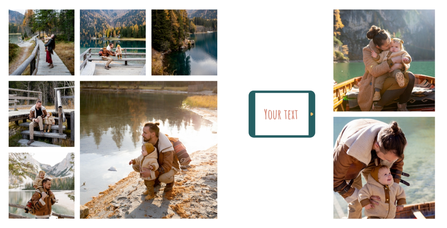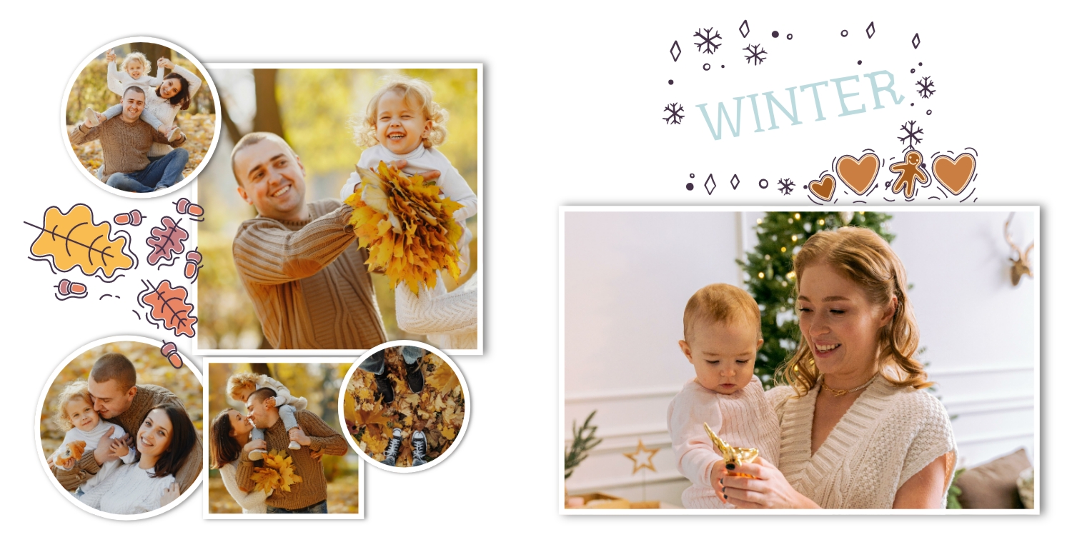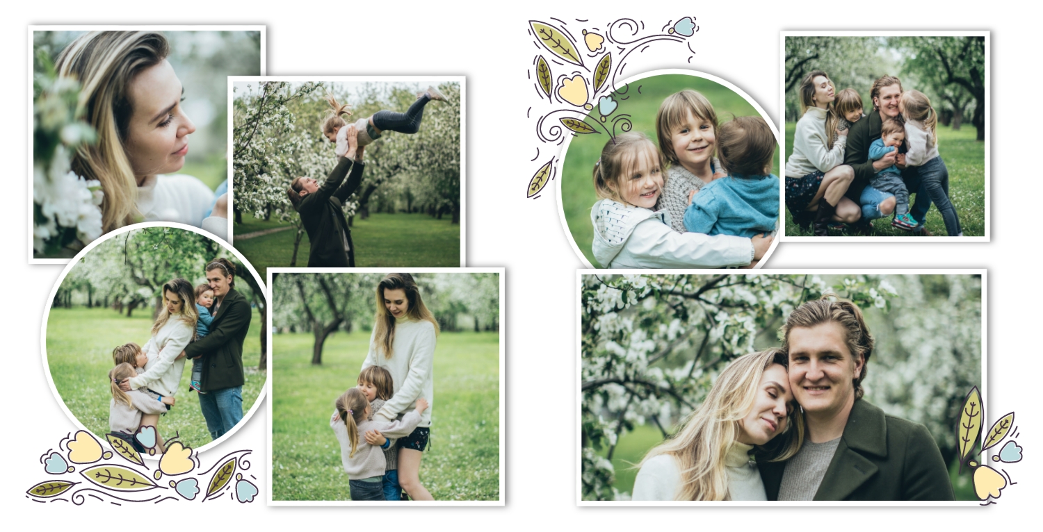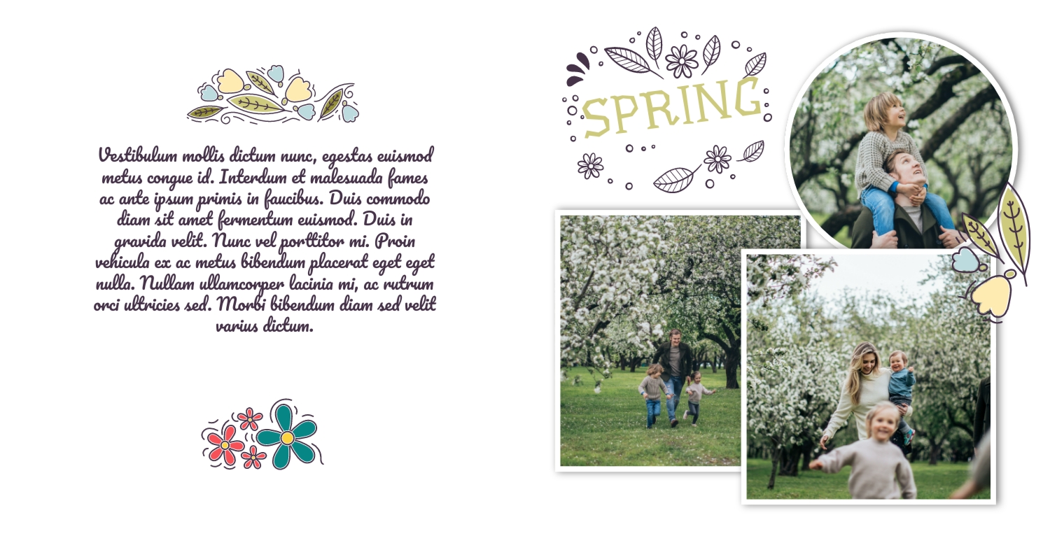Free photo book template for memorable moments of your family. Create a layout with your own hands in the online photo book designer.