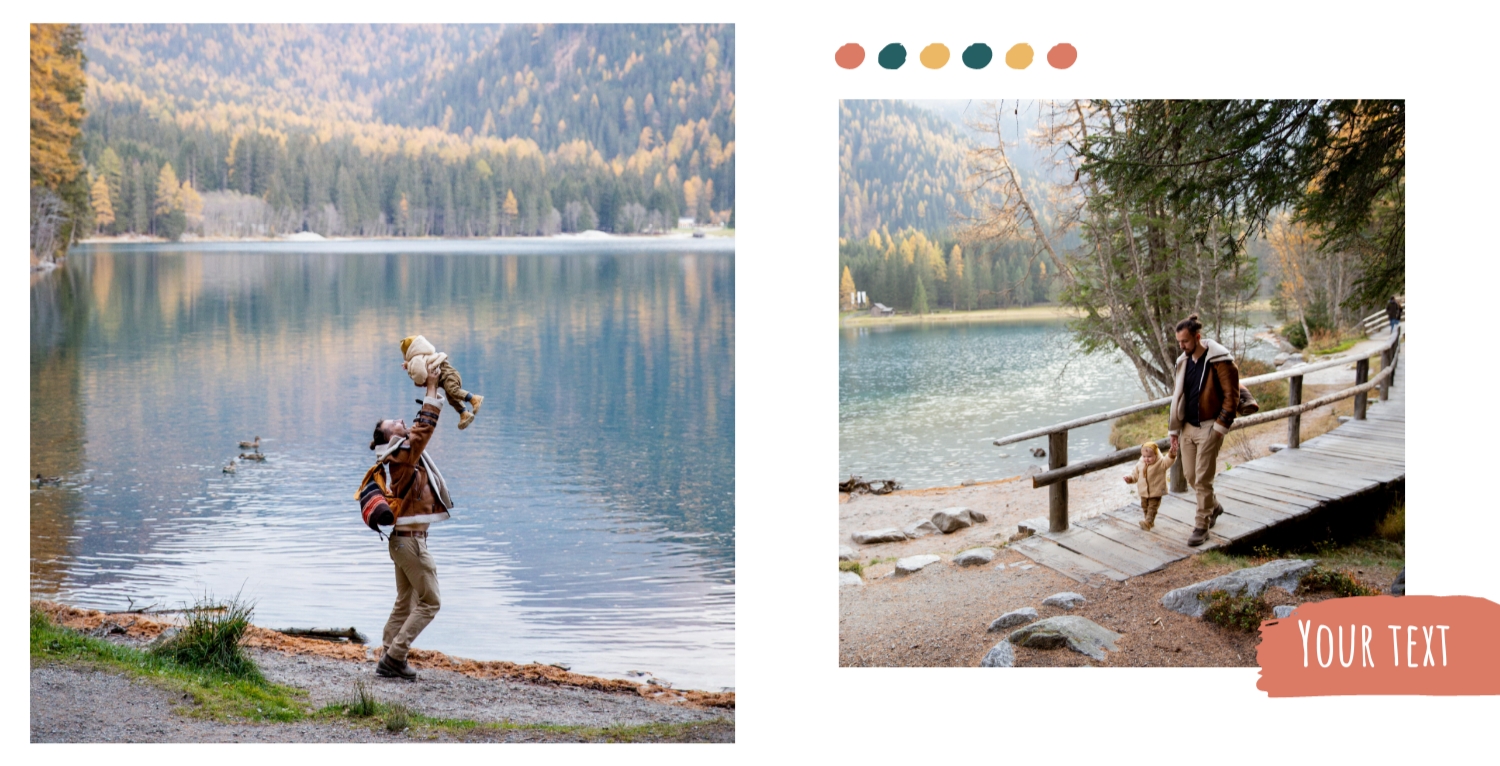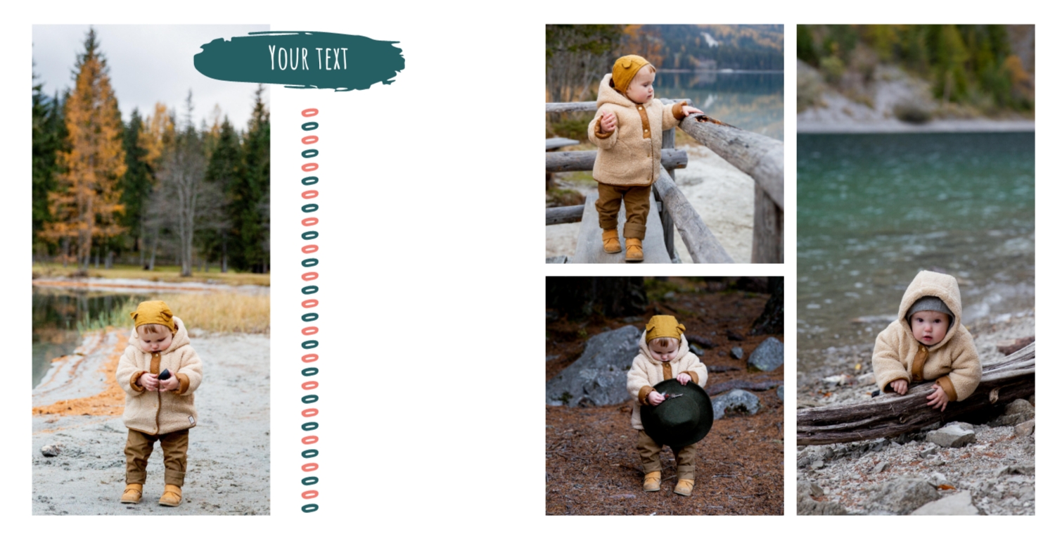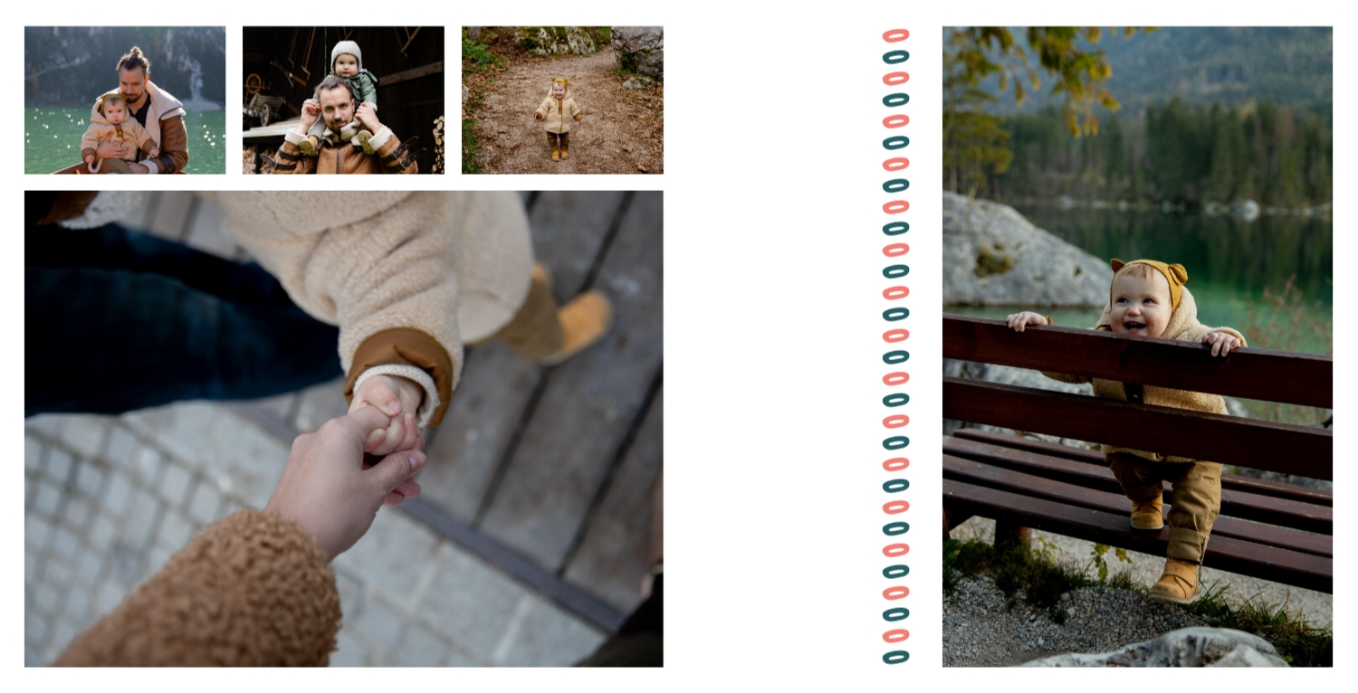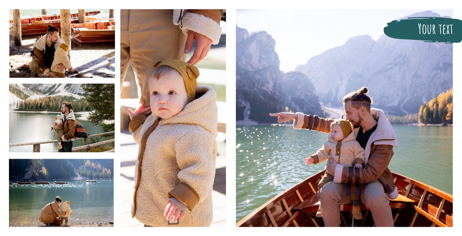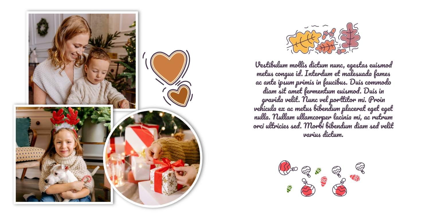 Free photo book template for memorable moments of your family. Create a layout with your own hands in the online photo book designer.