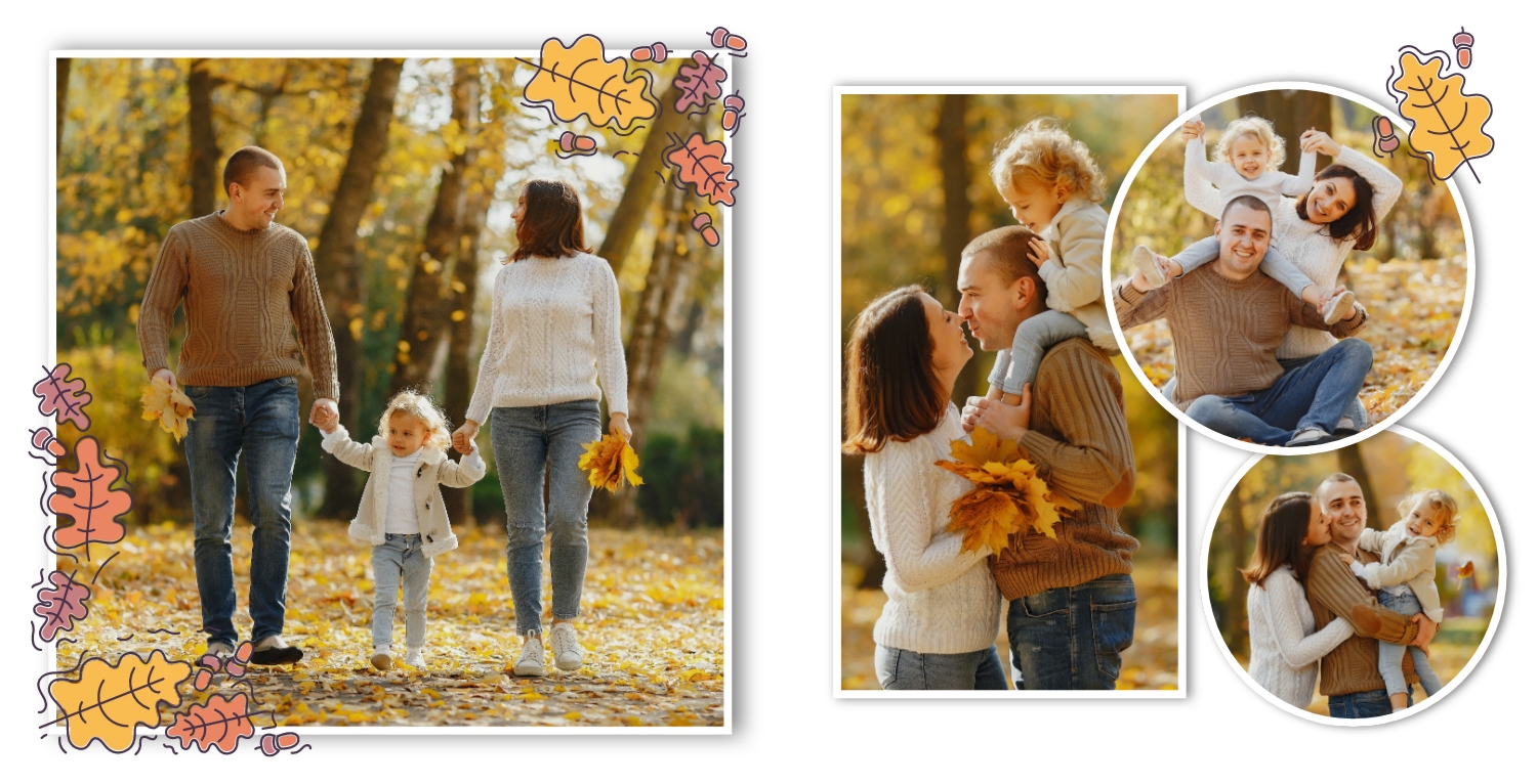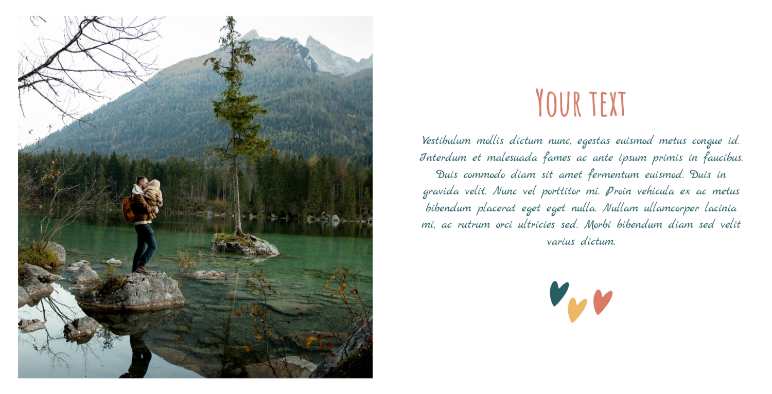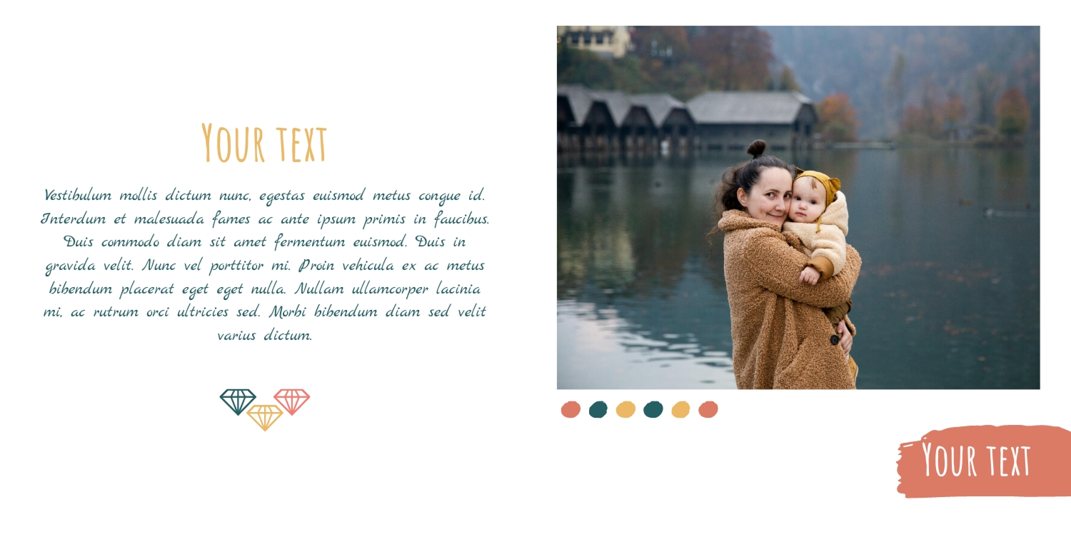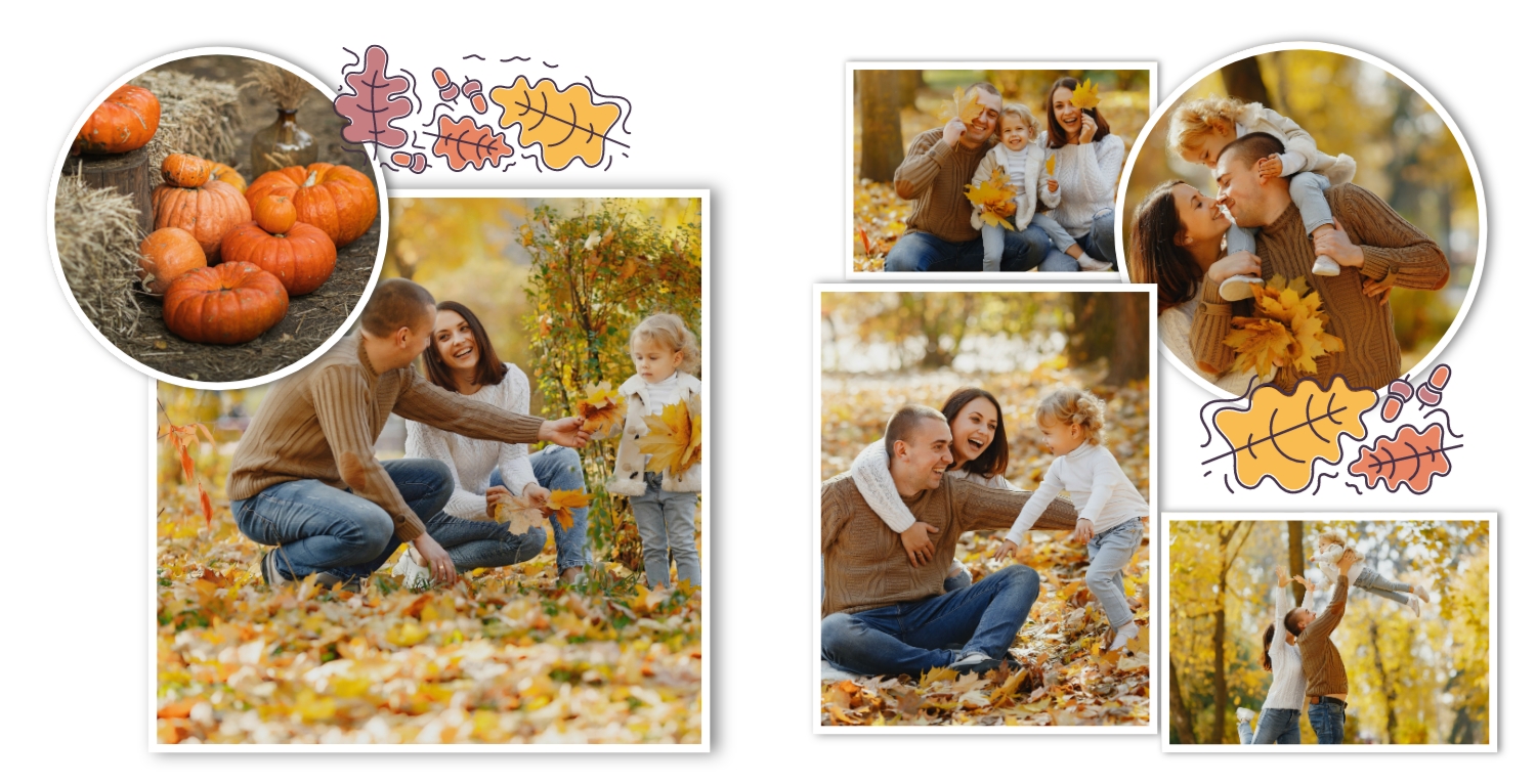 Free photo book template for memorable moments of your family. Create a layout with your own hands in the online photo book designer.