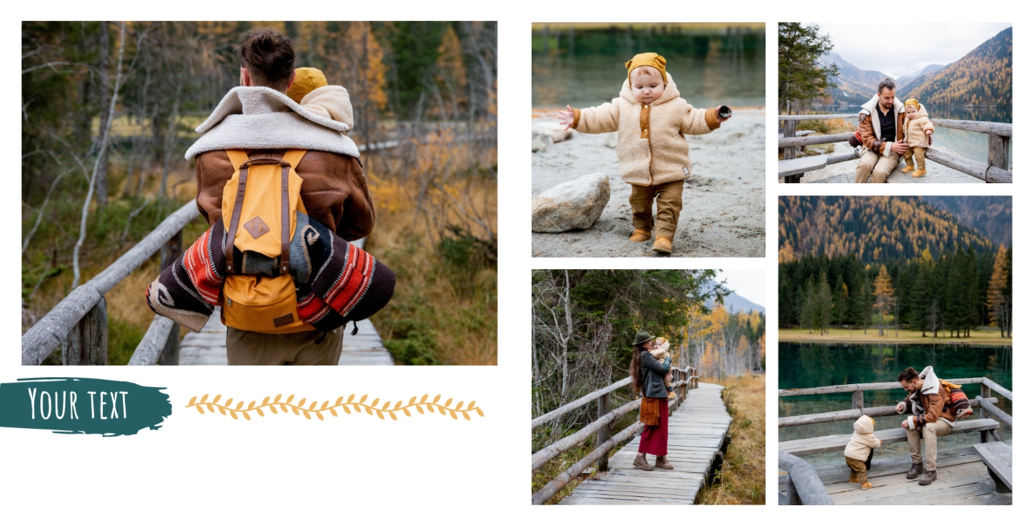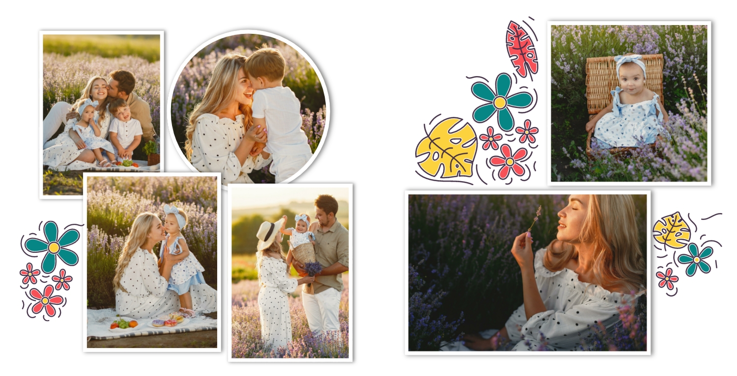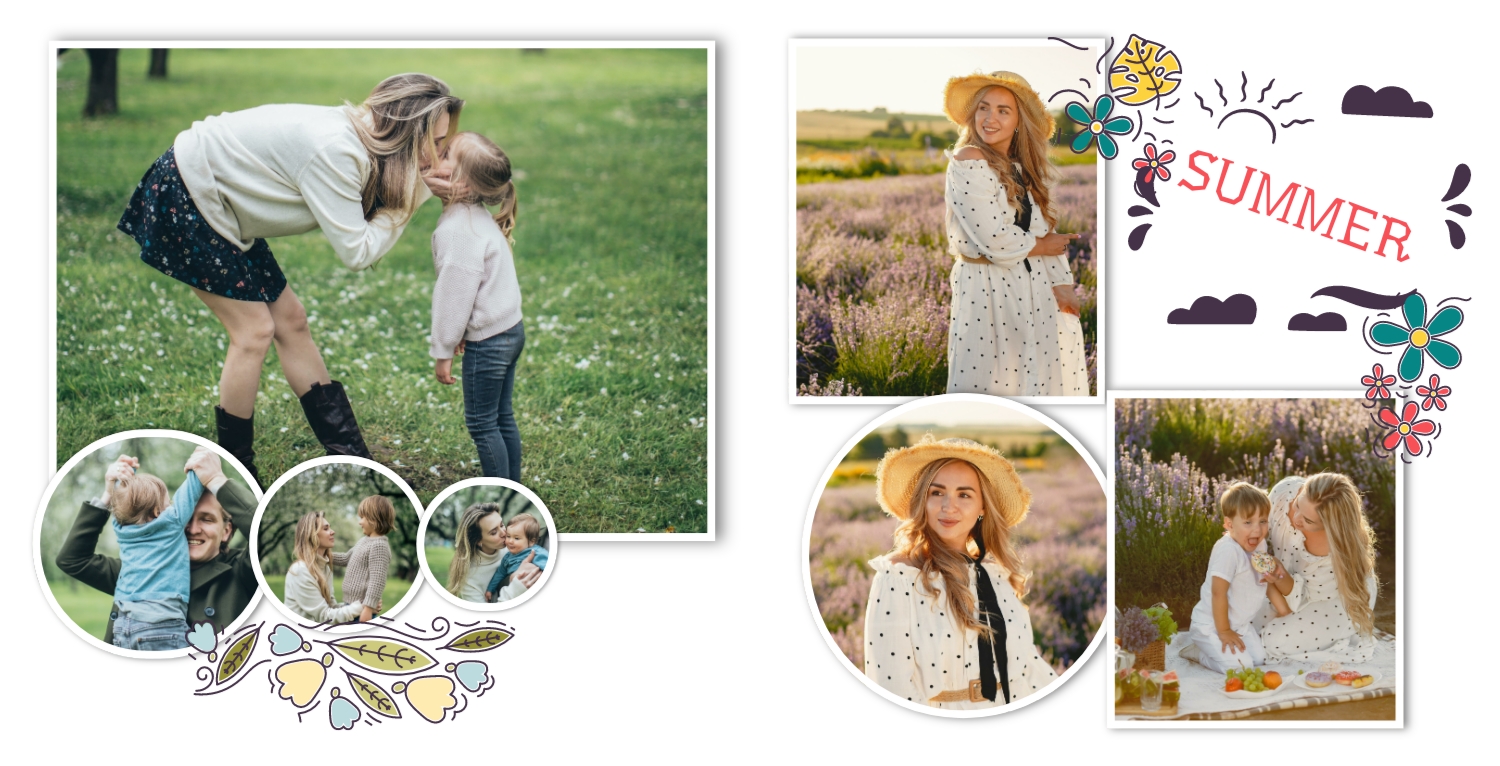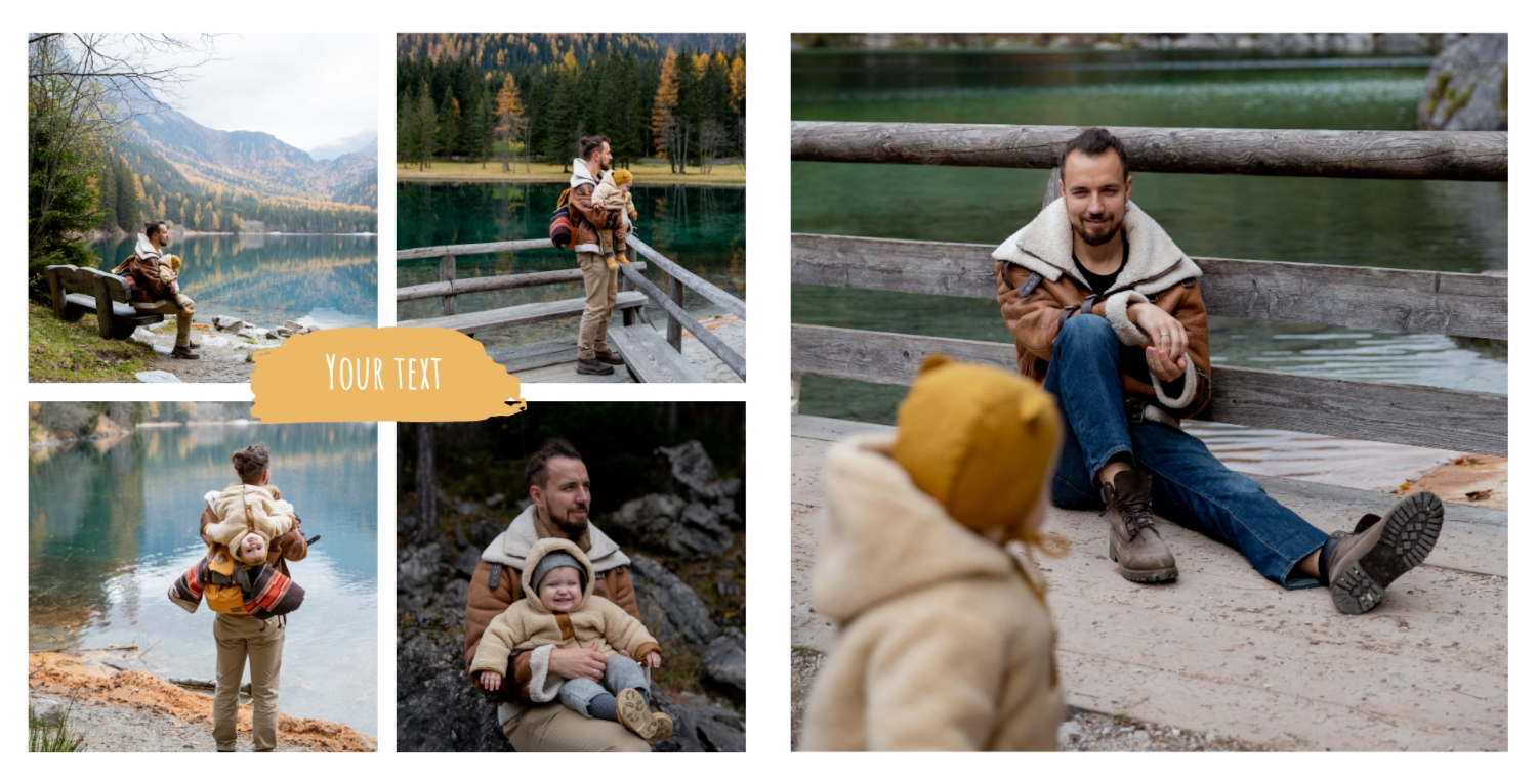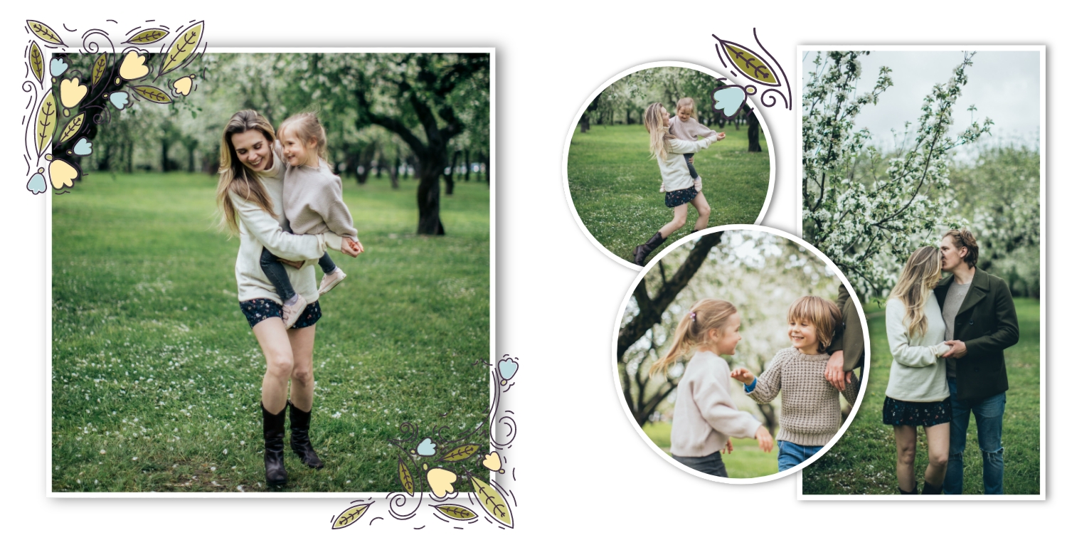 Free photo book template for memorable moments of your family. Create a layout with your own hands in the online photo book designer.