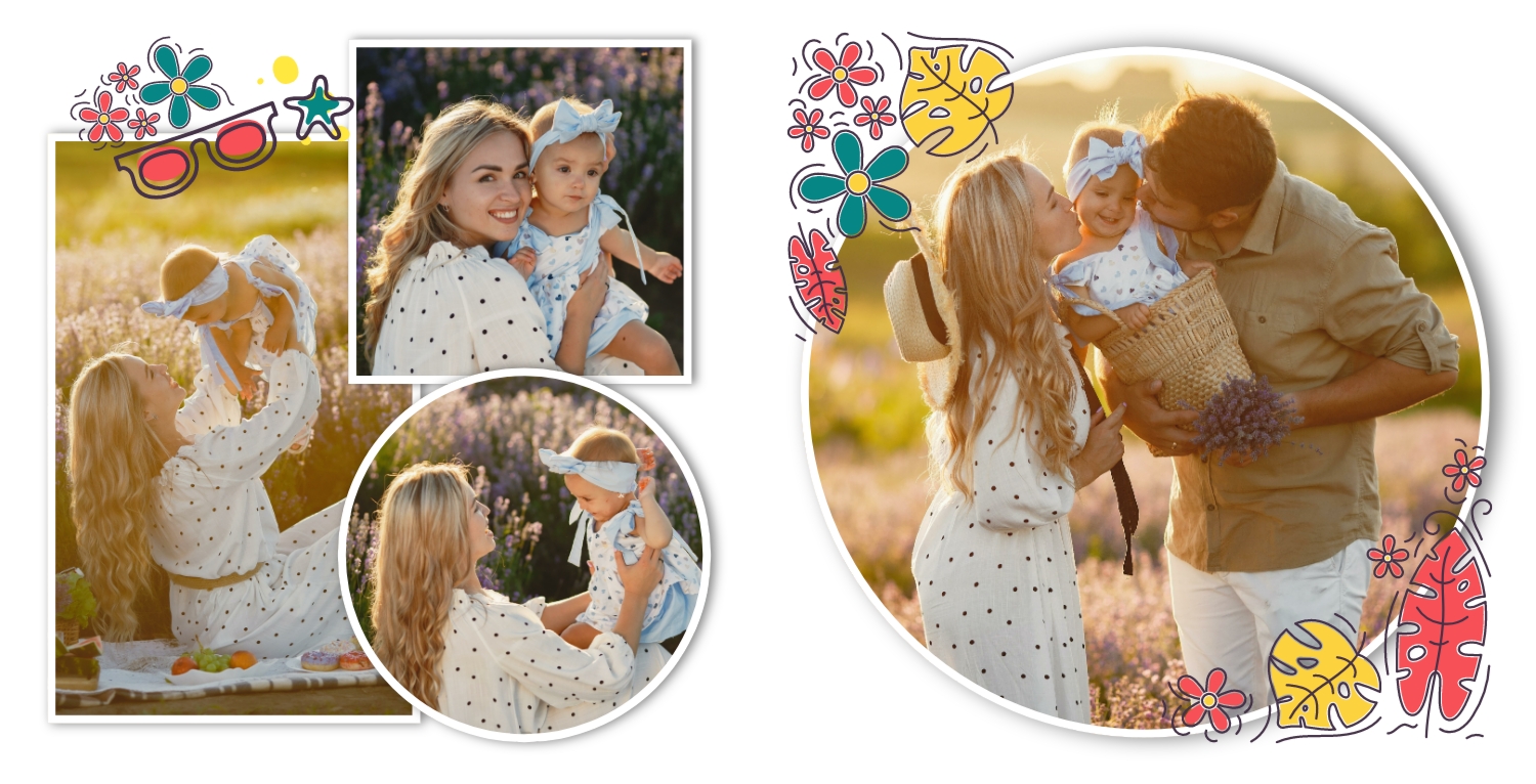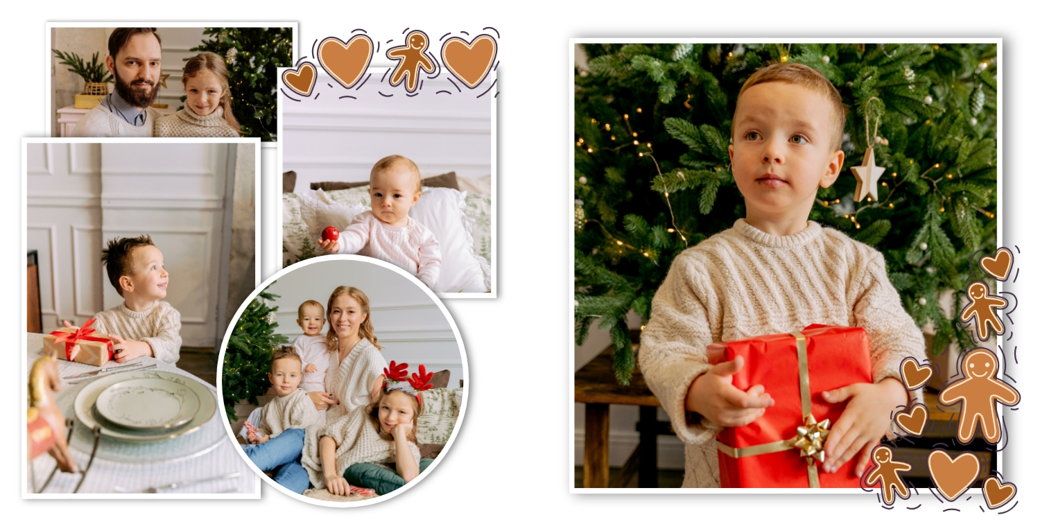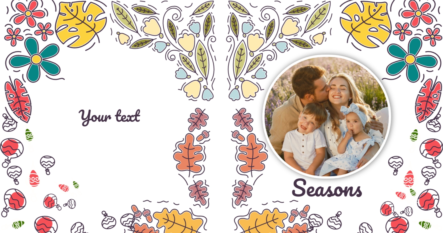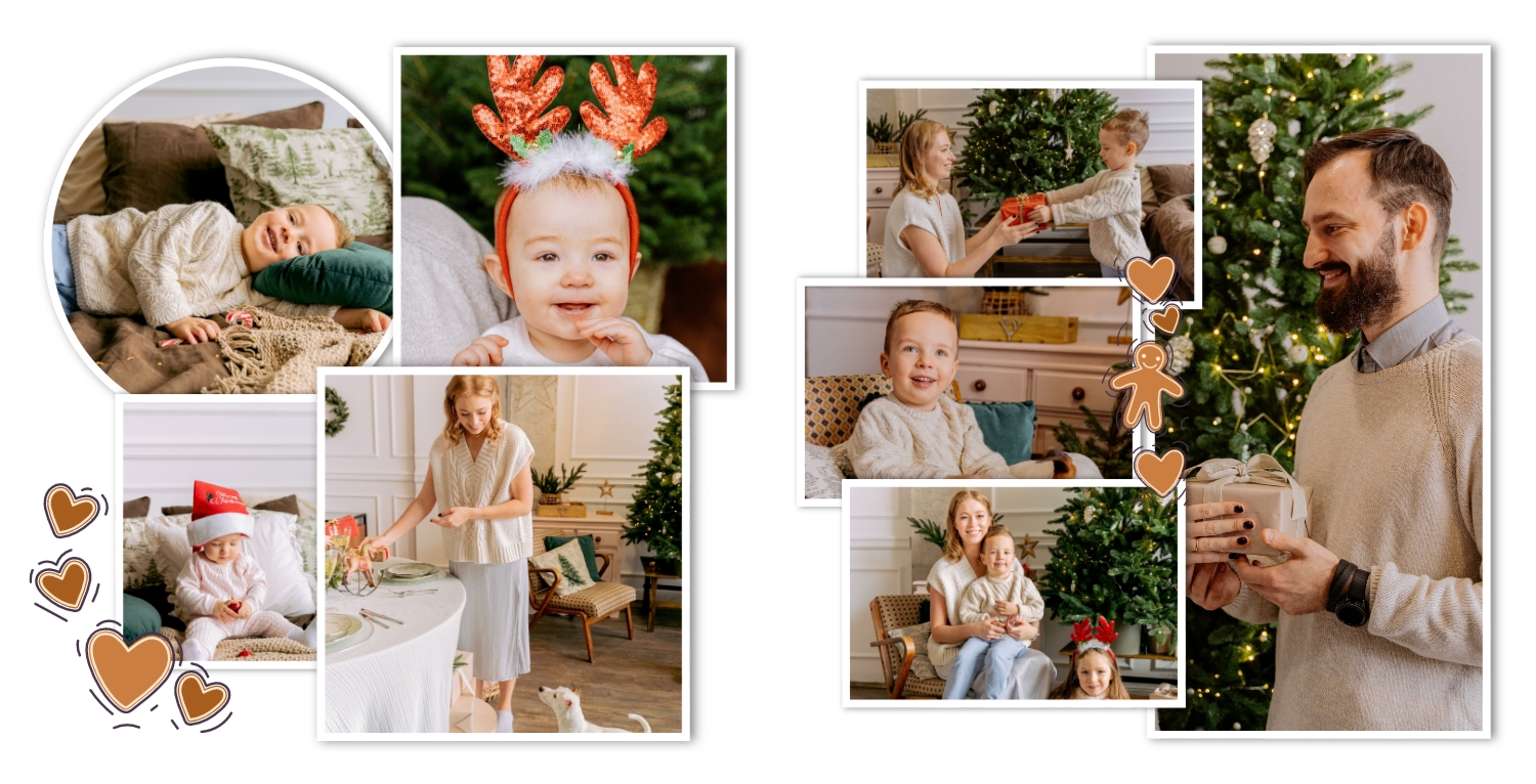 Free photo book template for memorable moments of your family. Create a layout with your own hands in the online photo book designer.
