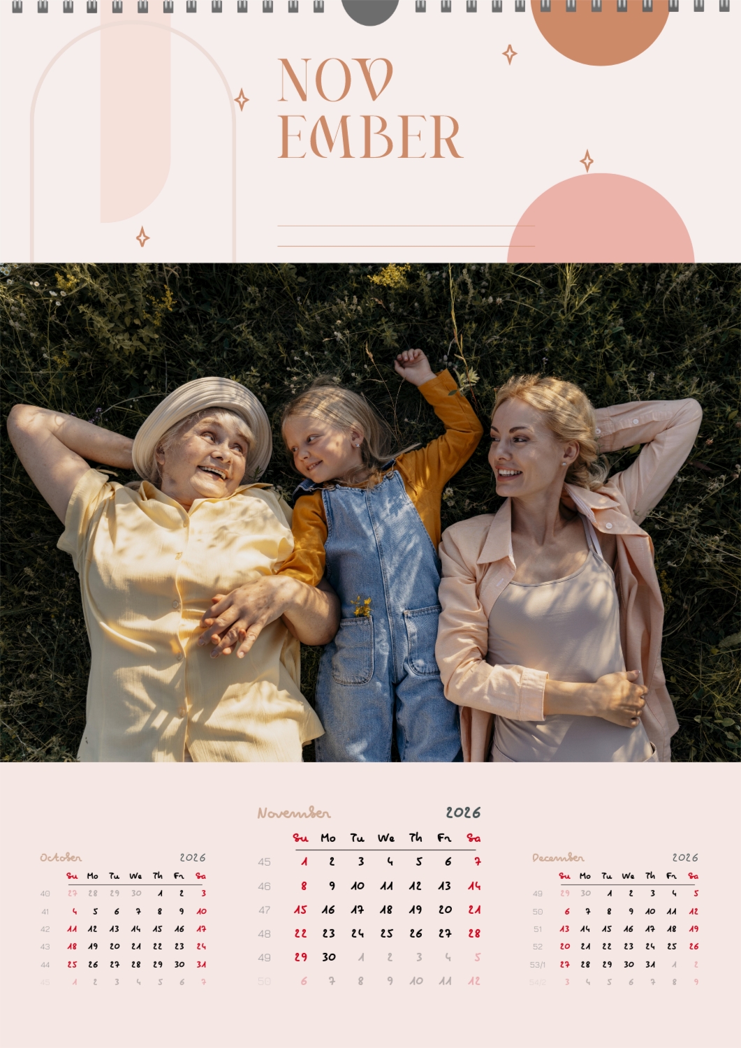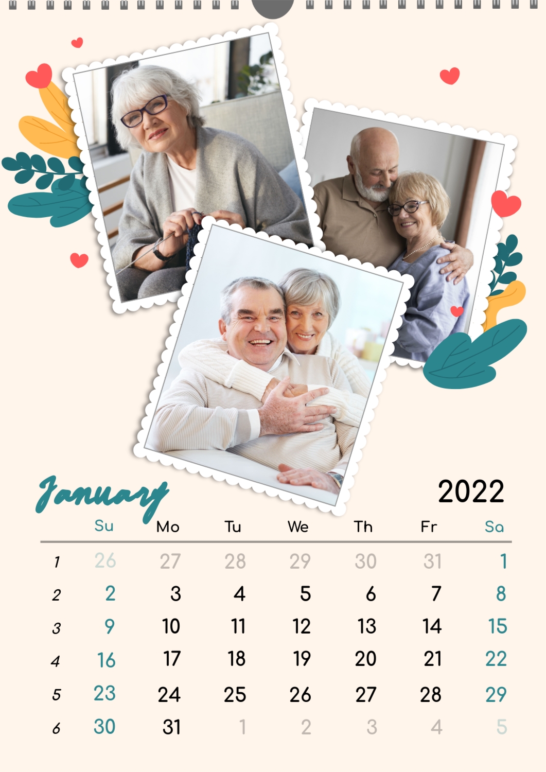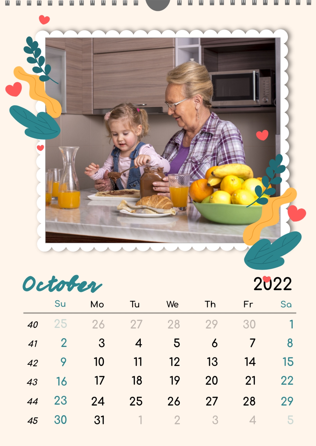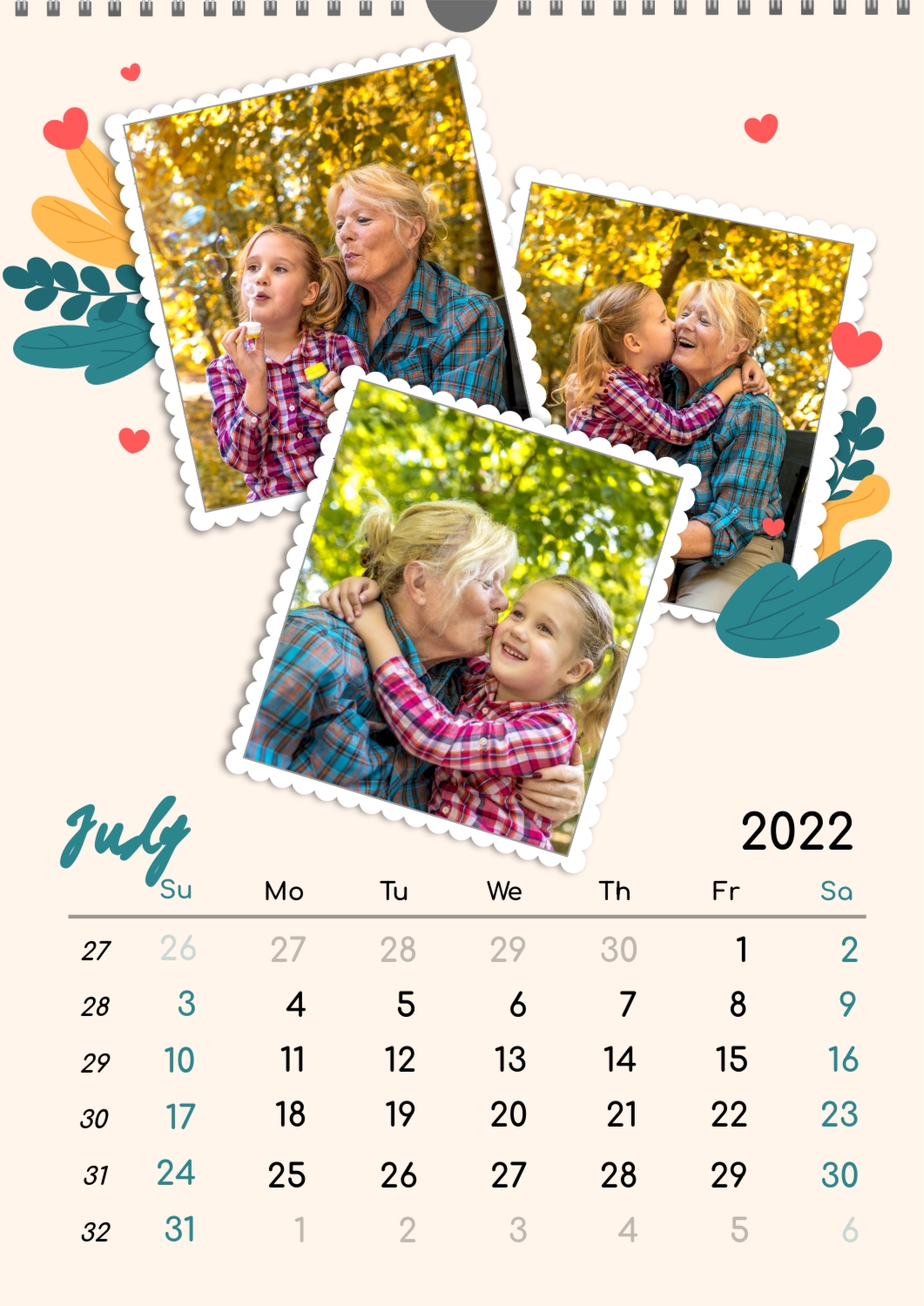 Free grandparents family calendar template. Create a layout with your own hands in the calendar designer.