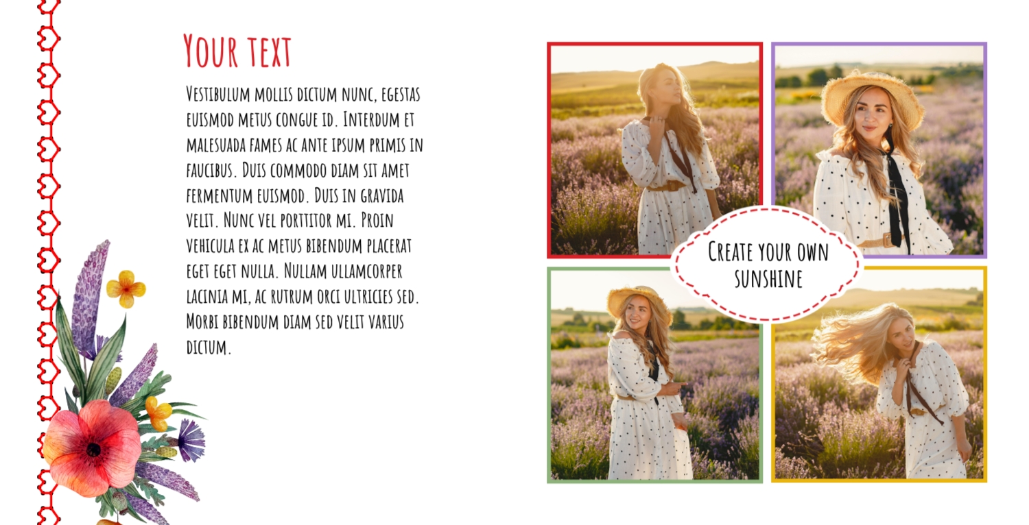 The Adventure Time photo book template is an excellent choice for creating a unique album with your own hands in our online designer. This template is perfect for those who want to keep the highlights of their adventures and memories in one stylish and unique album. You can place photos and texts on the template pages using an intuitive online constructor. Choose the appropriate layout for each page, edit it, change the layout of elements, change sizes, add filters and effects - all this will allow you to create a visually attractive design. Using the hardcover photo book template "Adventure Time" in the online designer will allow you to create a unique photo album with your own hands, which will reflect your individual vision of your memories and adventures. This is a great opportunity to save the highlights of your life and share them with friends and family.