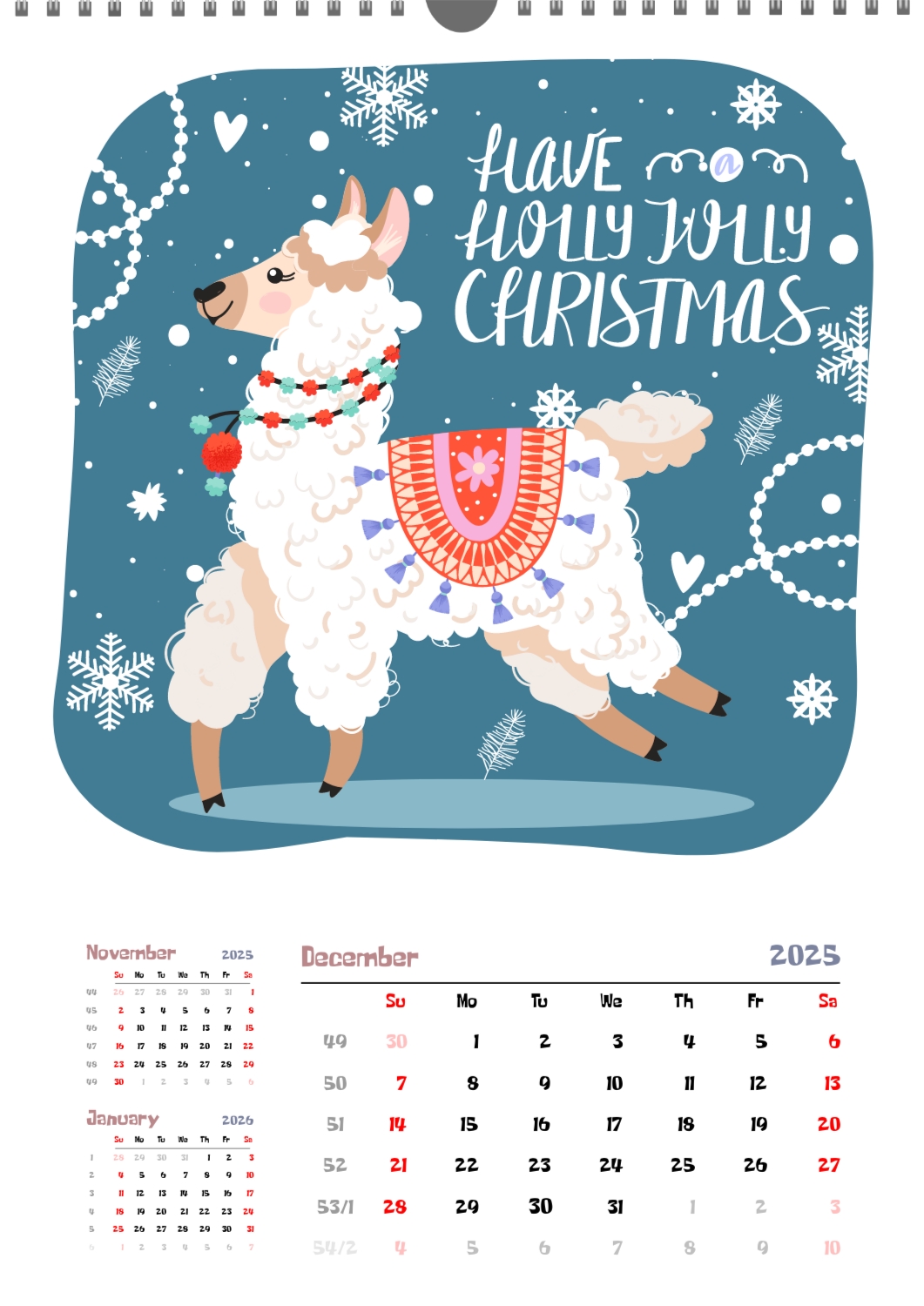 A ready—made family holiday calendar template is the perfect solution for those who want to create a warm and unique gift filled with emotions. In our online designer, you can not only use this stylish and practical layout, but also fully adapt it to your desires and needs. This template is perfect for family people who appreciate traditions and want to keep the best moments in the calendar for the whole year. It will also be useful for photographers offering their clients photographic products, or designers working on personalized projects. It will be an inspiring choice for event organizers, wedding agencies and those who are engaged in creating a festive atmosphere. In our designer, you can easily add photos, change fonts, colors and captions to make the calendar exactly the way you imagine it. For example, you can mark all important family dates, add images of memorable events, and customize the look to match the style of your home.
