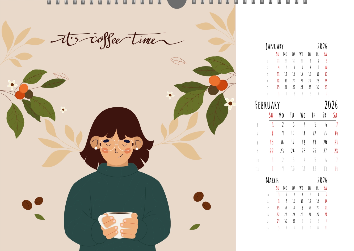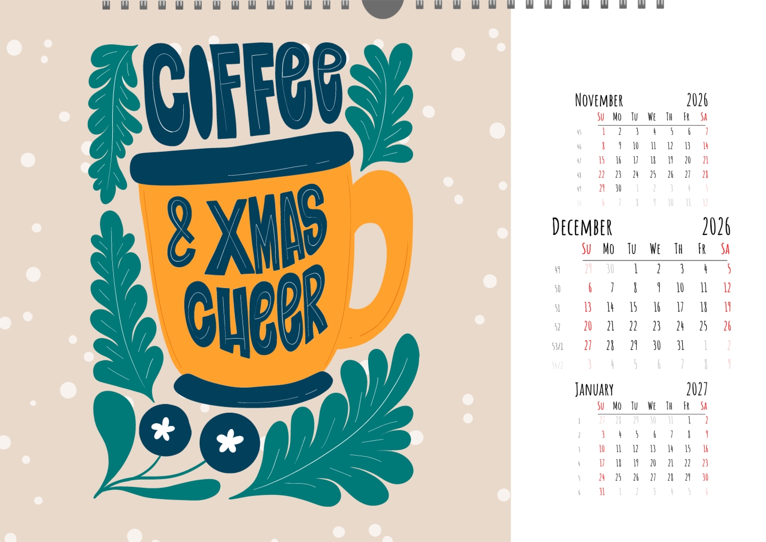 Free wall advertising calendar template for advertising eco-friendly cosmetics, with the ability to edit it in the calendar designer