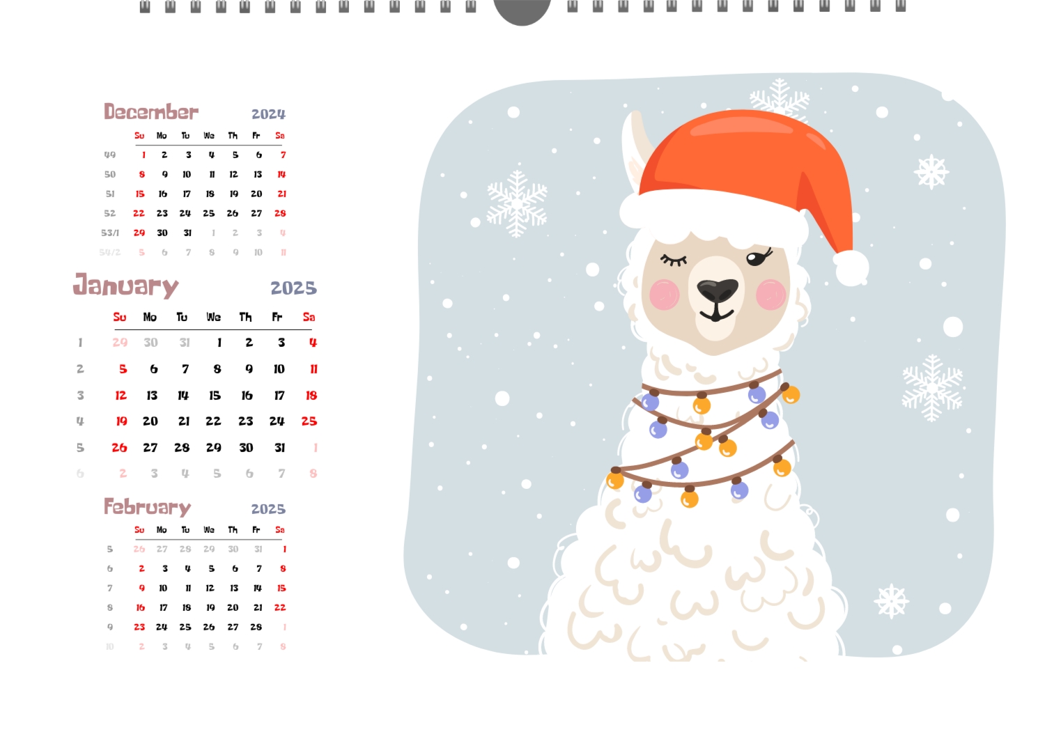 A ready—made template for a family New Year's wall calendar is the perfect solution for those who want to create a festive decoration for their home or make a touching gift to their loved ones. This template is designed taking into account family traditions, warmth and comfort of New Year holidays. It allows you to easily and quickly create a personalized calendar with a unique design. The template is suitable for family photographers, designers, holiday specialists and anyone who works in creative fields. Parents can use it to create a wall—mounted horizontal calendar with photos of children, grandparents — for decoration with family pictures, and teachers - as a thematic gift for their students. In addition, such a calendar will be an excellent corporate gift for companies engaged in family services, such as kindergartens, development centers or clubs. In our online designer, you can easily adapt the template to your needs. Upload photos, add texts, change colors or decorative elements to emphasize the individuality of your calendar. Even those who are trying their hand at design for the first time will be able to easily cope with this process thanks to the intuitive interface of the designer. A family New Year's calendar, created with your own hands, will not only decorate your home, but also become a symbol of love, care and New Year's mood for the whole year.