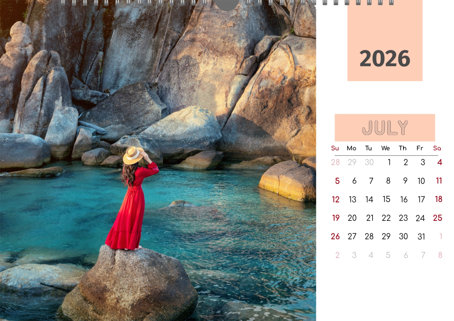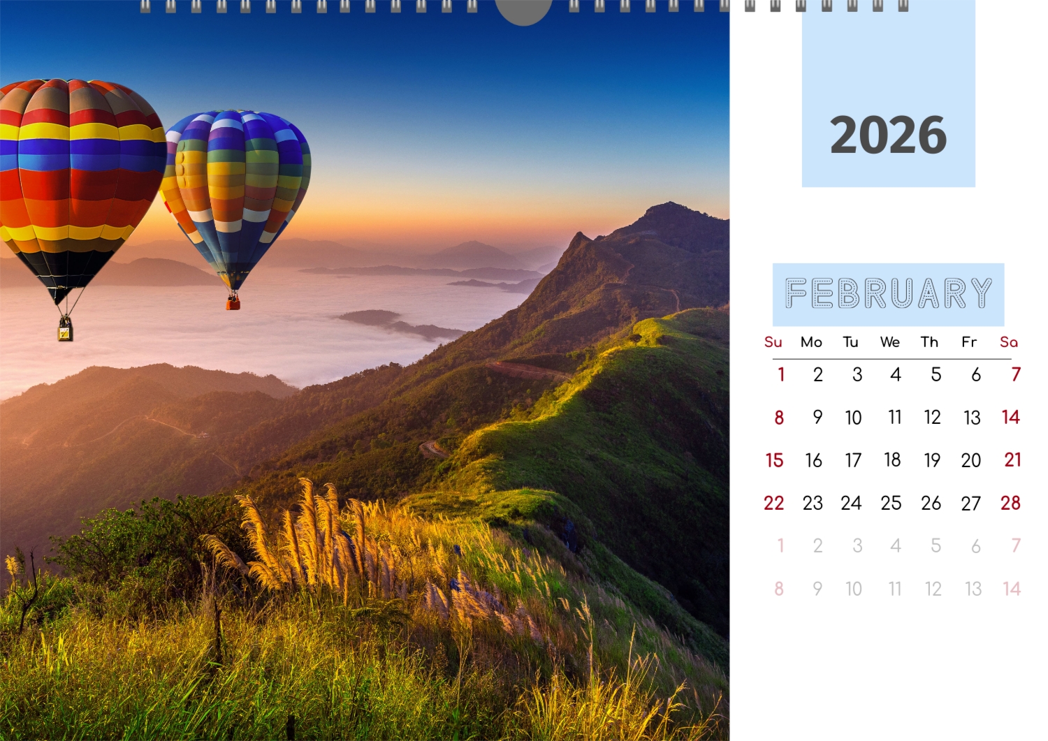 The Best Memories calendar template is the perfect foundation for creating a personalized horizontal wall calendar that will reflect the most significant moments of your life. This template is suitable for any user who wants to emphasize individuality and save important events in a stylish and functional format. It will be especially useful for photographers, married couples, owners of creative studios or small businesses who want to create a unique product for clients or give their loved ones something special. You can easily adapt the design to your needs using our user-friendly online designer. Editing allows you to replace photos, add text blocks with important dates or inspiring quotes, and choose a color scheme that will emphasize your mood. The designer offers a simple interface where you literally create a unique calendar with your own hands, adding personal touches and experimenting with design elements.