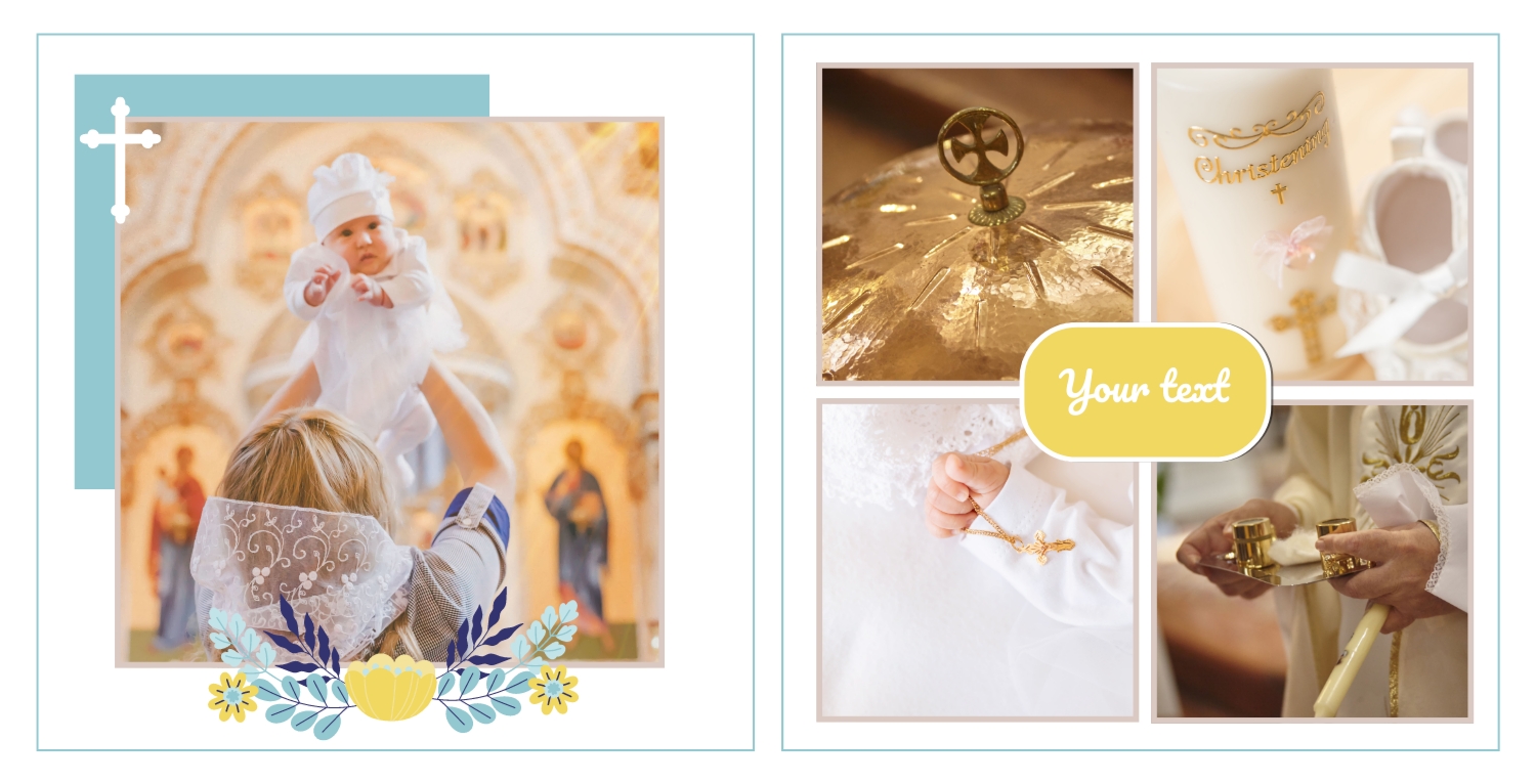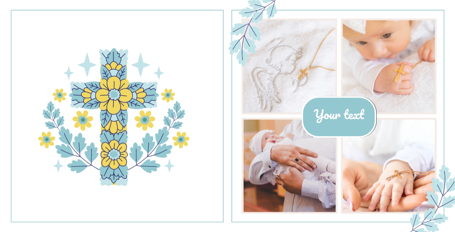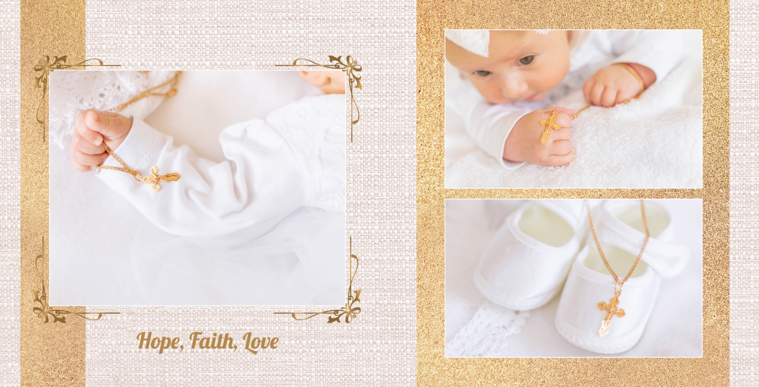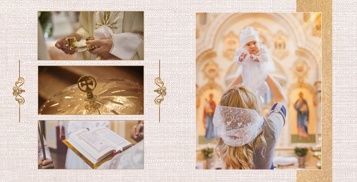 The ready-made photobook template in a hard cover "Sacrament of Baptism" was created to capture the bright and important moments of this significant event. It is suitable for parents, godparents, photographers and anyone who wants to design a memorable album about the baptism of a child. This design will also be useful for specialists involved in family and children's photography, church printing houses and organizers of baptismal events. The template is designed in delicate colors with elegant decorative elements symbolizing purity and grace. However, in our online designer, you can easily adapt it to your personal preferences. You can replace the background, change the color palette, add or remove decorations, and choose a convenient arrangement of photos. It is important that each page can be edited, blocks can be rearranged, signatures, stylized inscriptions or even personal wishes can be added. It is very easy to create your own unique square photo book. All you need to do is upload photos, adjust the layout to your taste and immediately see what the finished result will look like. The online designer allows you to save changes at any time and return to work later.