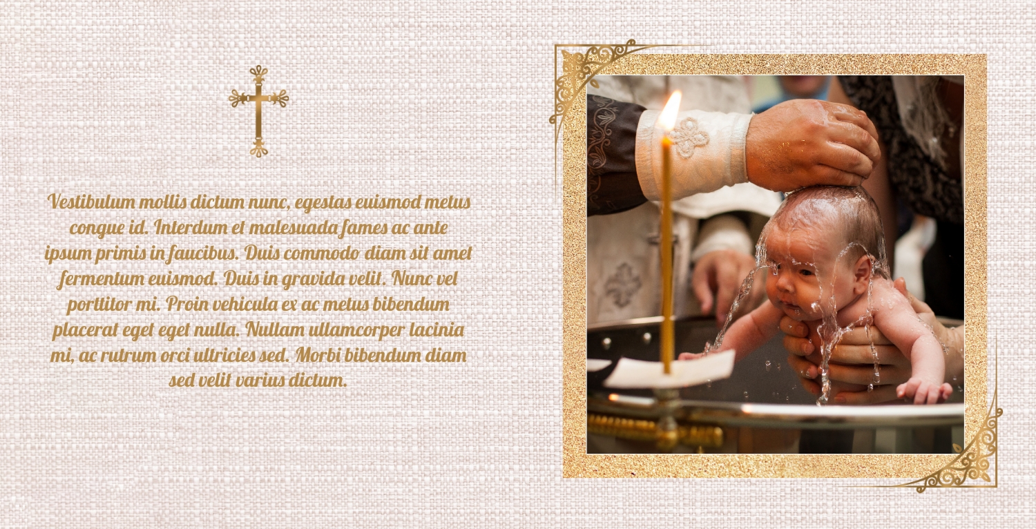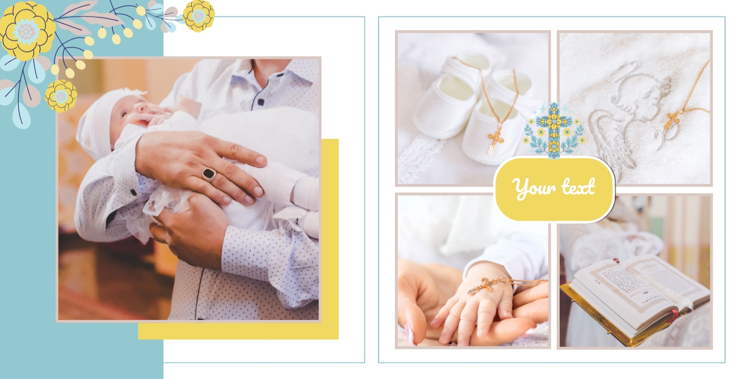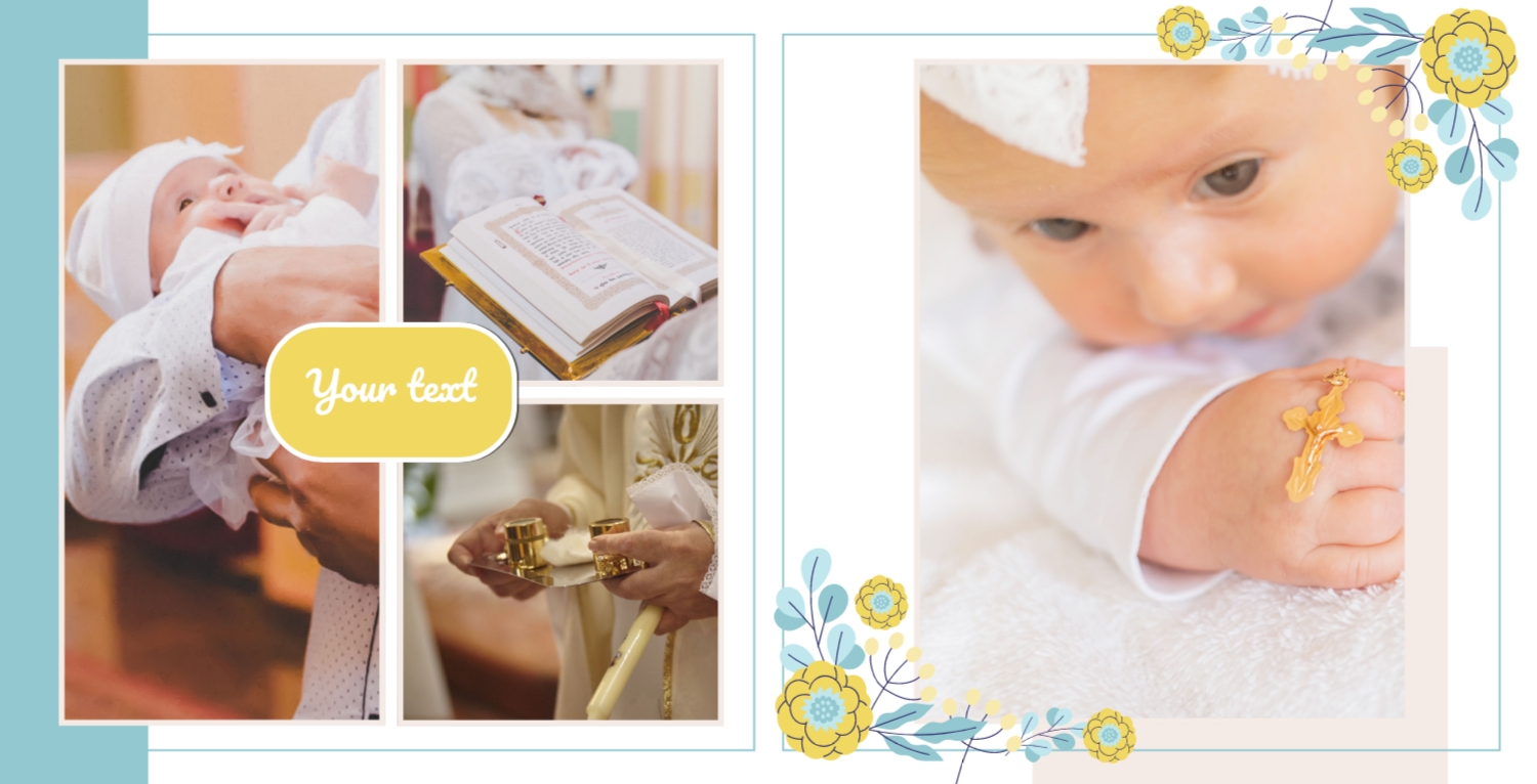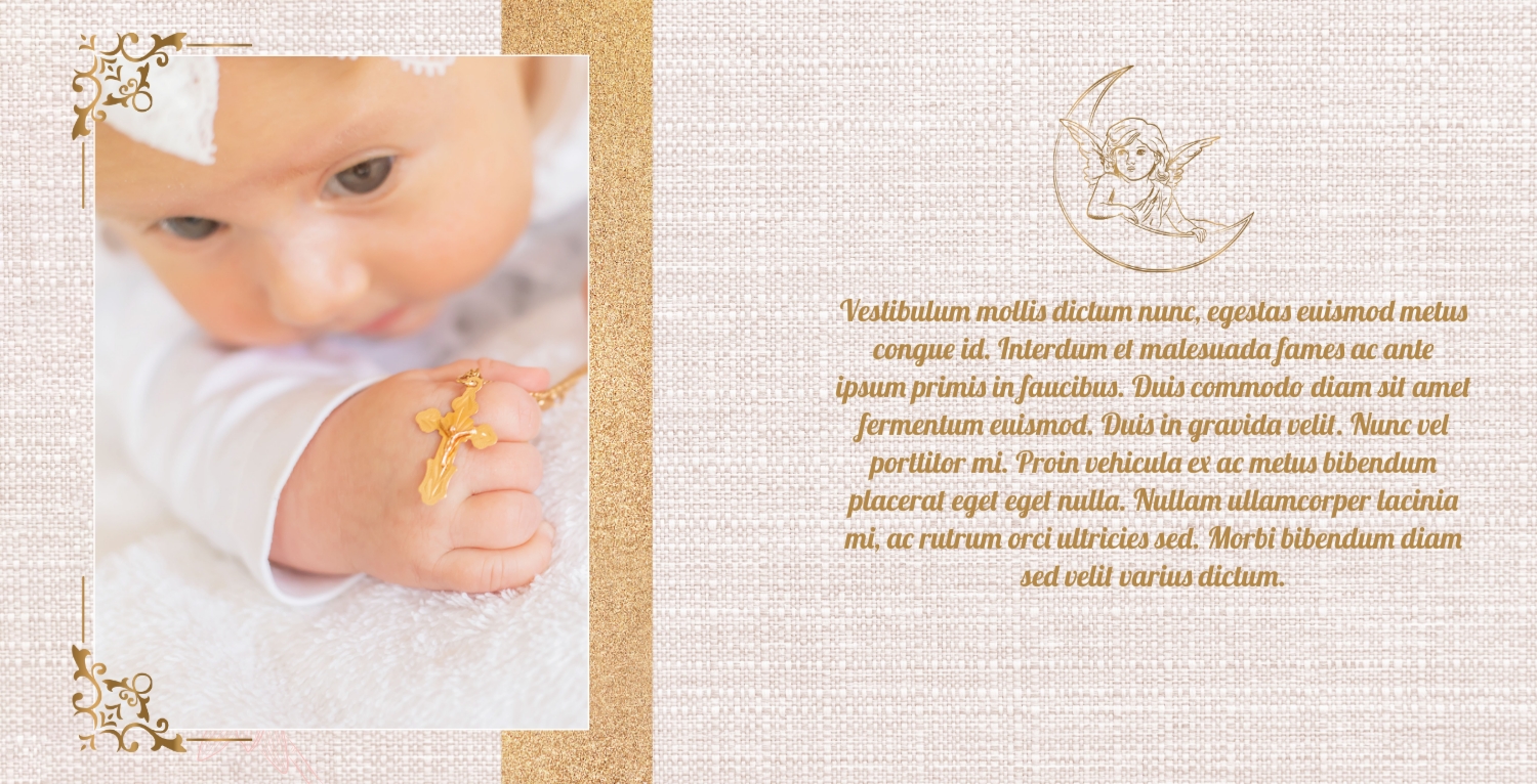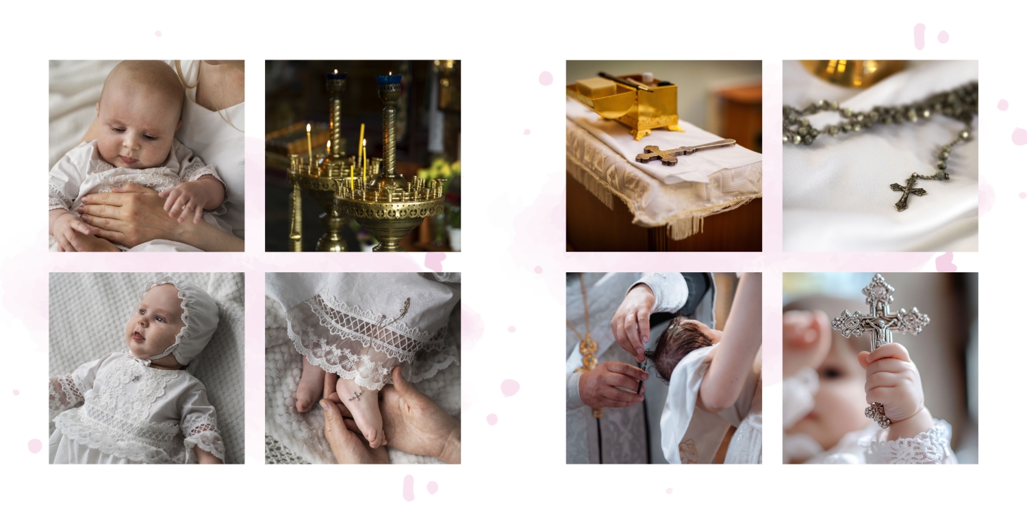 The ready-made photobook template in a hard cover "Sacrament of Baptism" was created to capture the bright and important moments of this significant event. It is suitable for parents, godparents, photographers and anyone who wants to design a memorable album about the baptism of a child. This design will also be useful for specialists involved in family and children's photography, church printing houses and organizers of baptismal events. The template is designed in delicate colors with elegant decorative elements symbolizing purity and grace. However, in our online designer, you can easily adapt it to your personal preferences. You can replace the background, change the color palette, add or remove decorations, and choose a convenient arrangement of photos. It is important that each page can be edited, blocks can be rearranged, signatures, stylized inscriptions or even personal wishes can be added. It is very easy to create your own unique square photo book. All you need to do is upload photos, adjust the layout to your taste and immediately see what the finished result will look like. The online designer allows you to save changes at any time and return to work later.