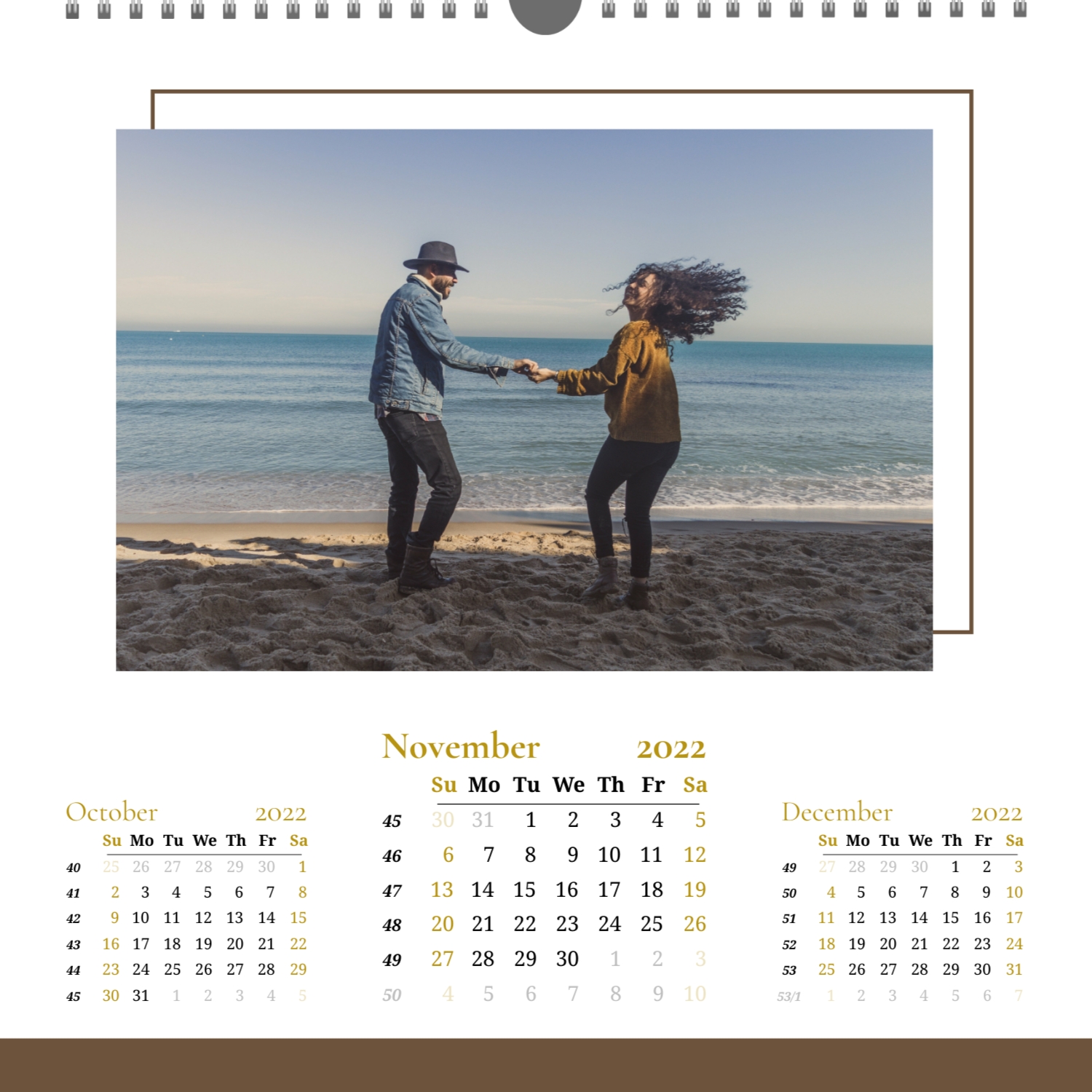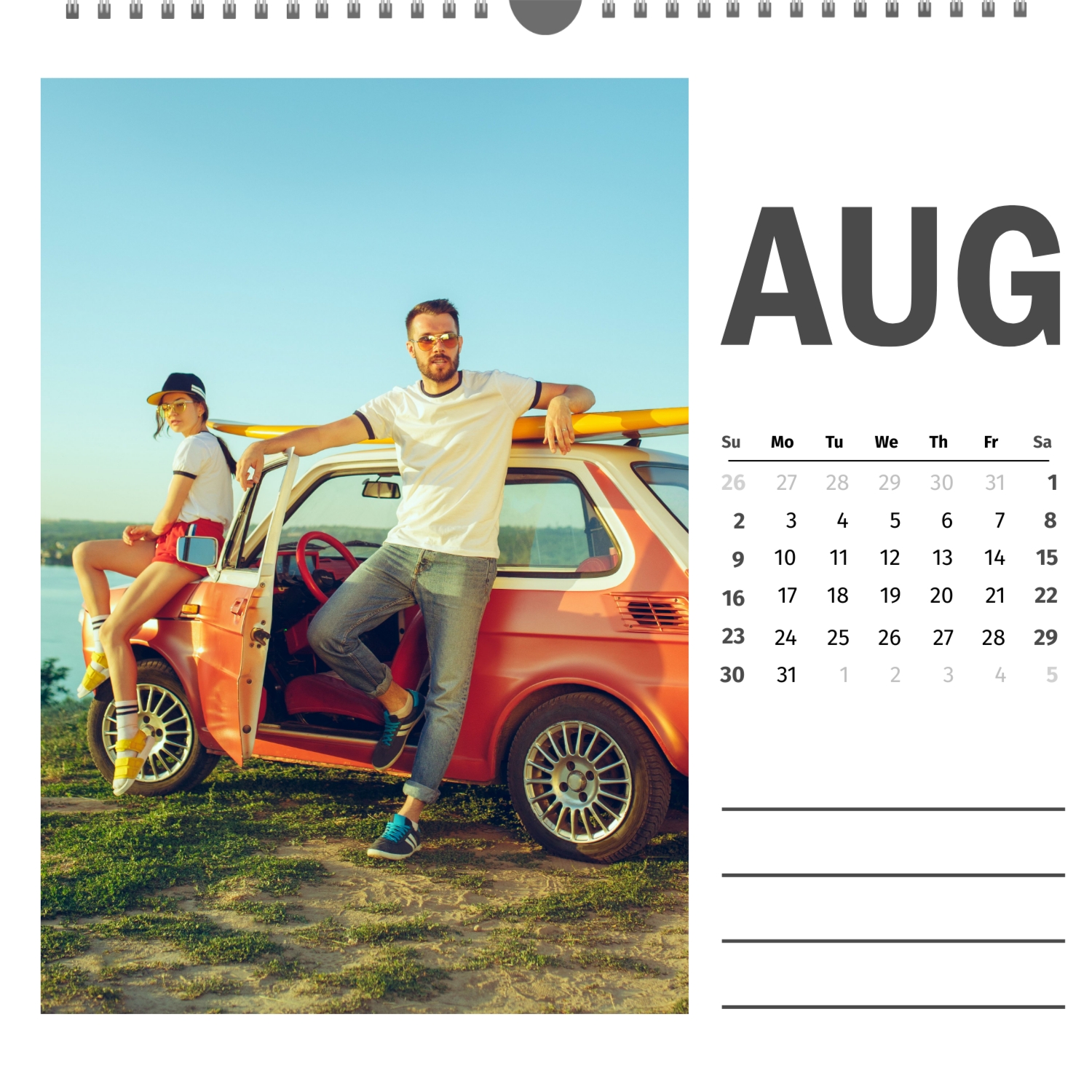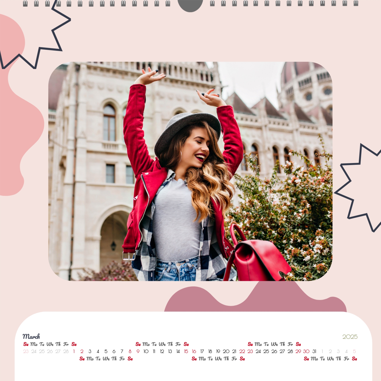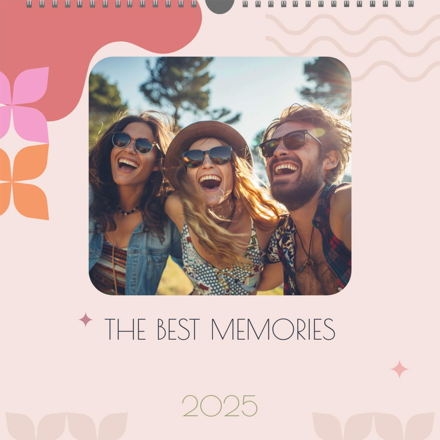 A ready–made wall calendar template for a couple in love is the perfect way to create a unique and touching gift. It has a romantic design that highlights the special bond between the partners. Such a square wall calendar can become not only a pleasant souvenir, but also a stylish interior element. This template is great for photographers specializing in love story, as it can be used to create beautiful professional images. It will also be useful for designers and bloggers working in the romantic field, and it is also ideal for owners of wedding agencies who want to offer customers an unusual gift. The main advantage of this calendar is the possibility of full personalization in our online calendar builder. You can upload your photos, change the background, add memorable dates, romantic captions, or even funny comments to each month. Thanks to the simple and intuitive interface, editing will take a minimum of time, and the result will delight with personality and high quality. By creating such a calendar with your own hands, you put warmth and care into it, making it really special.