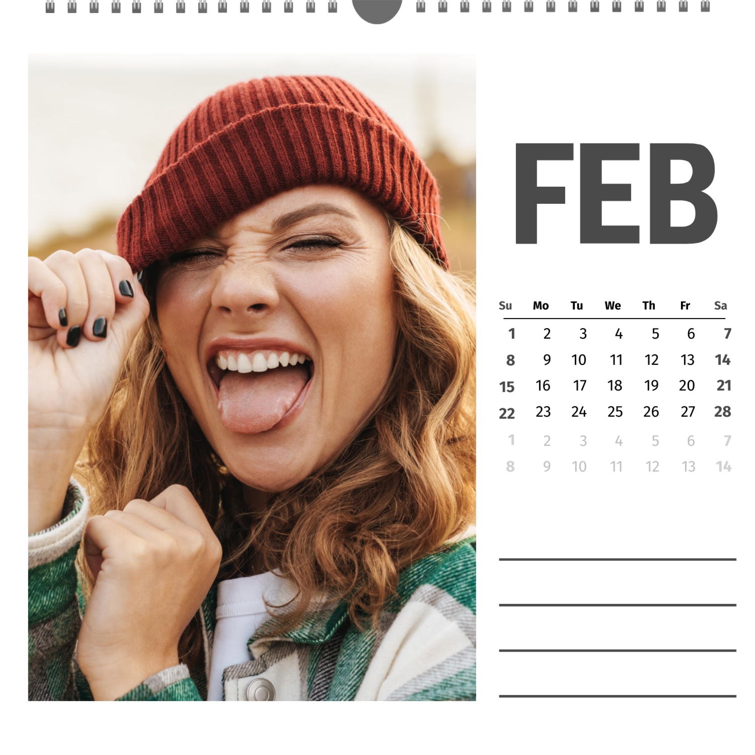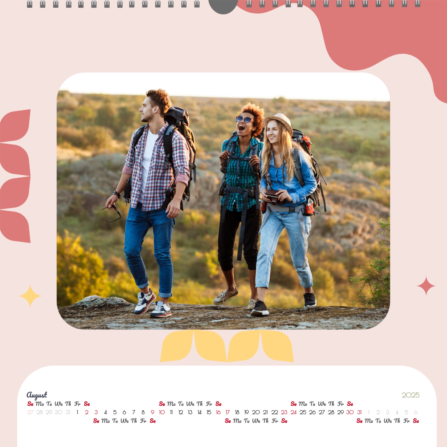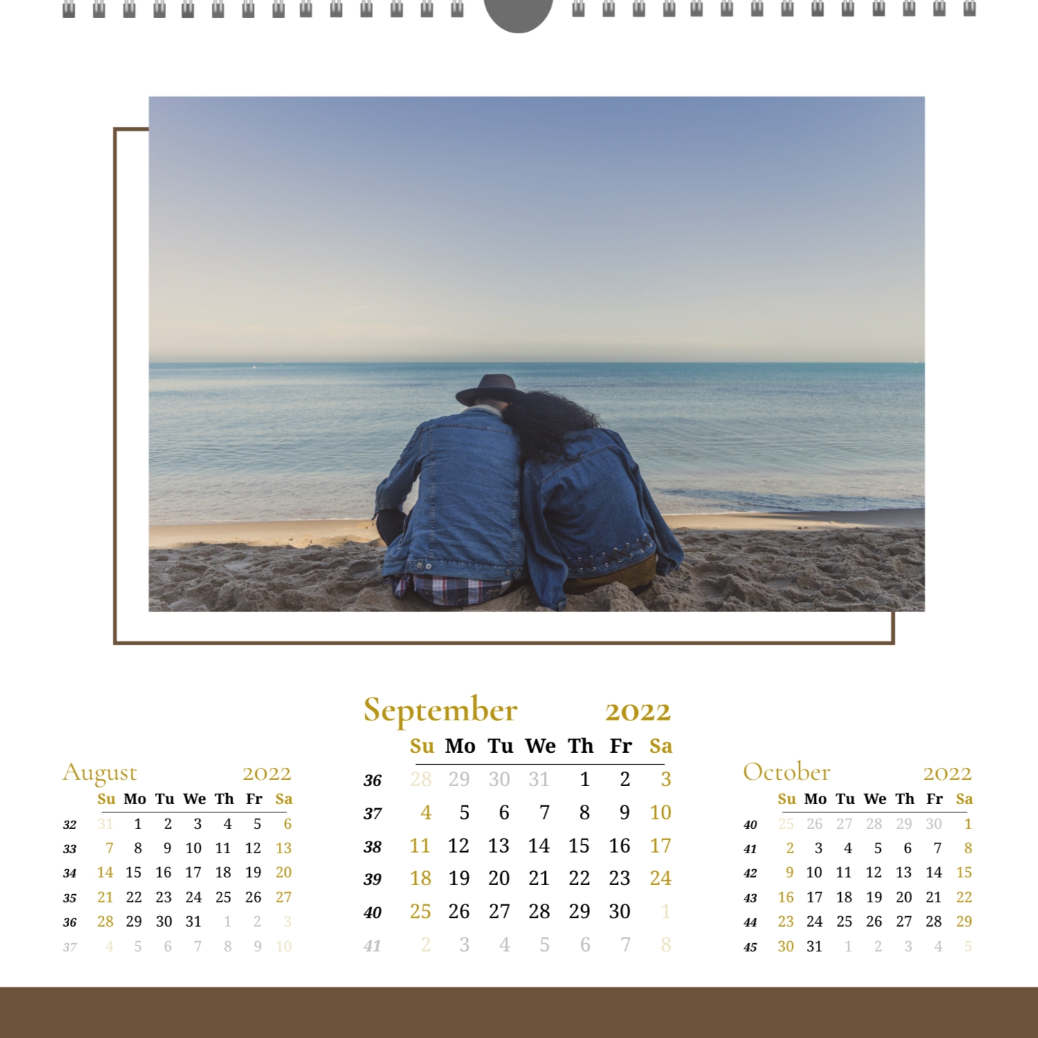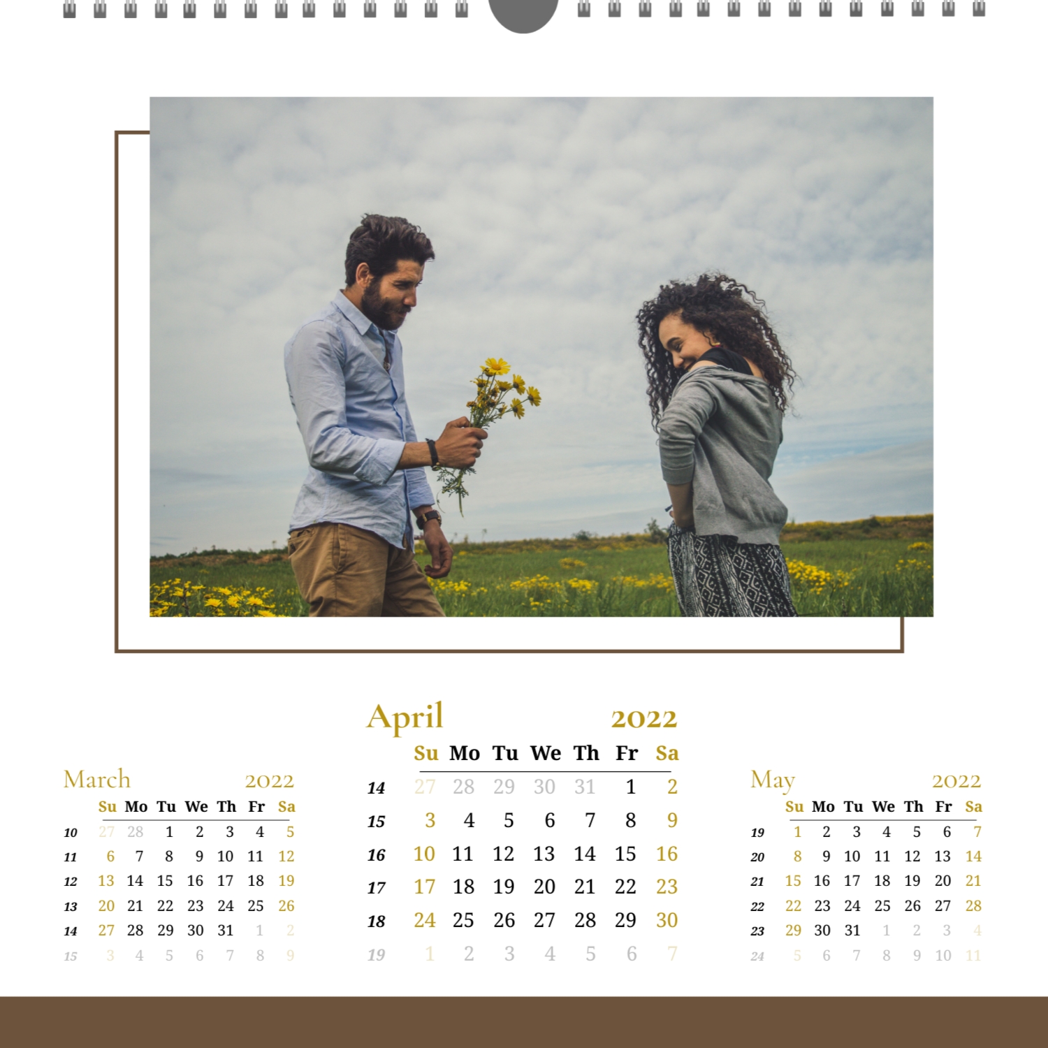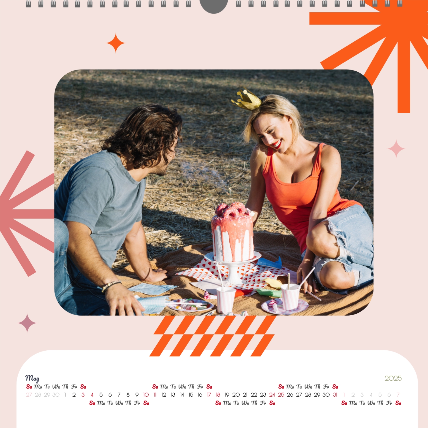 A ready–made wall calendar template for a couple in love is the perfect way to create a unique and touching gift. It has a romantic design that highlights the special bond between the partners. Such a square wall calendar can become not only a pleasant souvenir, but also a stylish interior element. This template is great for photographers specializing in love story, as it can be used to create beautiful professional images. It will also be useful for designers and bloggers working in the romantic field, and it is also ideal for owners of wedding agencies who want to offer customers an unusual gift. The main advantage of this calendar is the possibility of full personalization in our online calendar builder. You can upload your photos, change the background, add memorable dates, romantic captions, or even funny comments to each month. Thanks to the simple and intuitive interface, editing will take a minimum of time, and the result will delight with personality and high quality. By creating such a calendar with your own hands, you put warmth and care into it, making it really special.