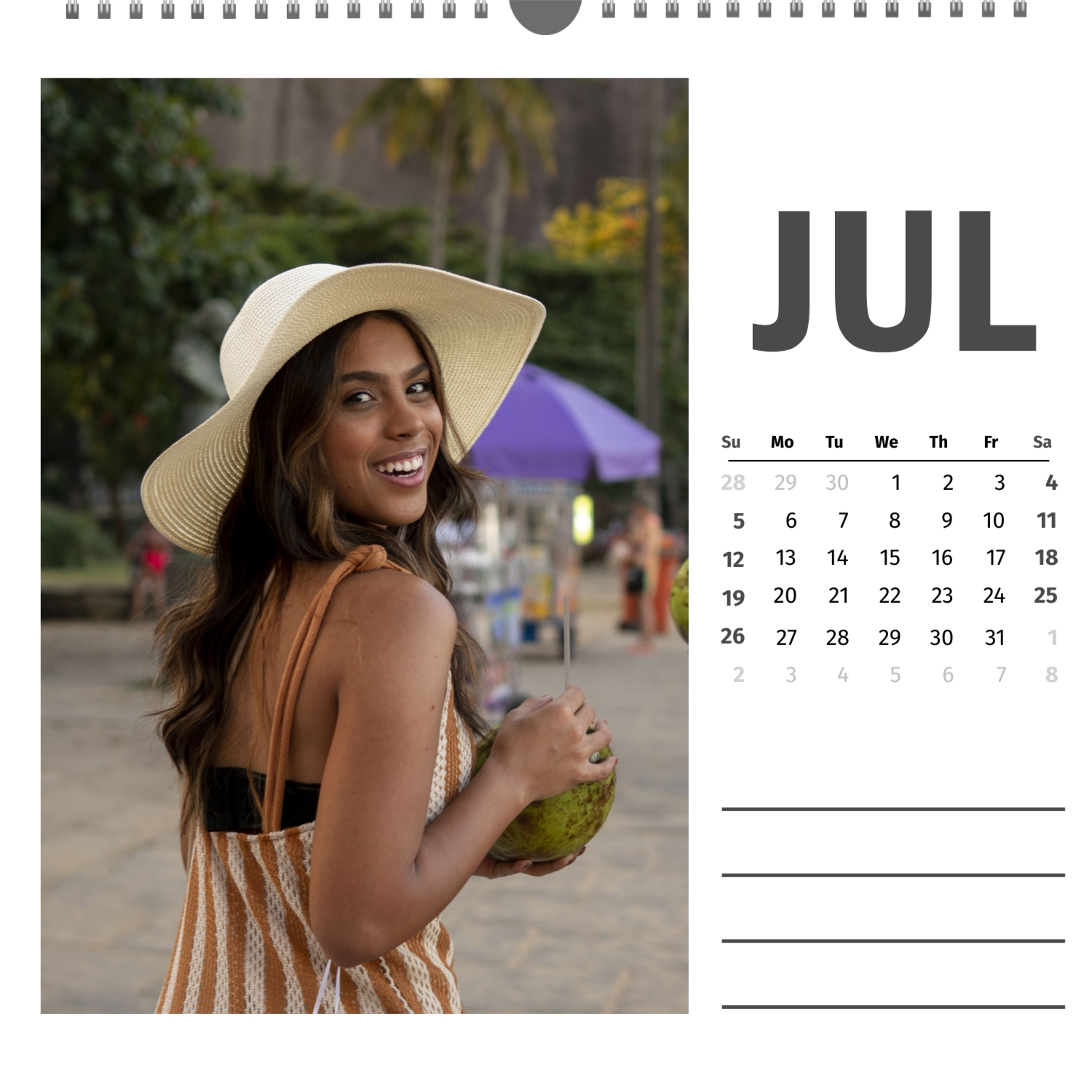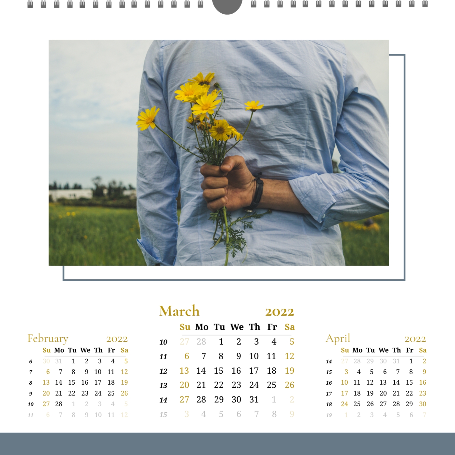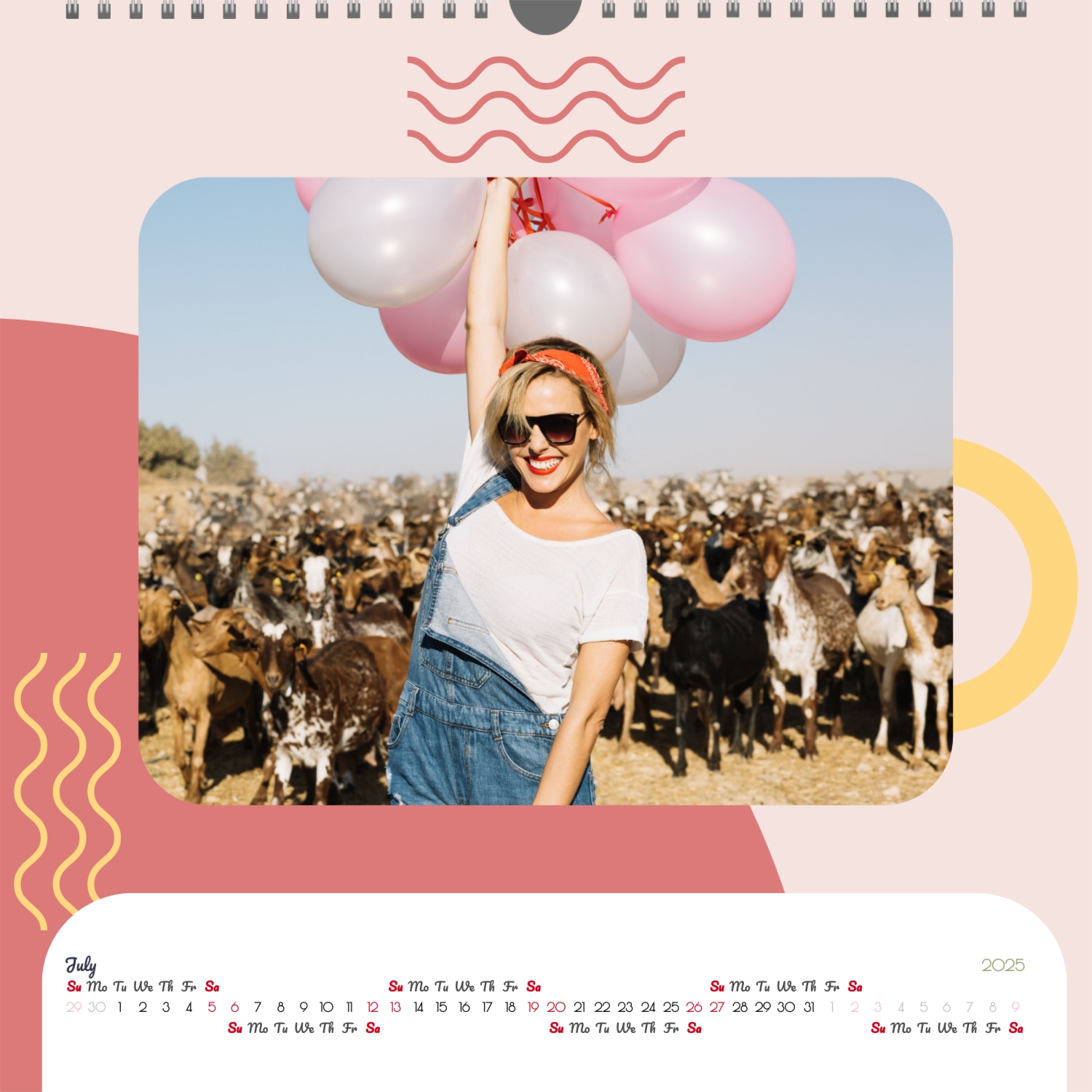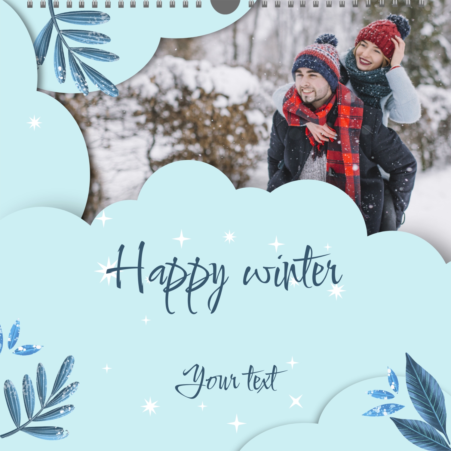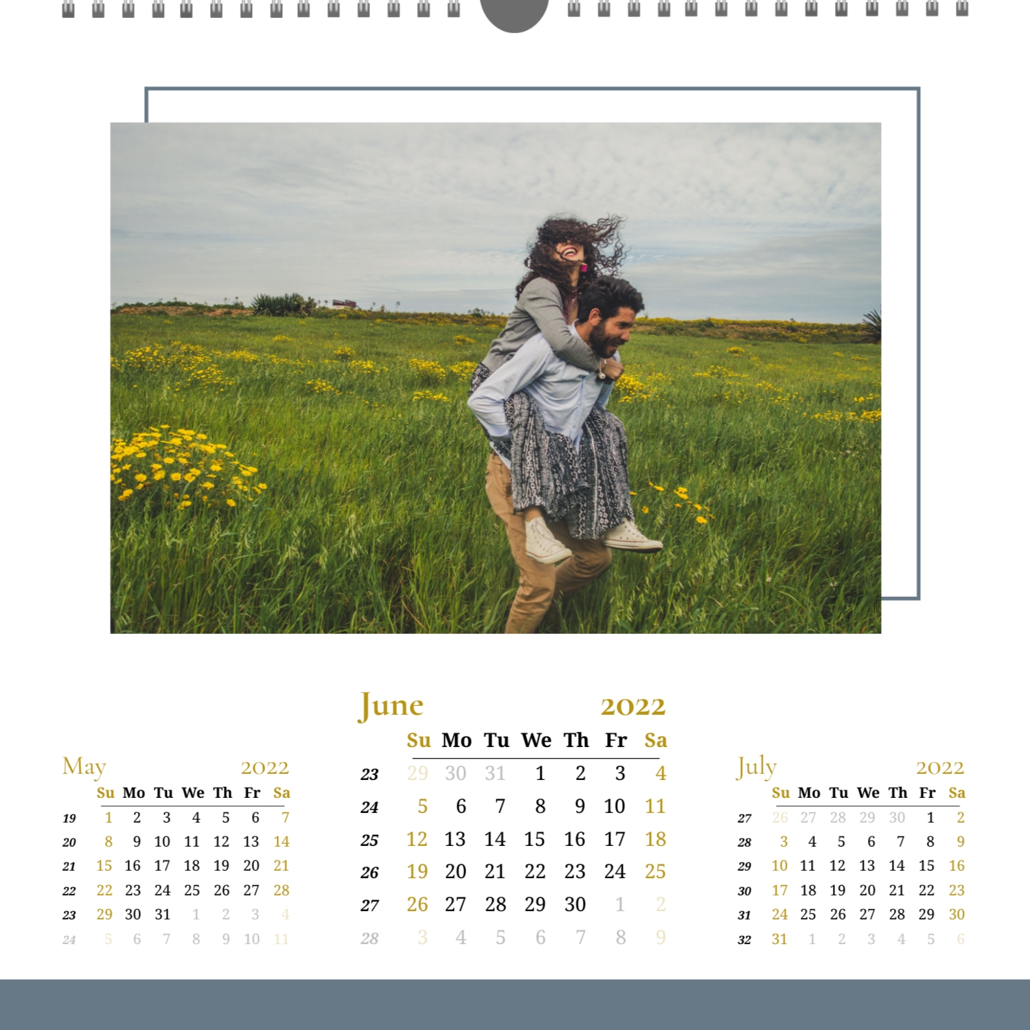 A ready–made wall calendar template for a couple in love is the perfect way to create a unique and touching gift. It has a romantic design that highlights the special bond between the partners. Such a square wall calendar can become not only a pleasant souvenir, but also a stylish interior element. This template is great for photographers specializing in love story, as it can be used to create beautiful professional images. It will also be useful for designers and bloggers working in the romantic field, and it is also ideal for owners of wedding agencies who want to offer customers an unusual gift. The main advantage of this calendar is the possibility of full personalization in our online calendar builder. You can upload your photos, change the background, add memorable dates, romantic captions, or even funny comments to each month. Thanks to the simple and intuitive interface, editing will take a minimum of time, and the result will delight with personality and high quality. By creating such a calendar with your own hands, you put warmth and care into it, making it really special.