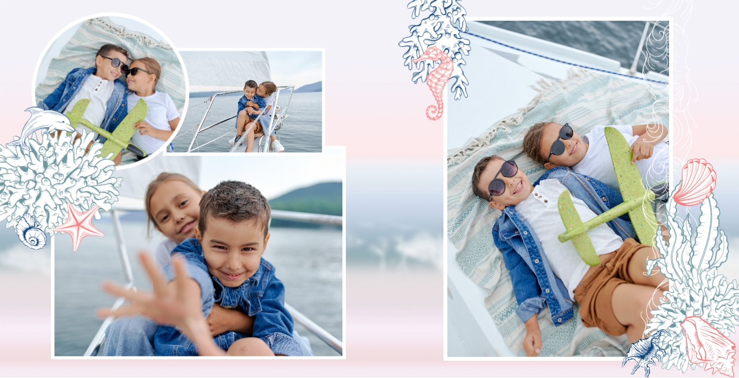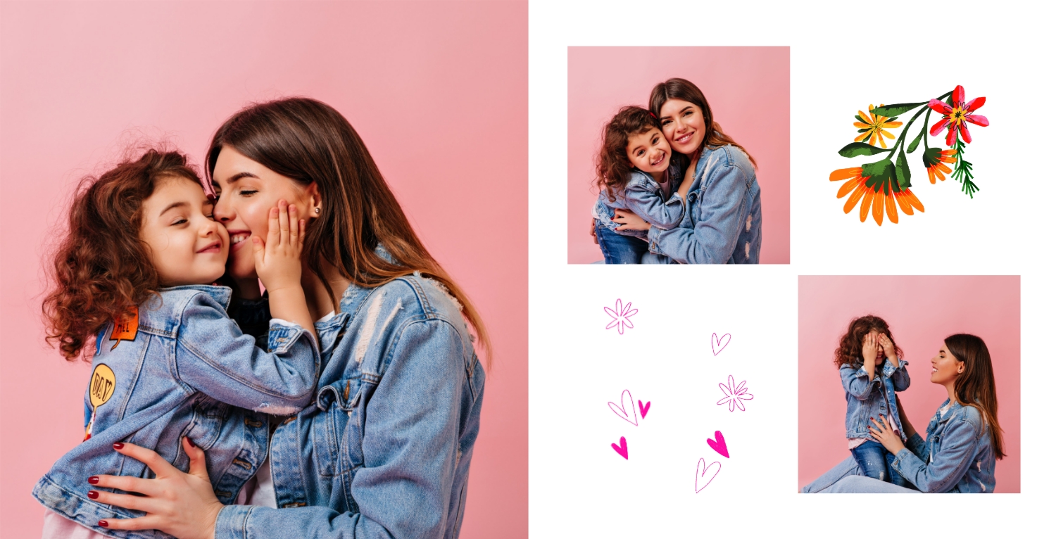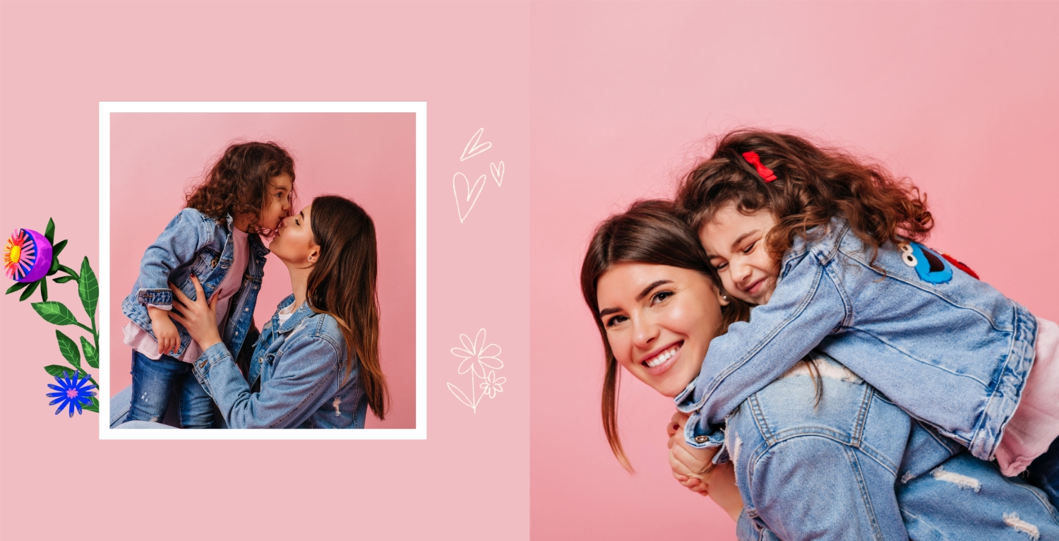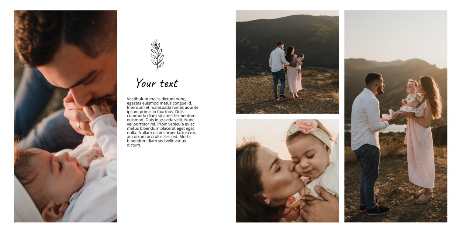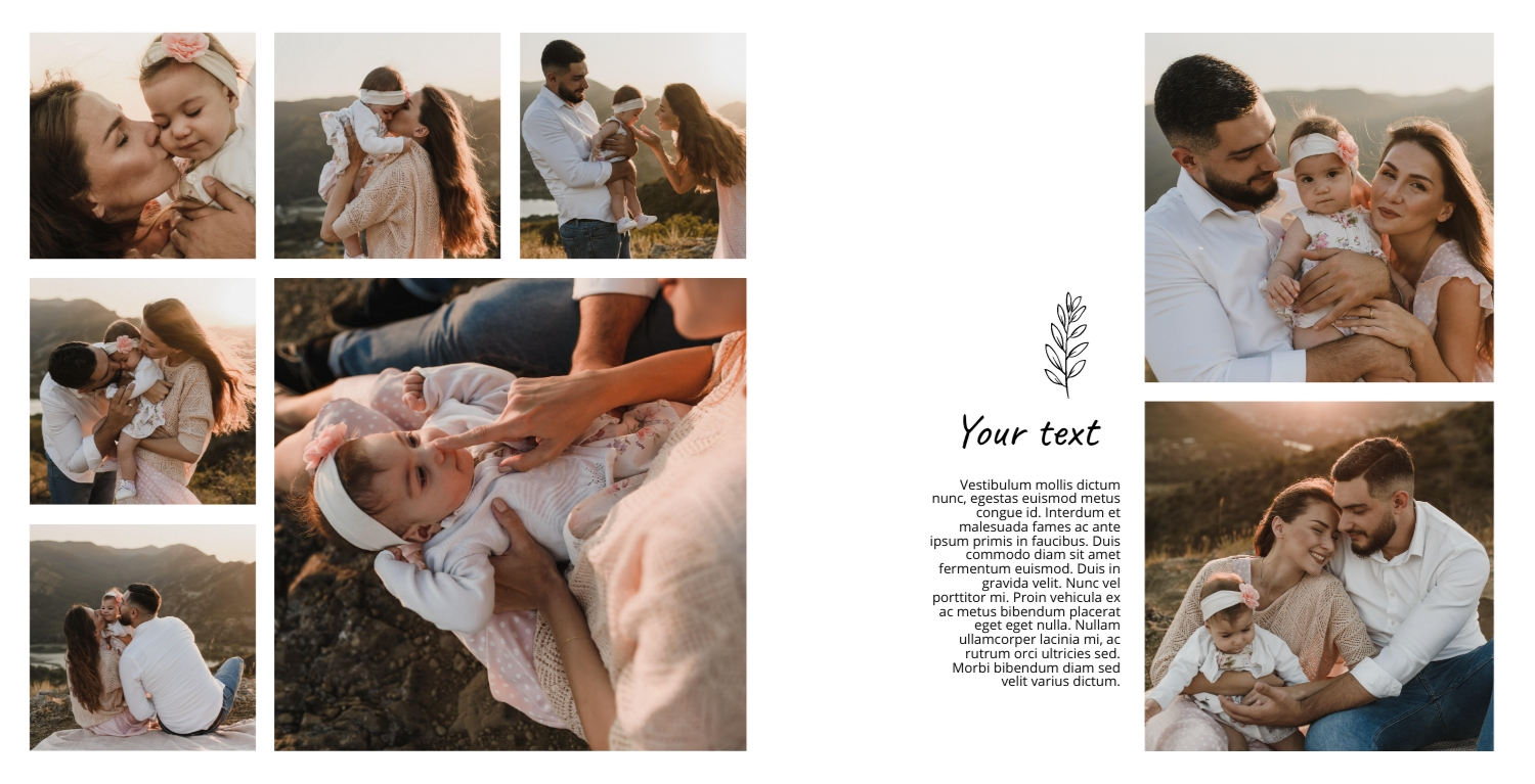 The ready-made template for the square hardcover photobook "Mama's Love" was created in order to preserve the warmest and most sincere moments. Its delicate design with soft shades, delicate patterns and a cozy atmosphere perfectly conveys the emotions of motherhood and family care. This template is suitable not only for creating personal family albums, but will also be relevant for photographers specializing in family and children's photo shoots, designers working with moms and children, as well as employees of children's development studios, psychologists and parenting specialists. In the online ad builder, this template opens up wide possibilities for individual customization. You can add your own photos in the desired sequence, change the captions, choose fonts and colors according to your taste or style of shooting. The pages are easy to edit: you can delete unnecessary elements, rearrange blocks, insert poems, commemorative inscriptions, or even drawings of a child. It is also possible to upload your own decorative elements — frames, icons, backgrounds, which makes each photo book truly unique.