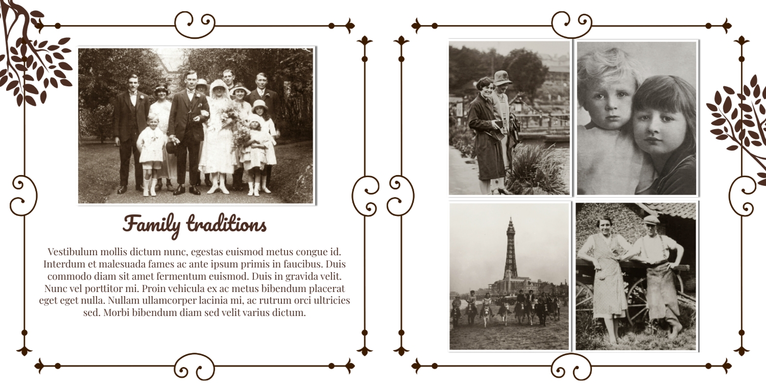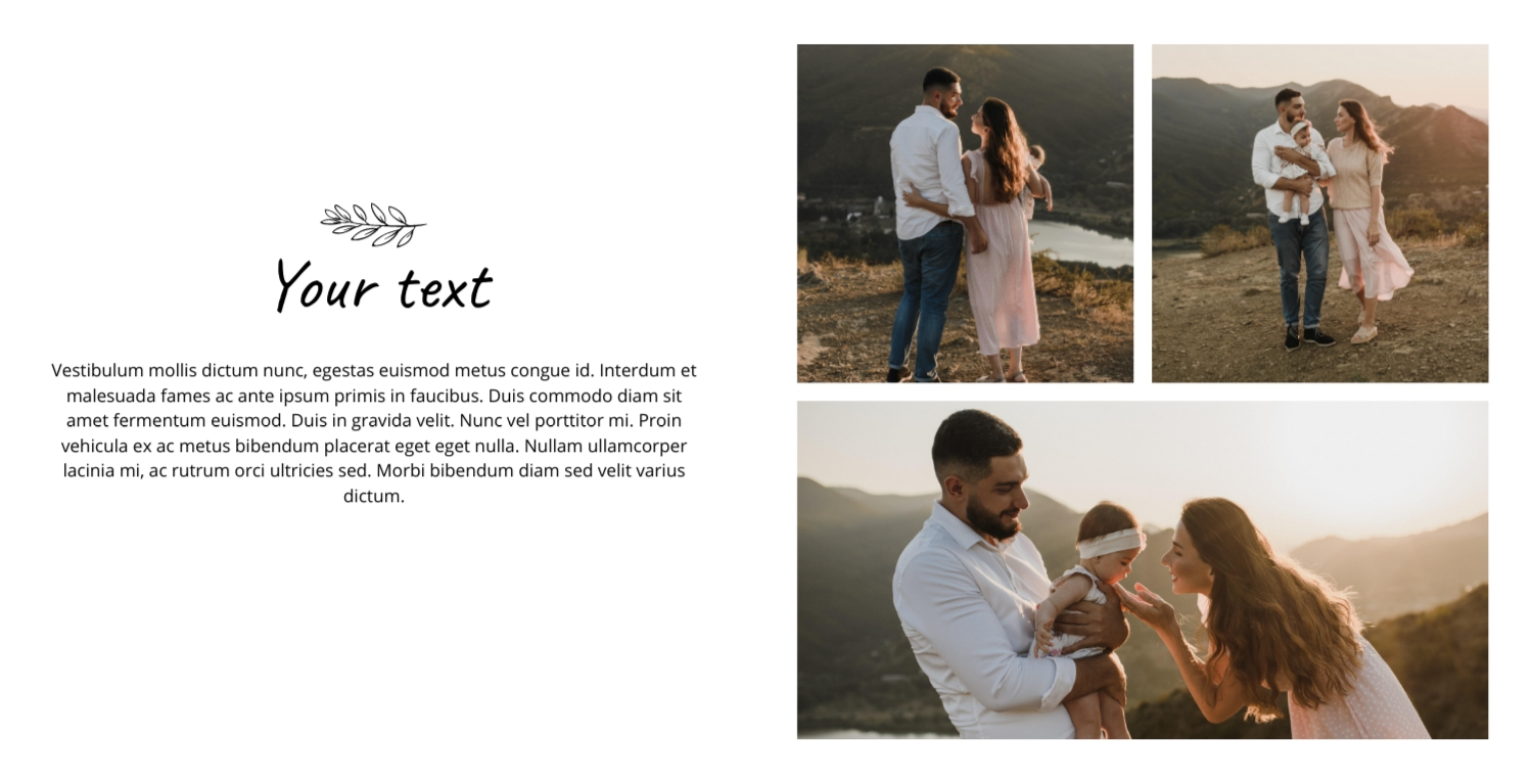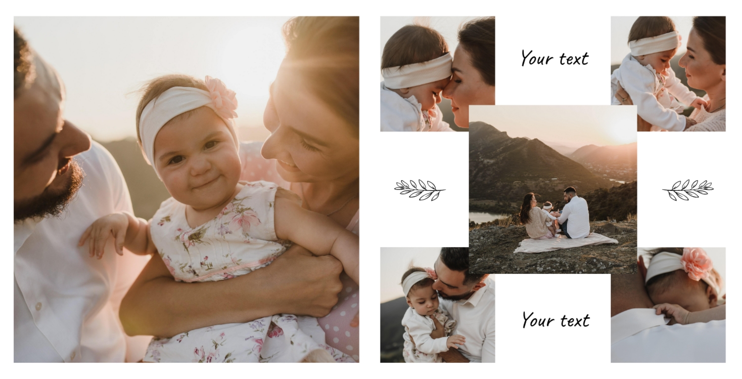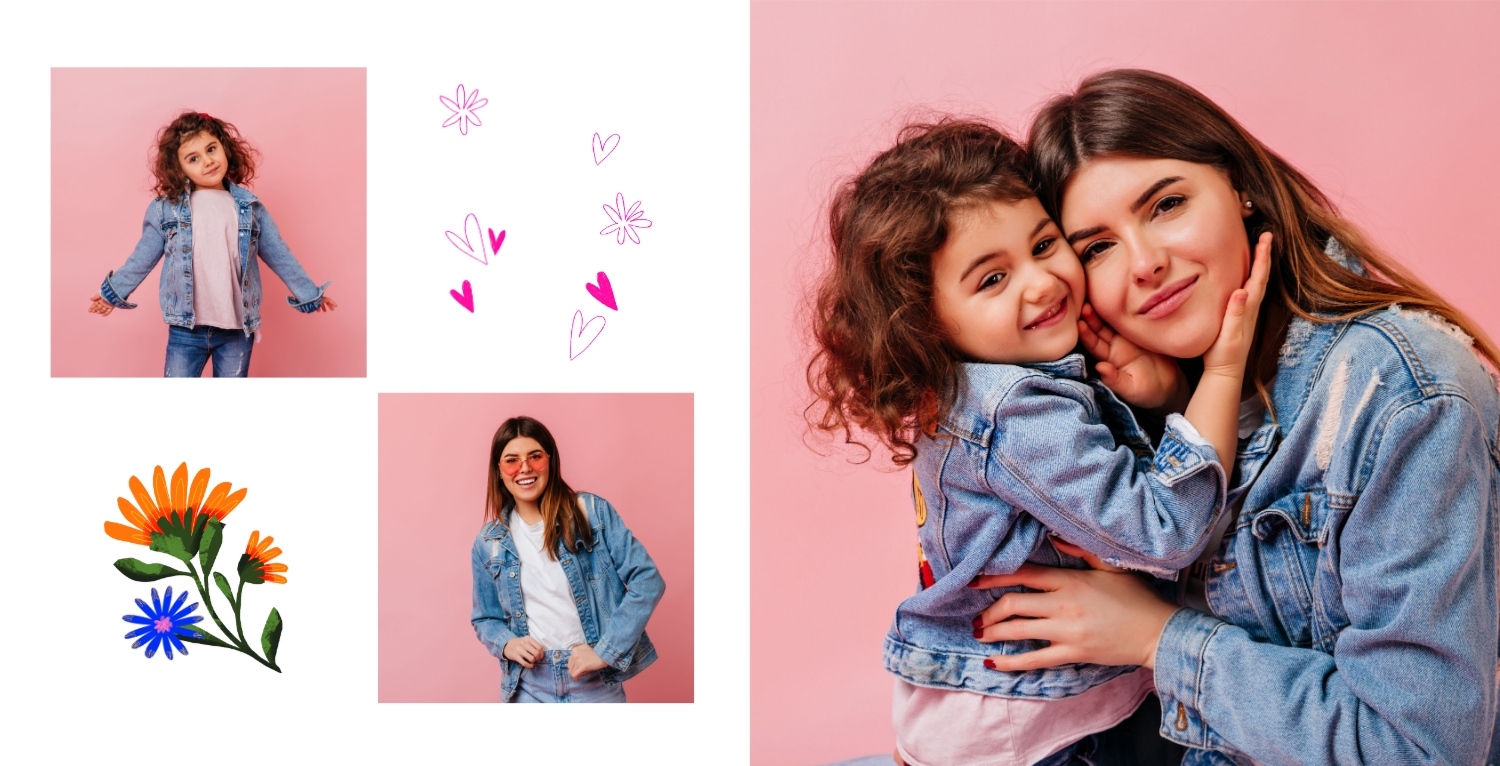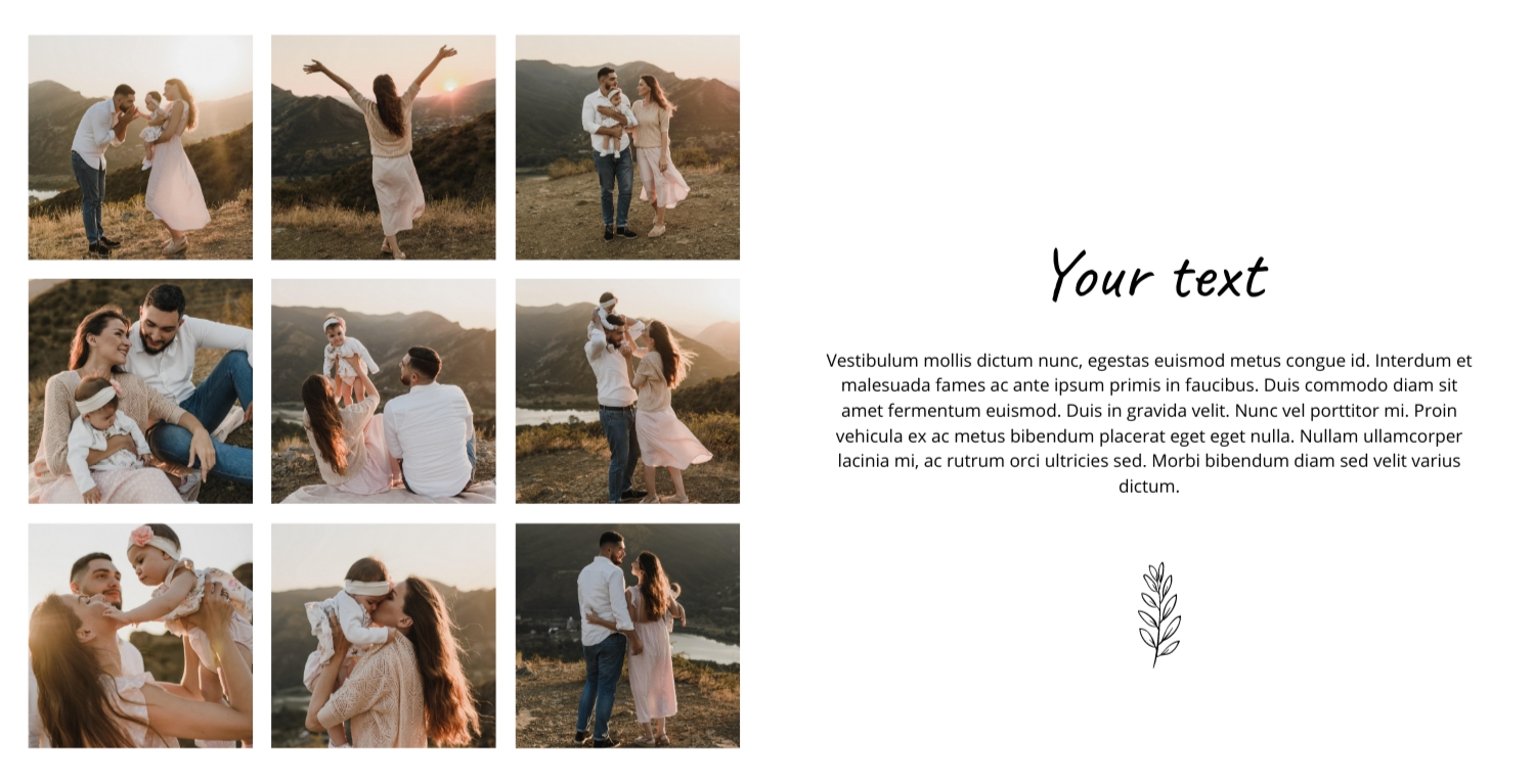 The ready-made template for the square hardcover photobook "Mama's Love" was created in order to preserve the warmest and most sincere moments. Its delicate design with soft shades, delicate patterns and a cozy atmosphere perfectly conveys the emotions of motherhood and family care. This template is suitable not only for creating personal family albums, but will also be relevant for photographers specializing in family and children's photo shoots, designers working with moms and children, as well as employees of children's development studios, psychologists and parenting specialists. In the online ad builder, this template opens up wide possibilities for individual customization. You can add your own photos in the desired sequence, change the captions, choose fonts and colors according to your taste or style of shooting. The pages are easy to edit: you can delete unnecessary elements, rearrange blocks, insert poems, commemorative inscriptions, or even drawings of a child. It is also possible to upload your own decorative elements — frames, icons, backgrounds, which makes each photo book truly unique.