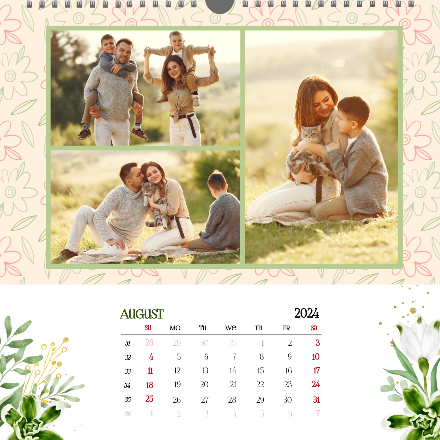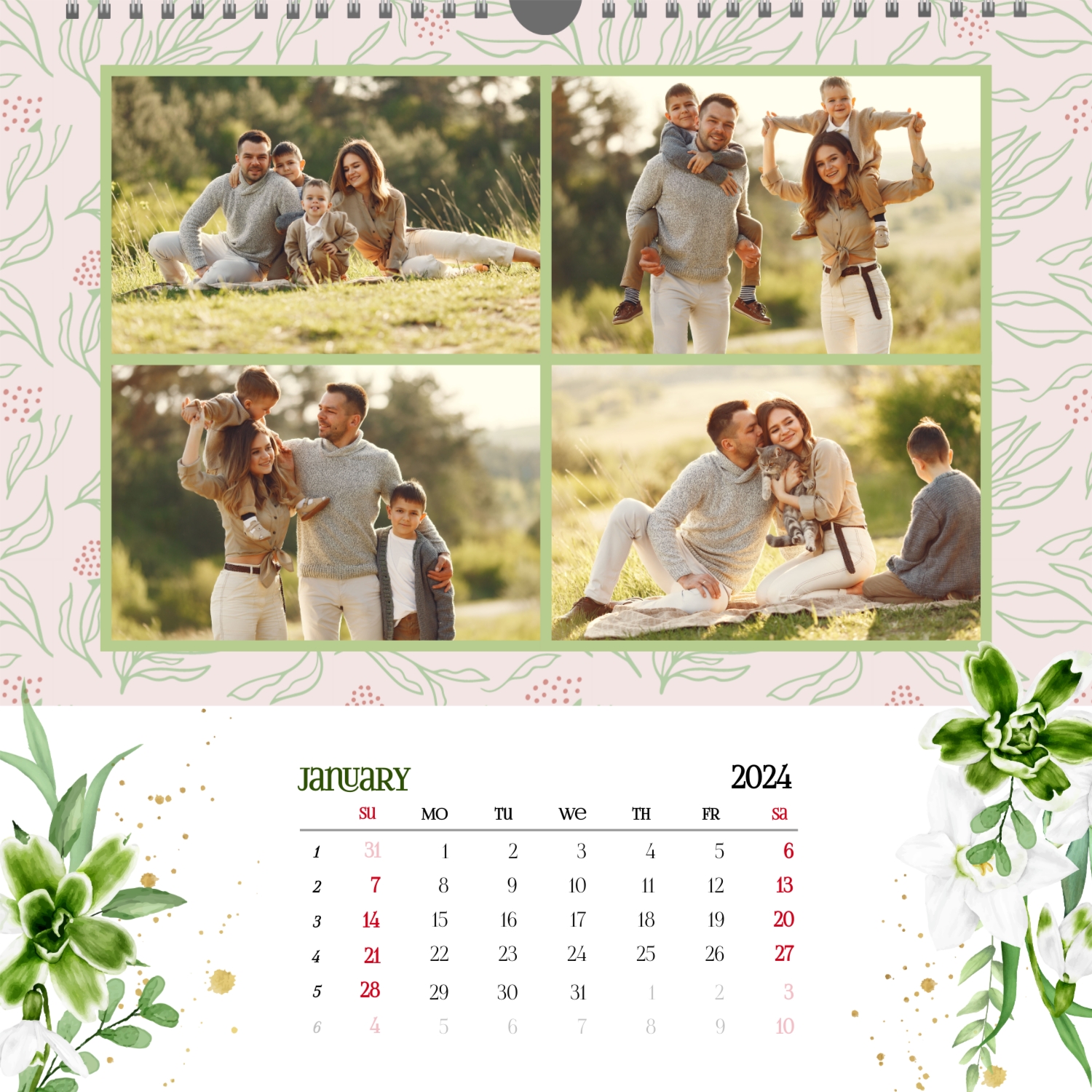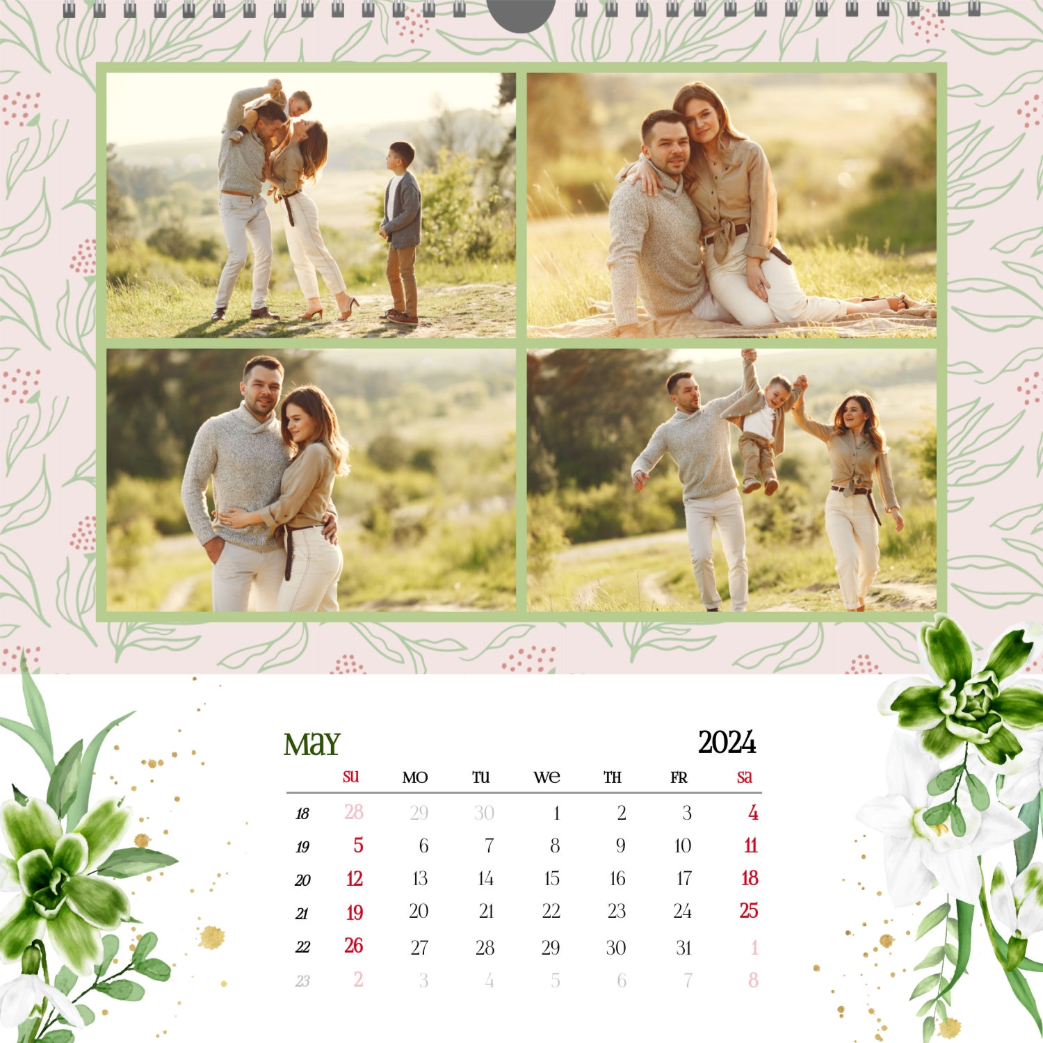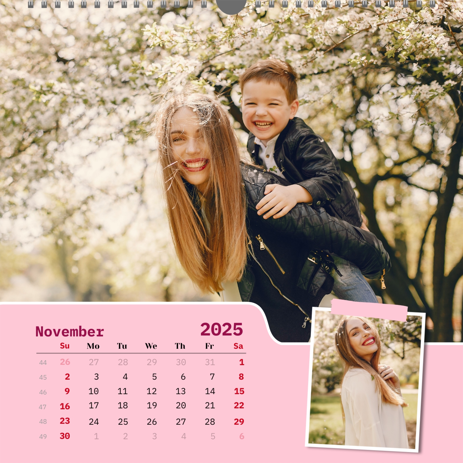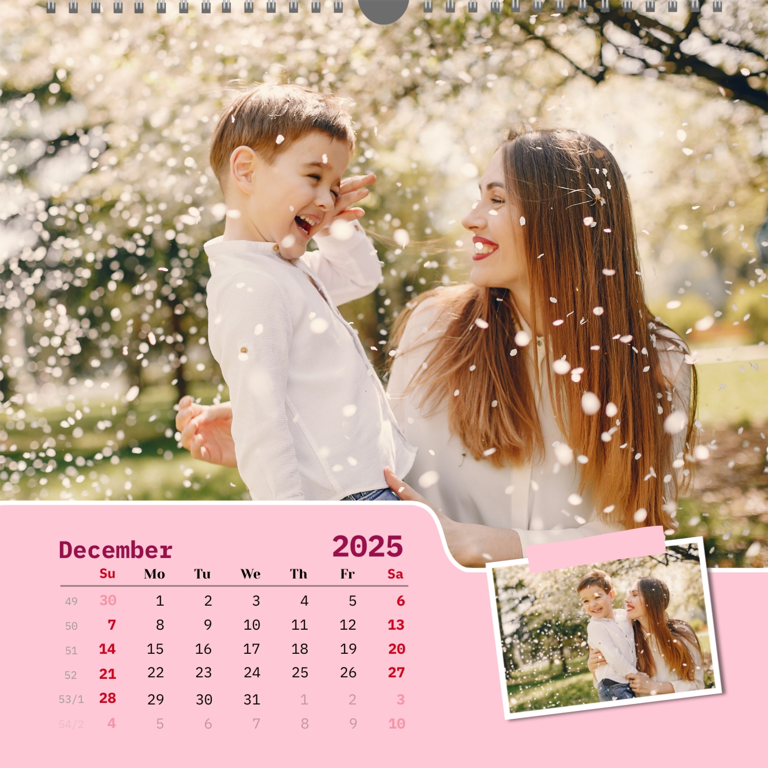 The ready—made square wall calendar template "Mama's Love" is a touching and gentle design filled with warmth, care and comfort. It is decorated in soft pastel colors with elements symbolizing maternal affection: hearts, children's drawings, floral motifs. This calendar is ideal for family photo shoots, Mother's Day gifts, and will also be an excellent solution for professionals working in the field of child development, family psychology, pedagogy, and preschool education. It can be used in kindergartens, early development centers, private photo studios, as well as in charitable organizations that help families. In the online ad builder, this template can be easily adapted to any format and content. All elements are editable: you can upload your own photos, change the labels, choose the font and its color, adjust the location of the months, add important dates and events. Thanks to the flexible settings, the calendar can easily be turned into a personal gift or a professional tool, for example, a branded calendar with the logo and contacts of the center.