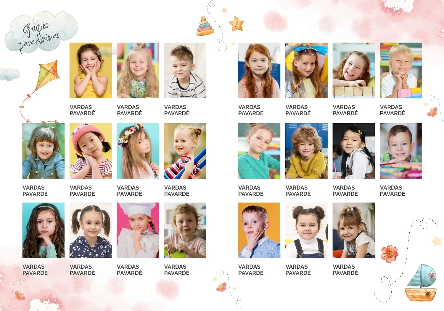 Kalendoriaus šablonas su vaikų nuotraukomis