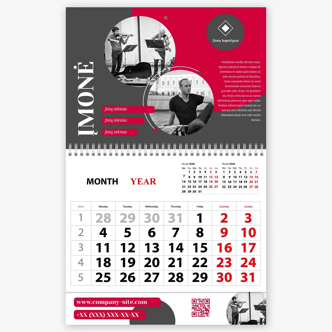 Muzikinės grupės ketvirčio kalendoriaus šablonas
