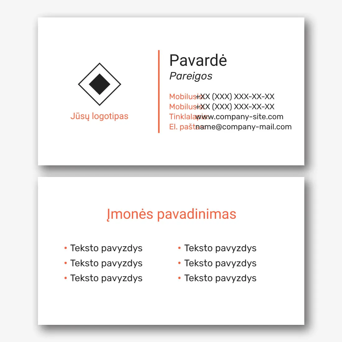 Universalios paprastos vizitinės kortelės Šablonas