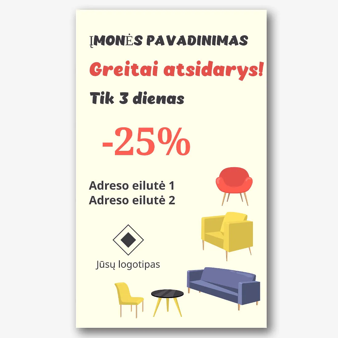Baldų salono reklamjuostės šablonas