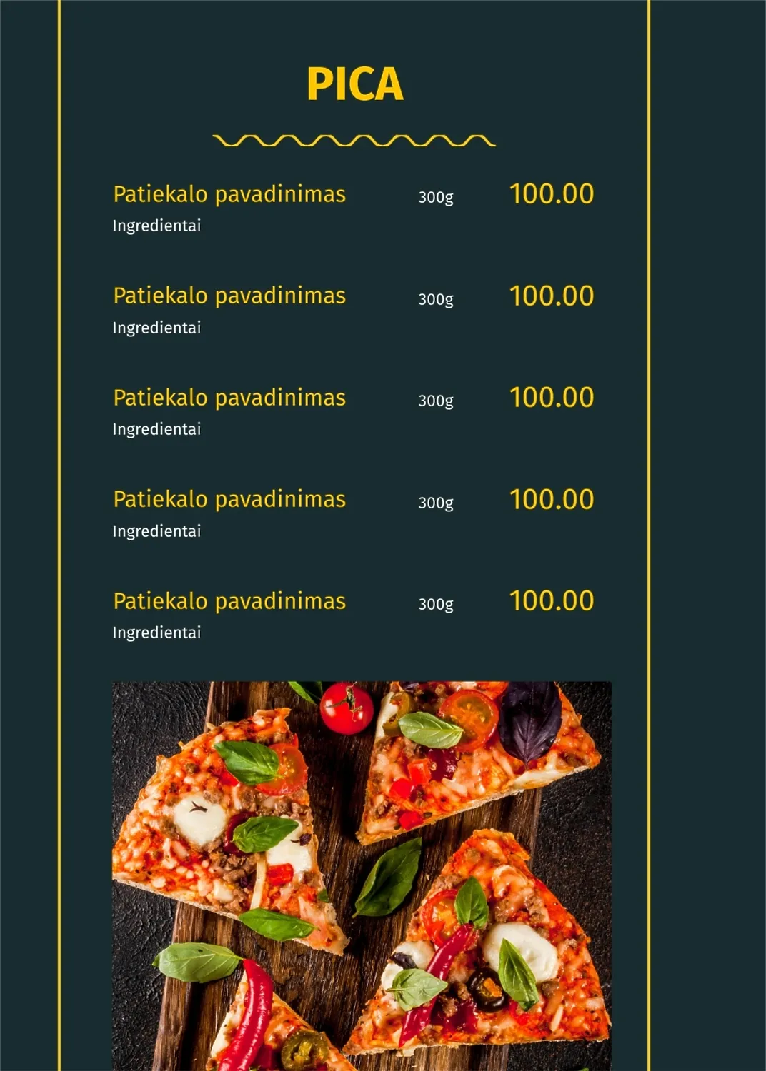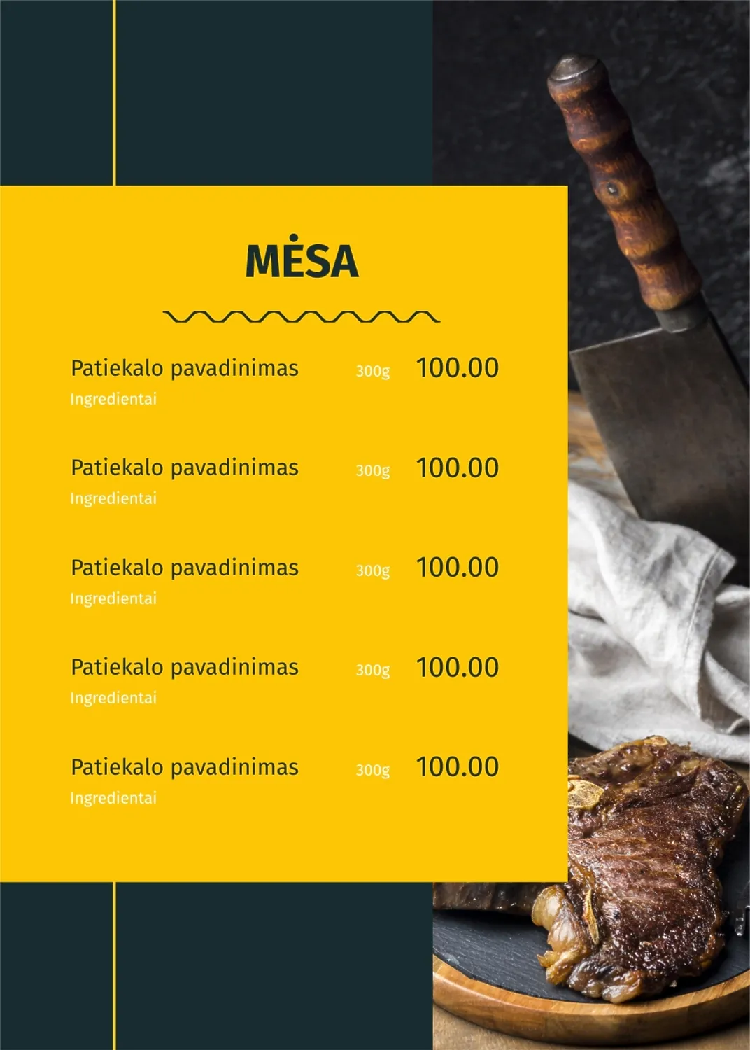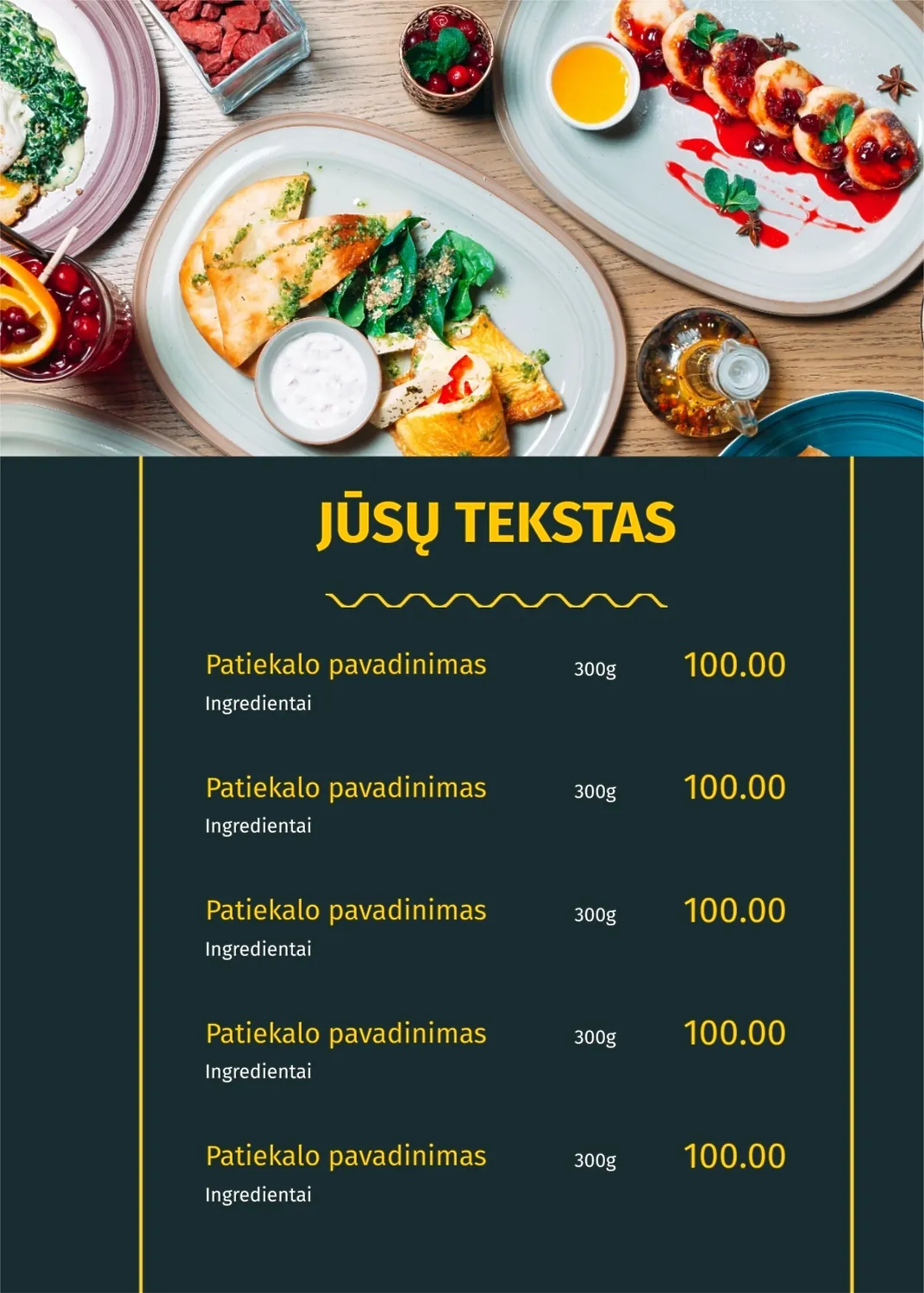 Restorano meniu šablonas