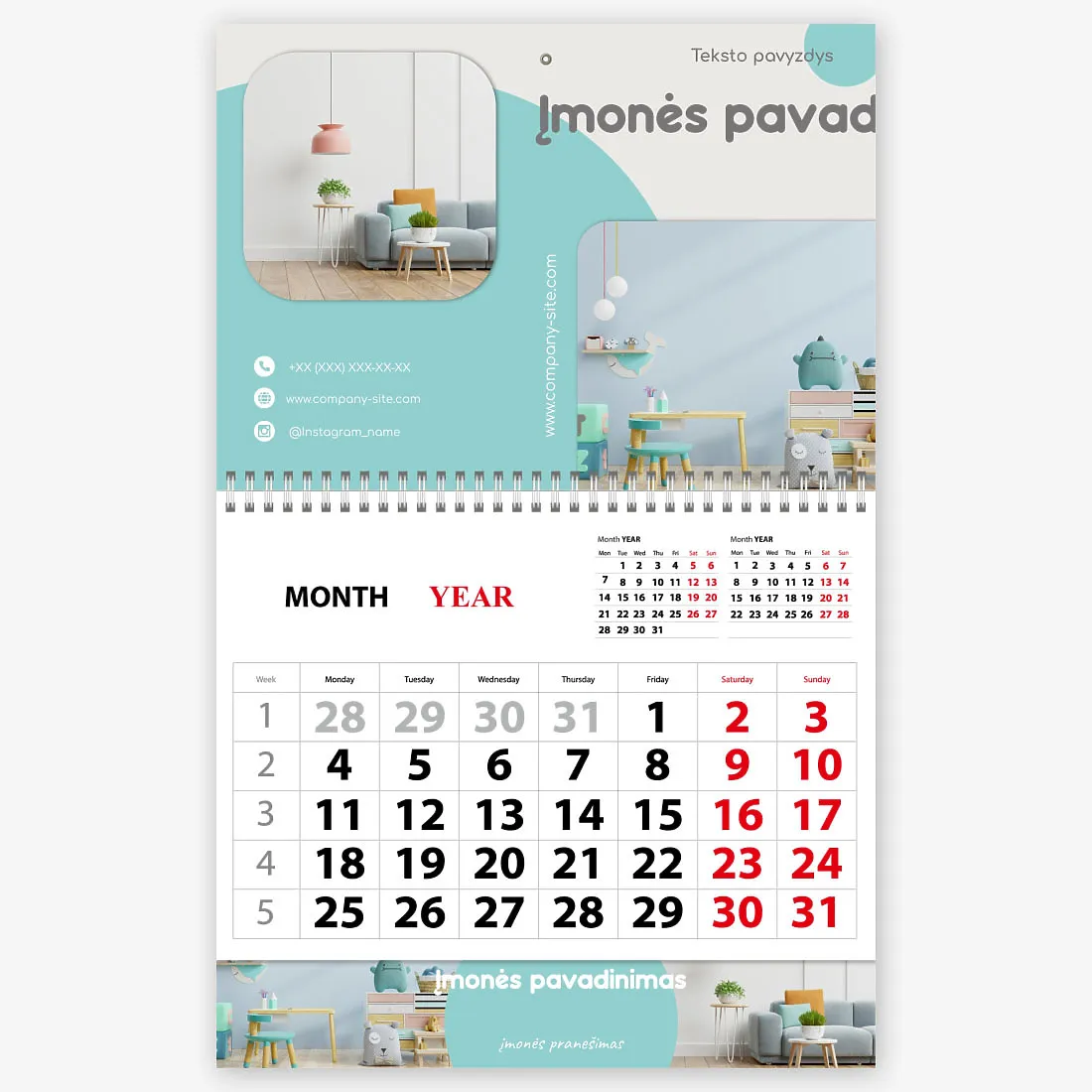 Baldų parduotuvės ketvirčio kalendoriaus šablonas
