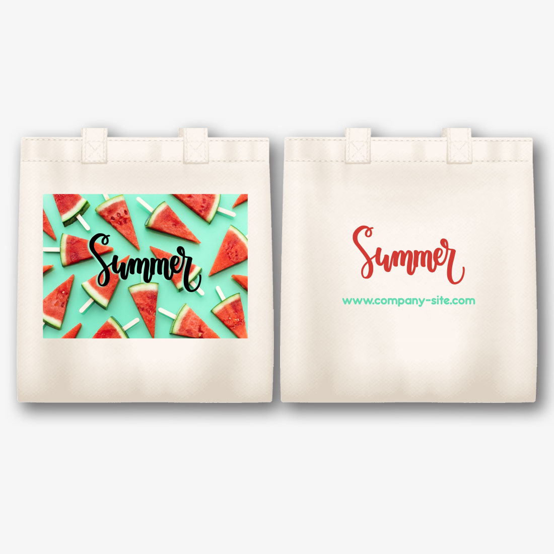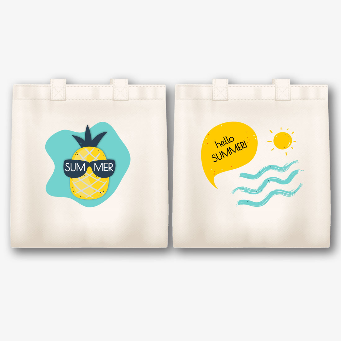Nemokamas drobės ekologinio maišelio šablonas su tropinių vaisių atspaudu. Sukurkite išdėstymą su savo rankomis internetiniame ekologinio maišelio dizaineryje.