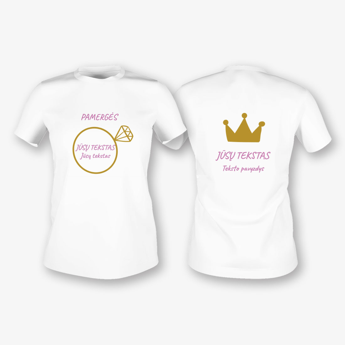 Nemokamas moteriškų marškinėlių šablonas pamergėms. Sukurkite išdėstymą su savo rankomis internetiniame marškinėlių ir gaubtų dizaineryje.