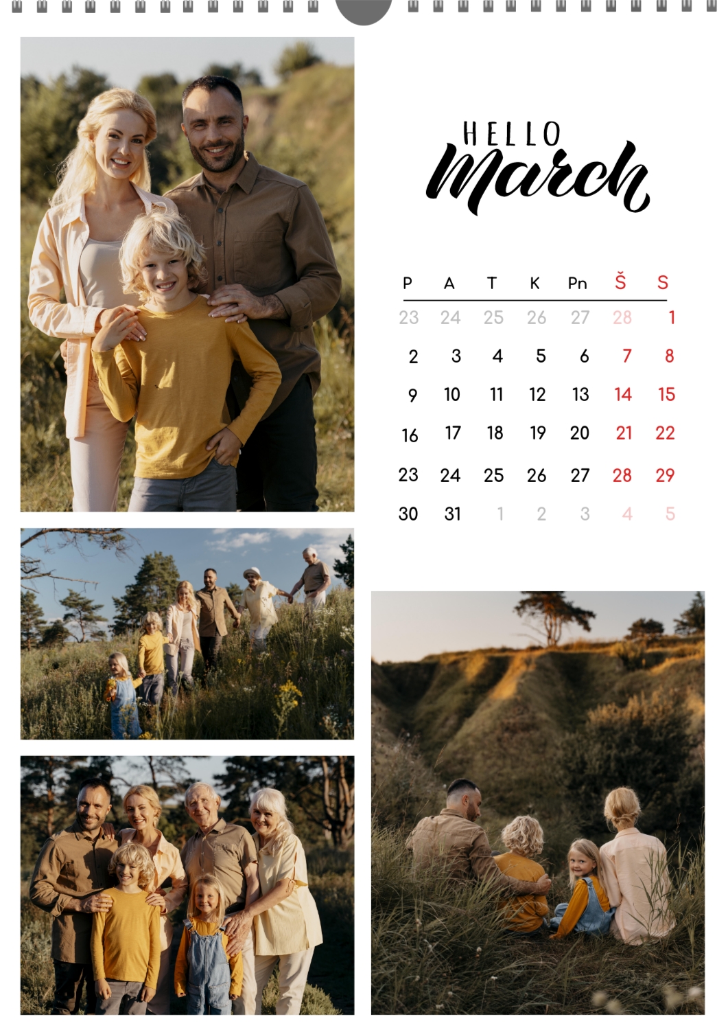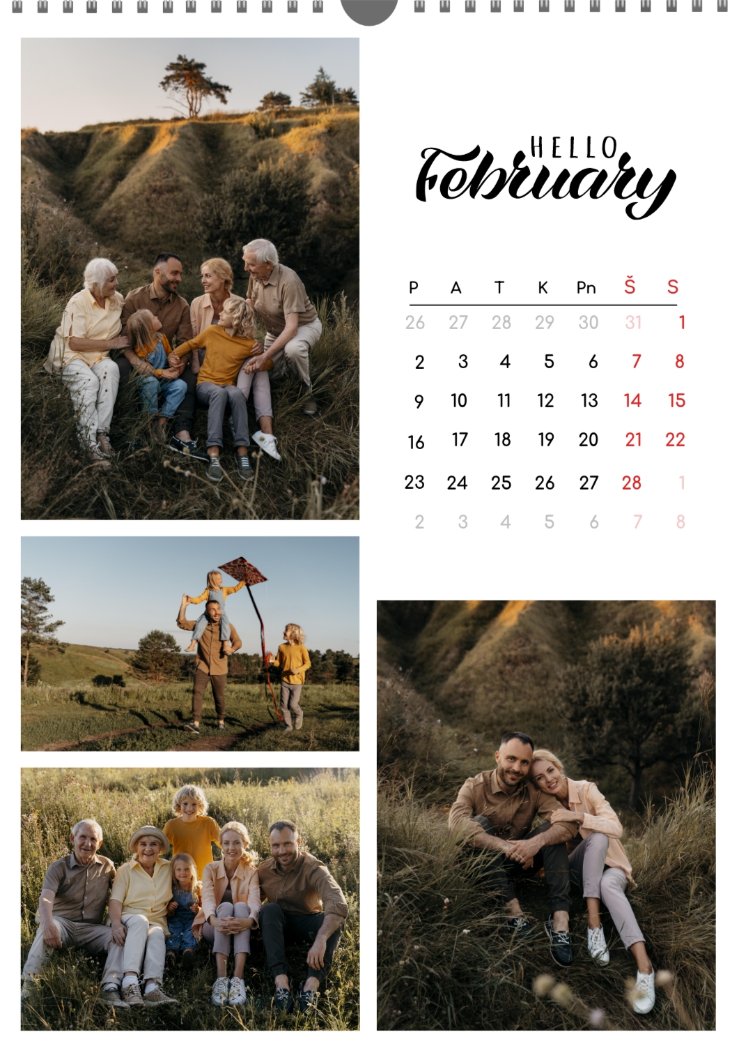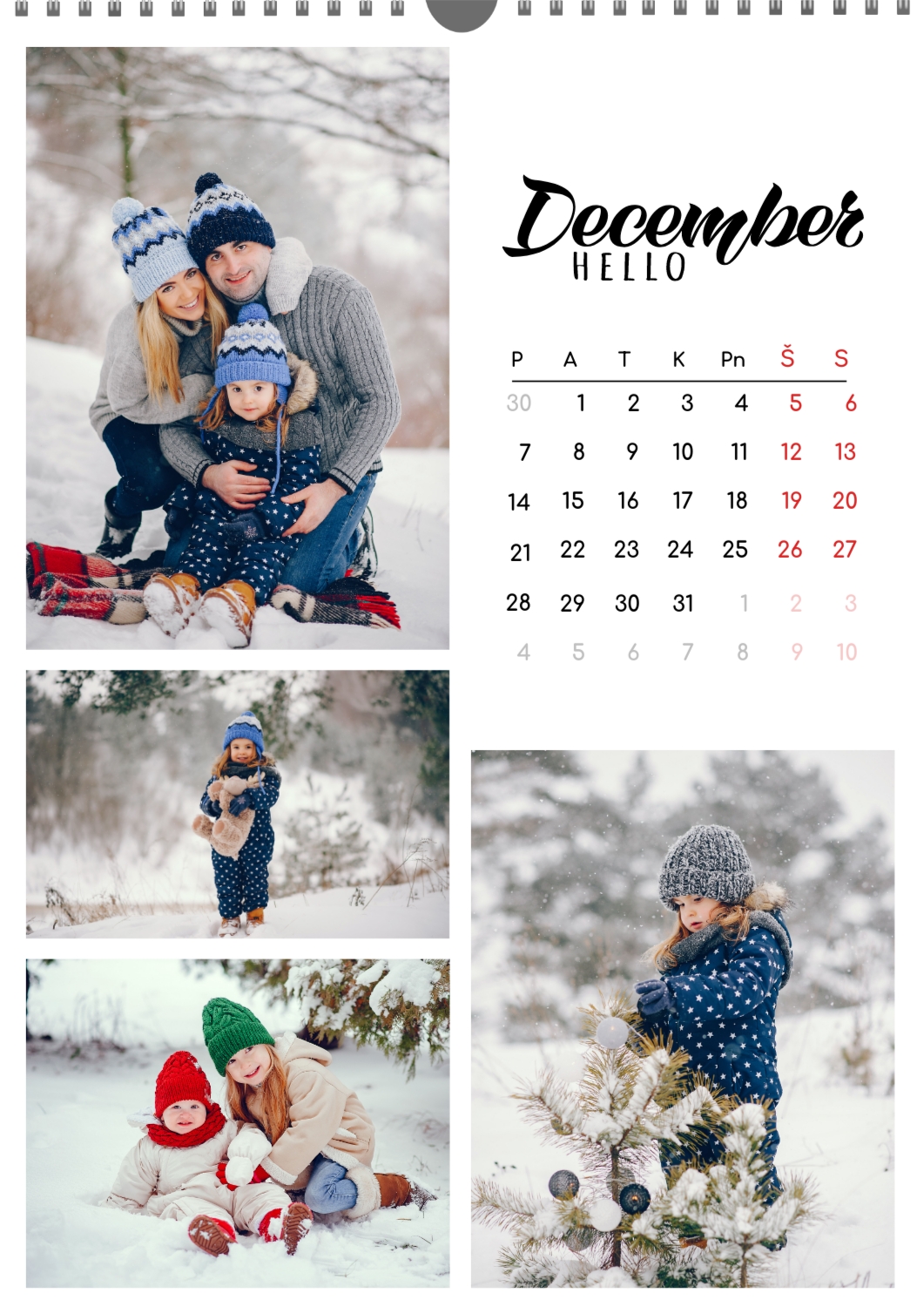 Nemokamas šeimos kalendoriaus šablonas su įsimintinomis išeinančių metų akimirkomis. Sukurkite išdėstymą su savo rankomis kalendoriaus dizaineriu.
