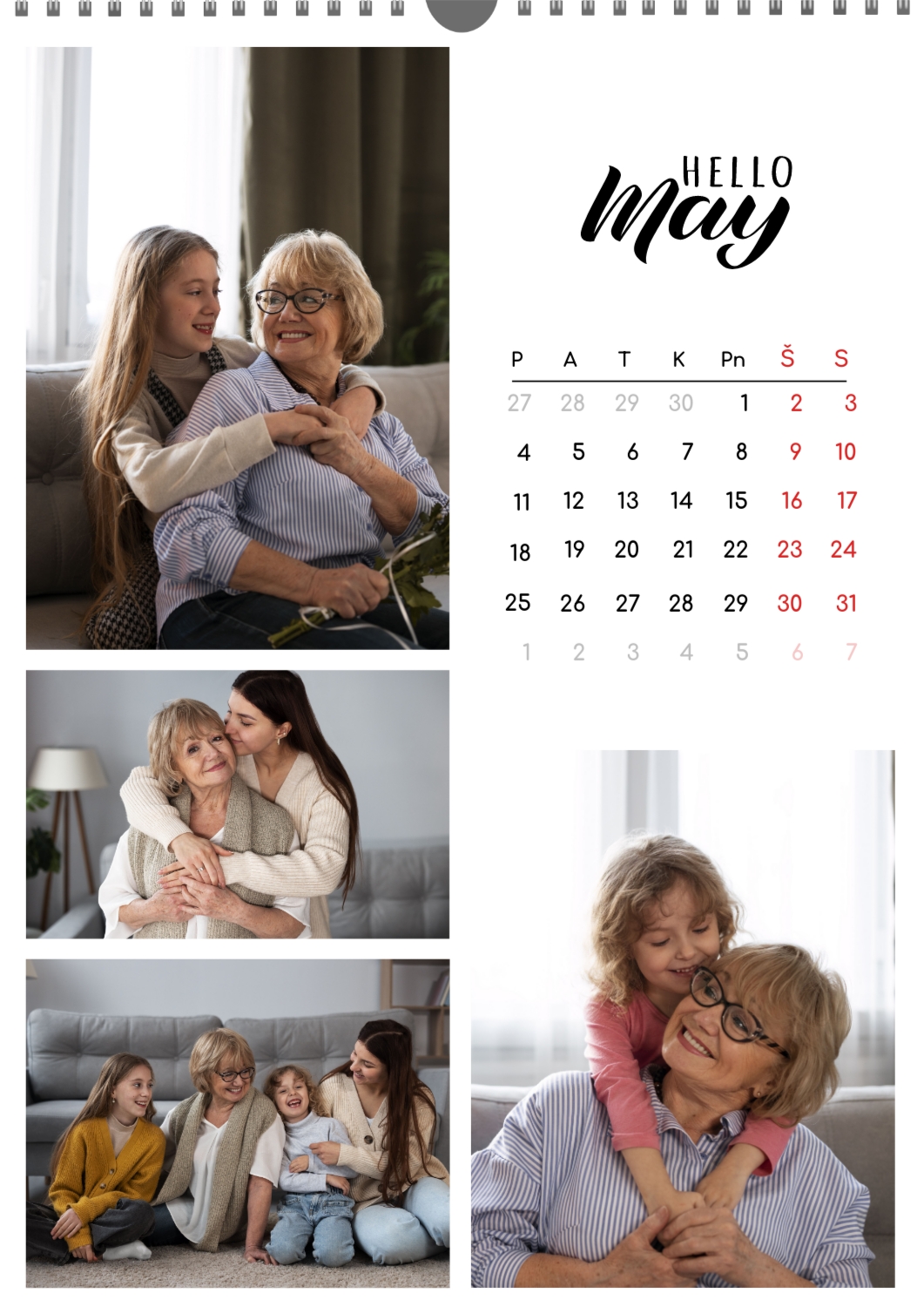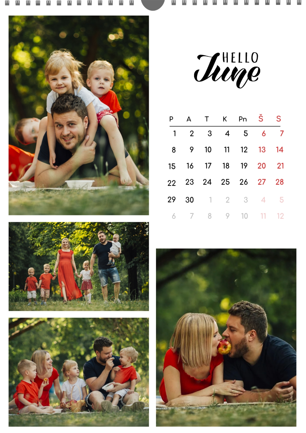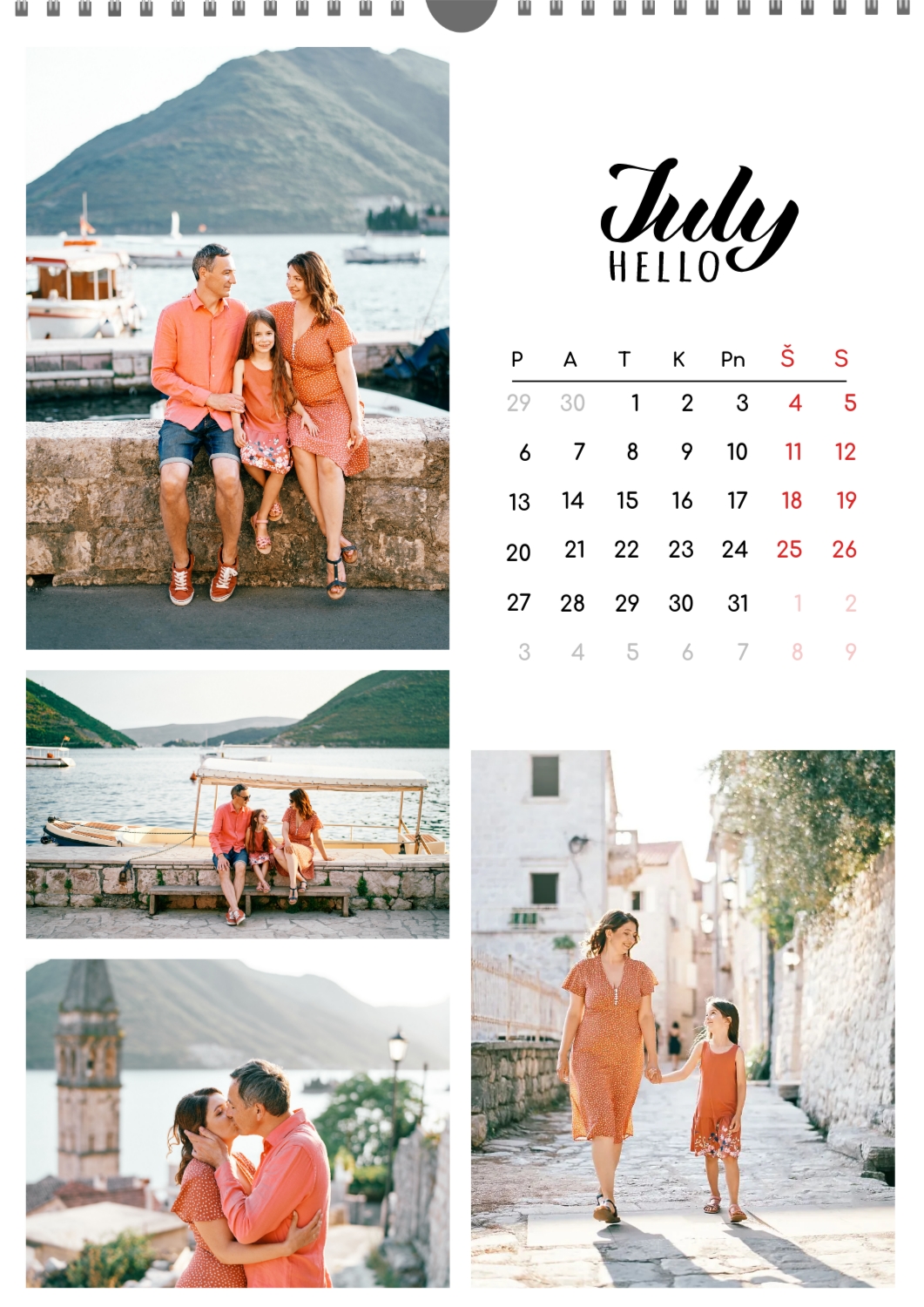 Nemokamas šeimos kalendoriaus šablonas su įsimintinomis išeinančių metų akimirkomis. Sukurkite išdėstymą su savo rankomis kalendoriaus dizaineriu.