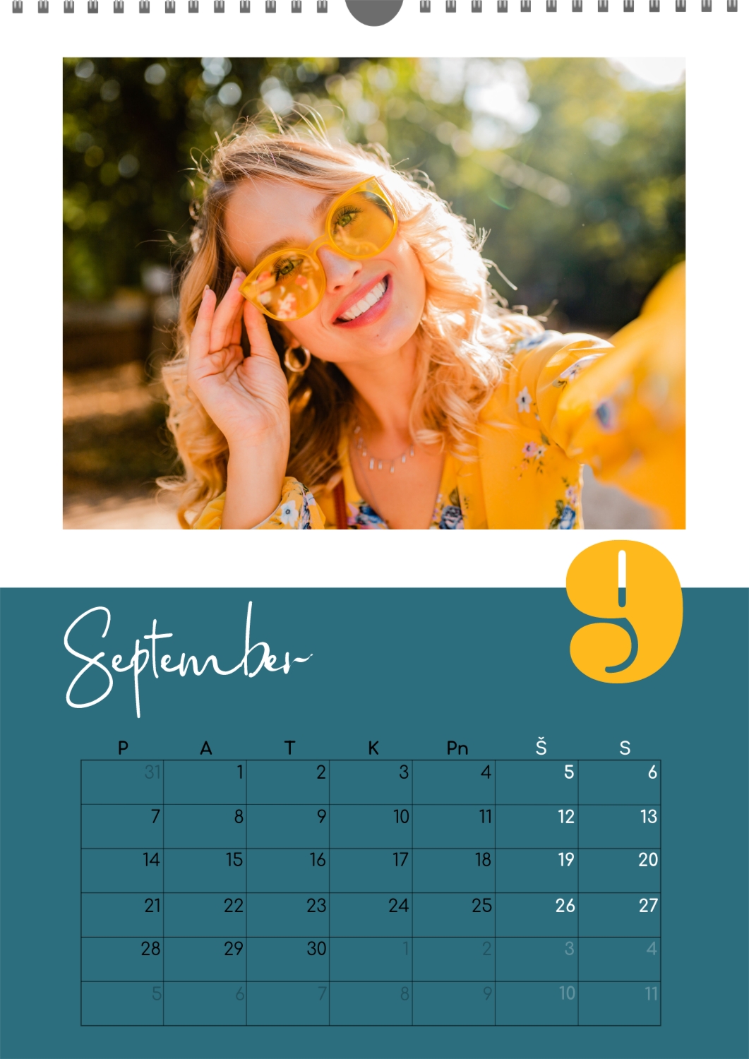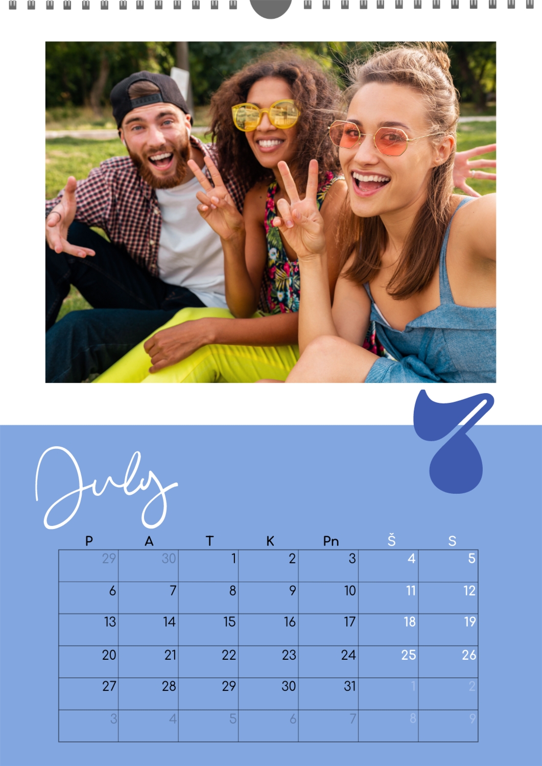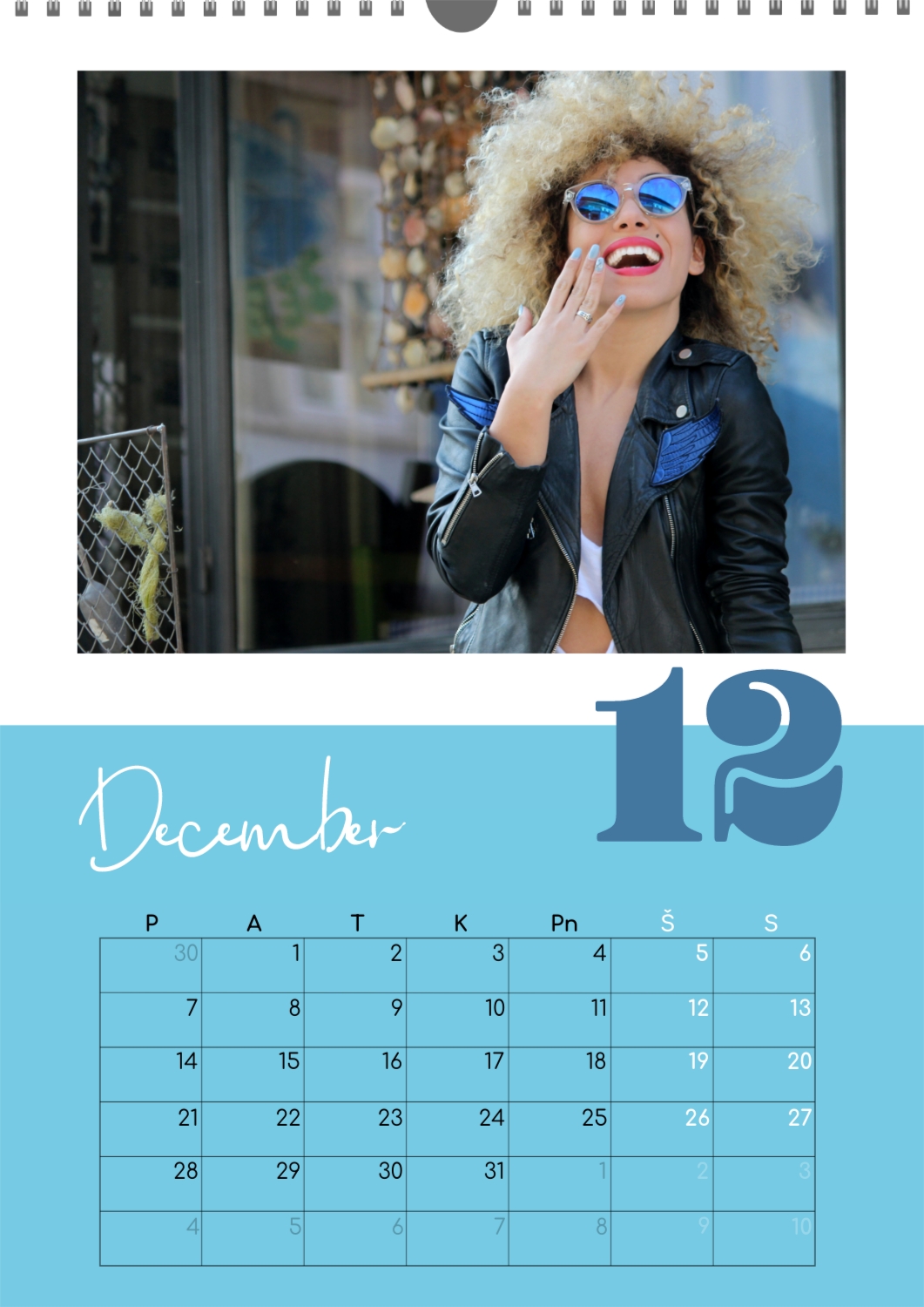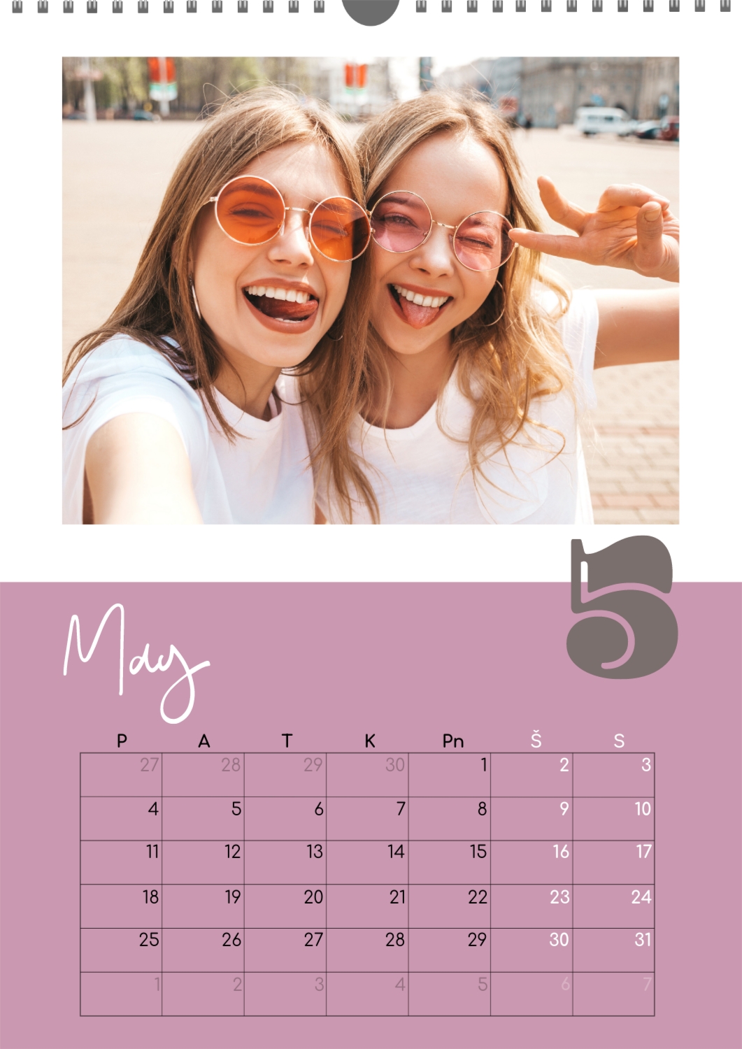 Nemokama kalendoriaus šablonas su įsimintinomis akimirkomis Instagram stiliaus. Sukurkite išdėstymą su savo rankomis internetiniame kalendoriaus dizaineryje.