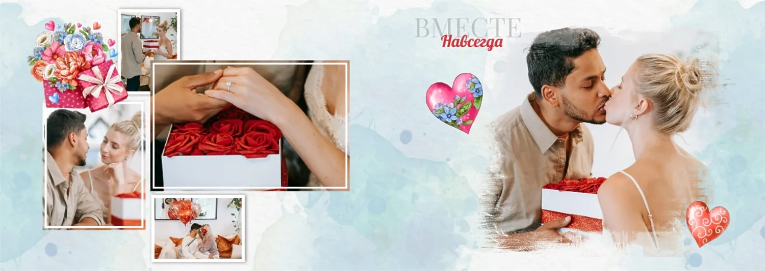 Бесплатный шаблон фотокниги для влюбленных. Создайте макет своими руками в онлайн-конструкторе фотокниг.